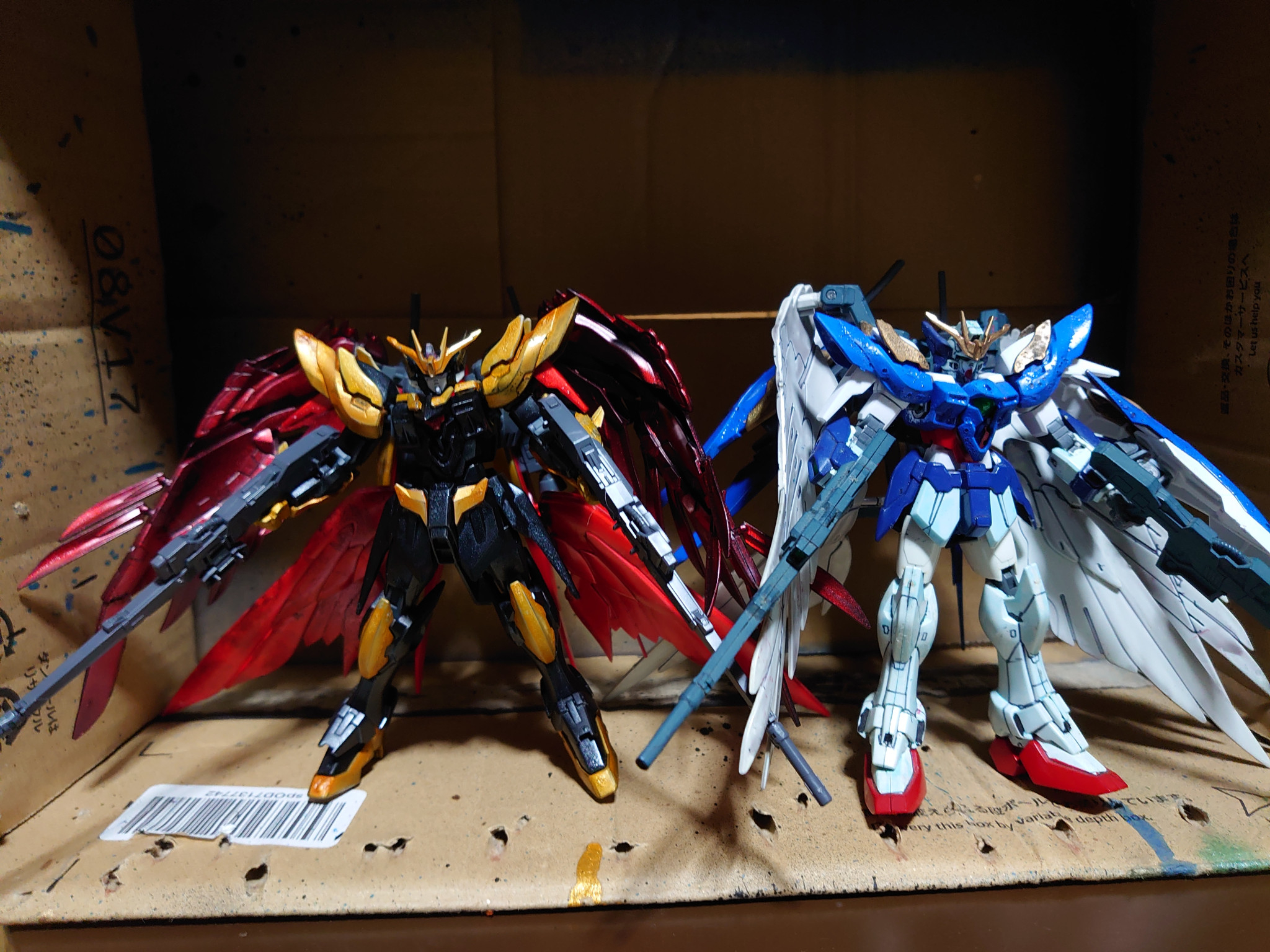 ウィングガンダムゼロ炎とrgウィングガンダムゼロEWをミキシングしてウィングゼロリベリオン風に塗装してみました。