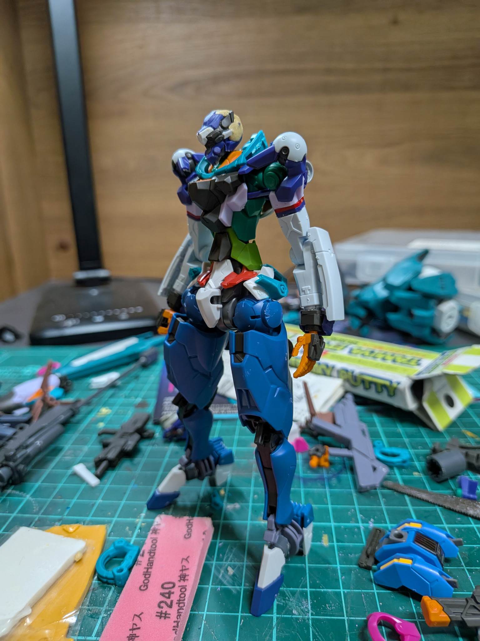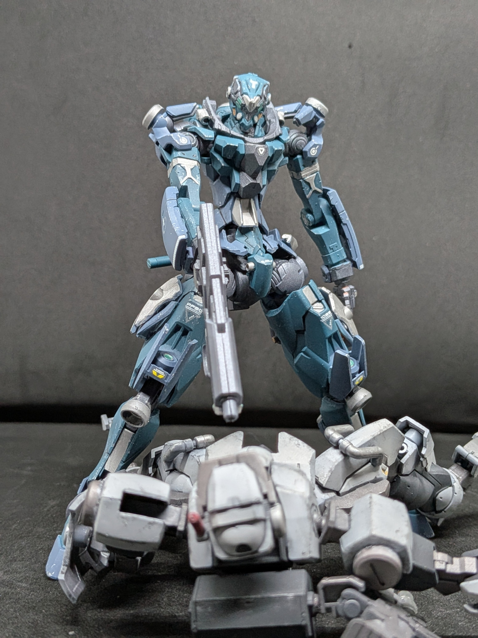 下半身は水星系で構成で足はエアリアル改修型と鉄血のジークルーネのパーツを加工して移植しました