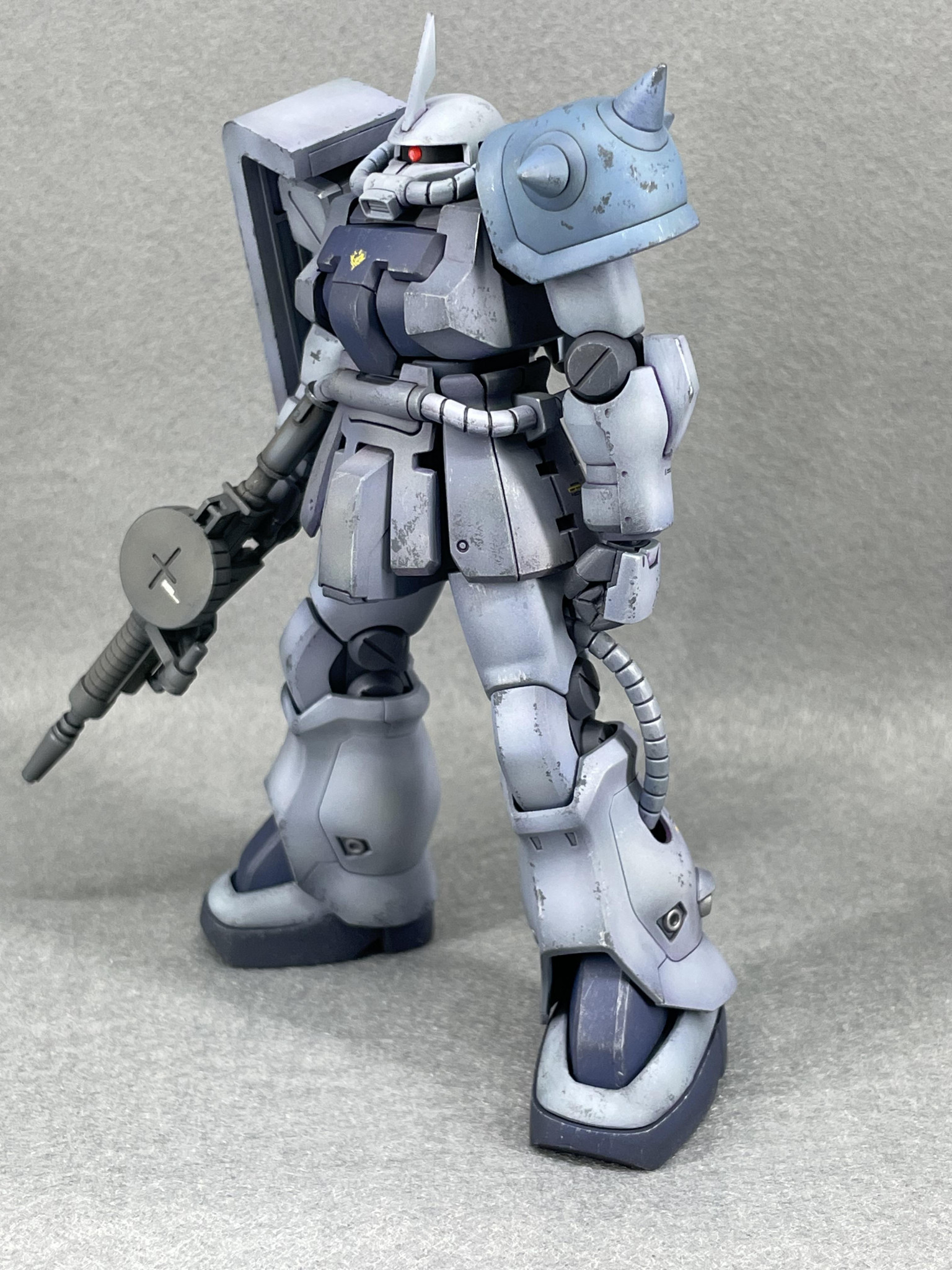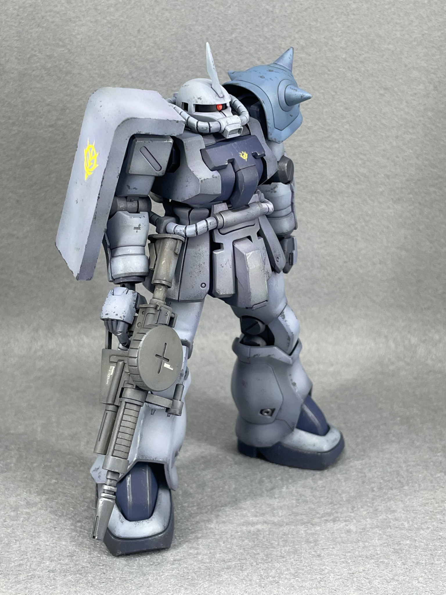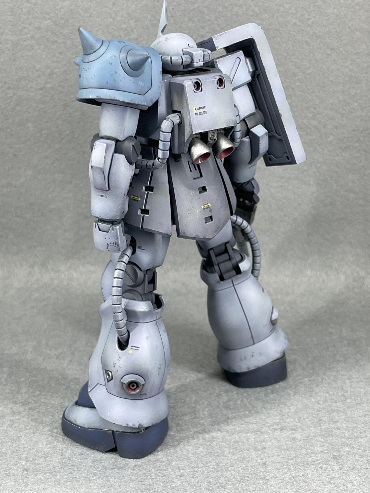ウェザリング練習のため作ってみました。ザクの中で一番好きなF2です。カラーリングに特に設定とかはありません。グレーっぽくしたらなんでもカッコいいだろくらいの感じです。