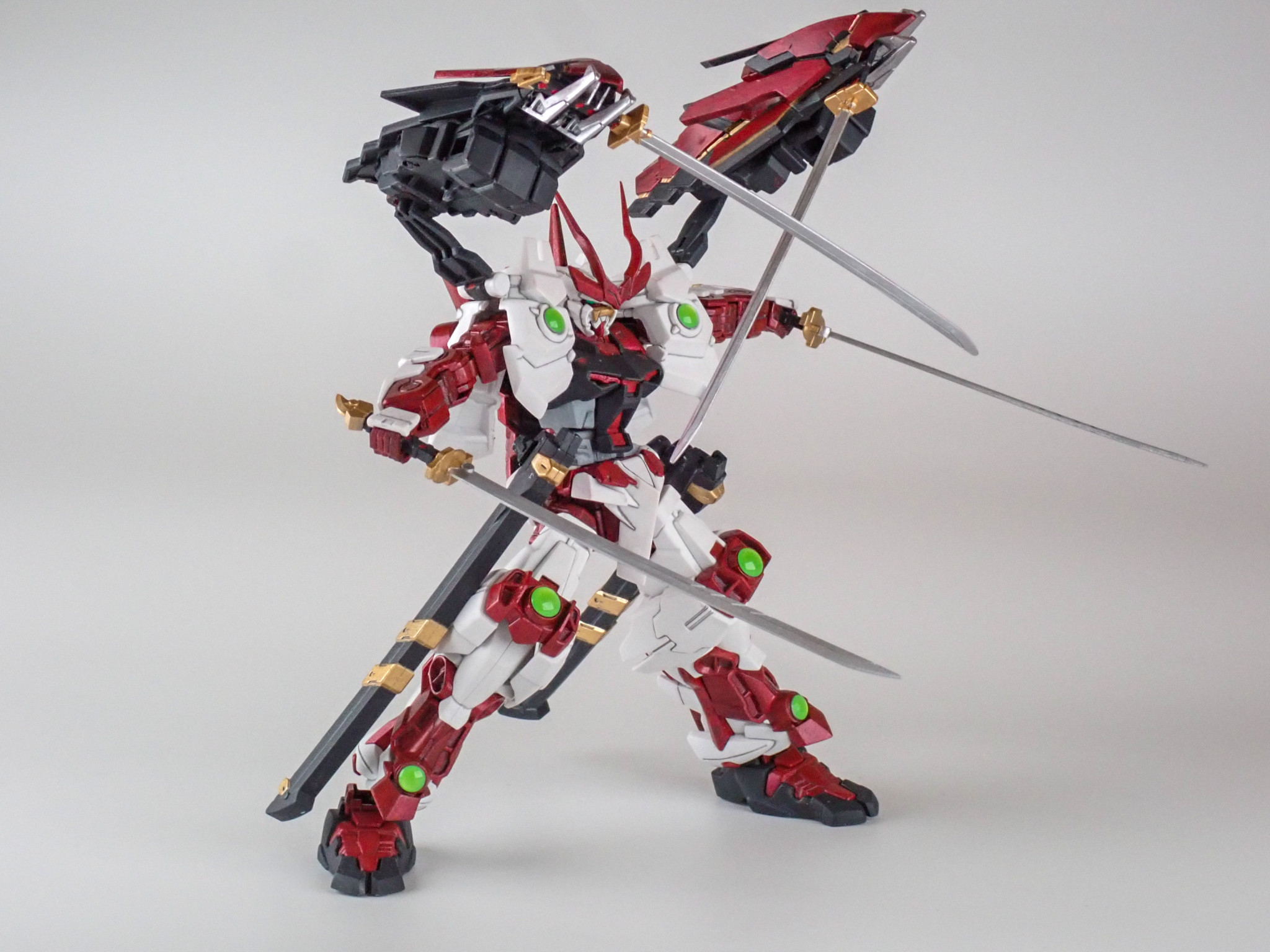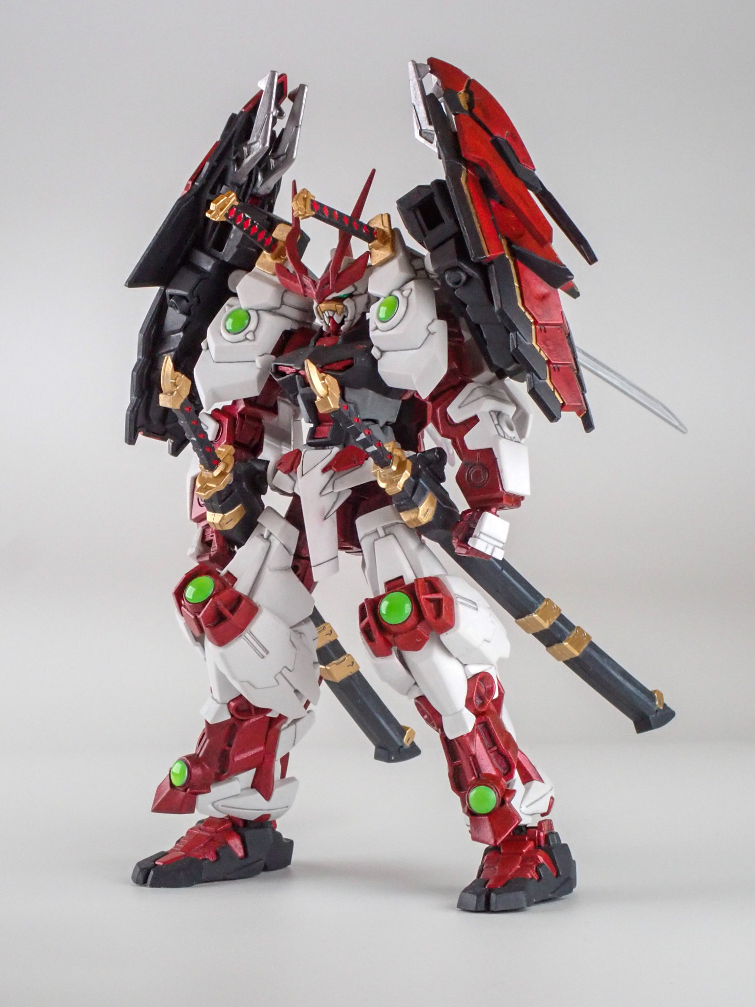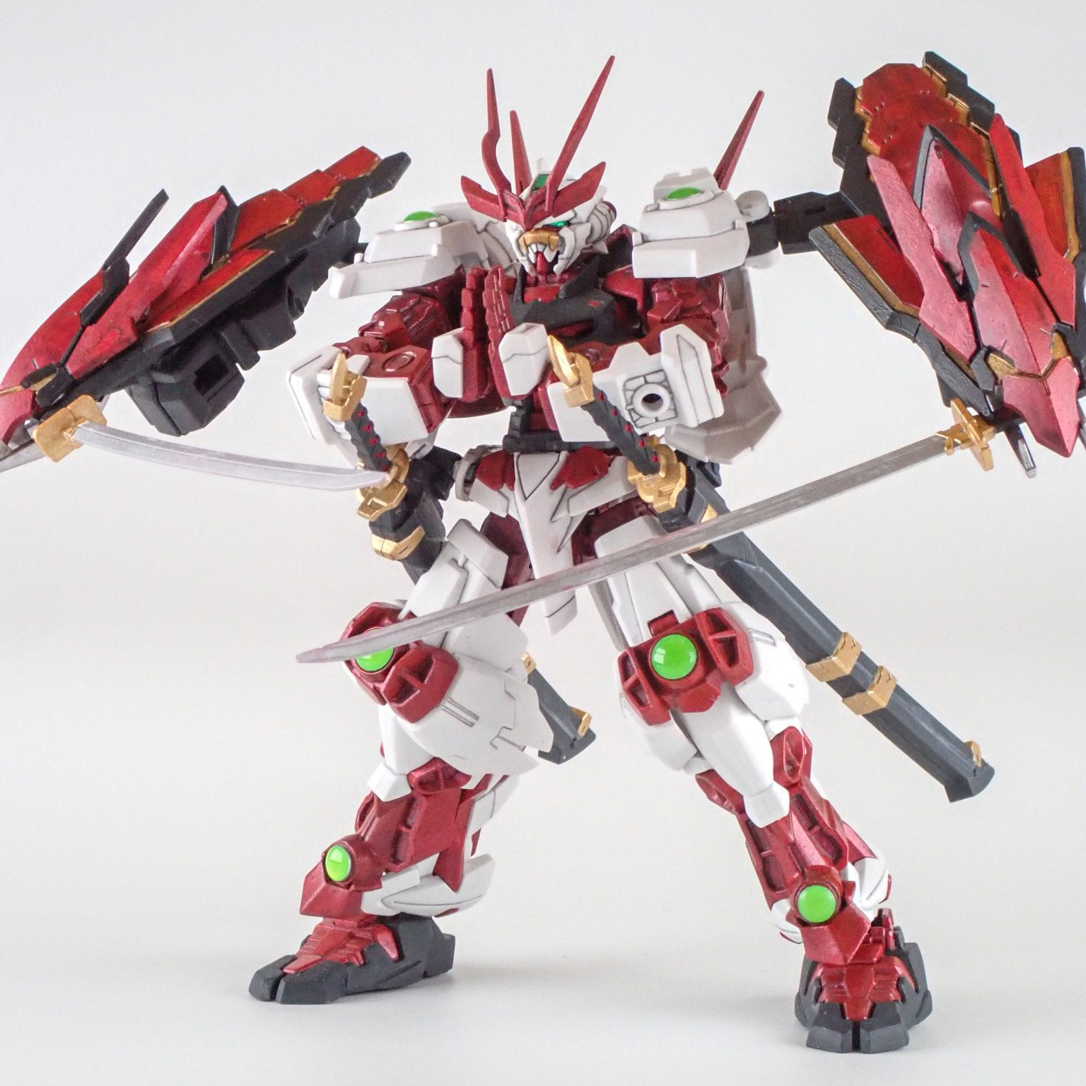 HG戦国アストレイの改修機体です!30MMの戦国アーマーがピッタリだったので使用しました😆筆塗り部分塗装です!シャーマンキング感否めませんが、刀咥えさせるのがカッコ良くてこうなりました😅カラーリングは完全に仮面ライダー龍騎になってしまいましたね〜笑