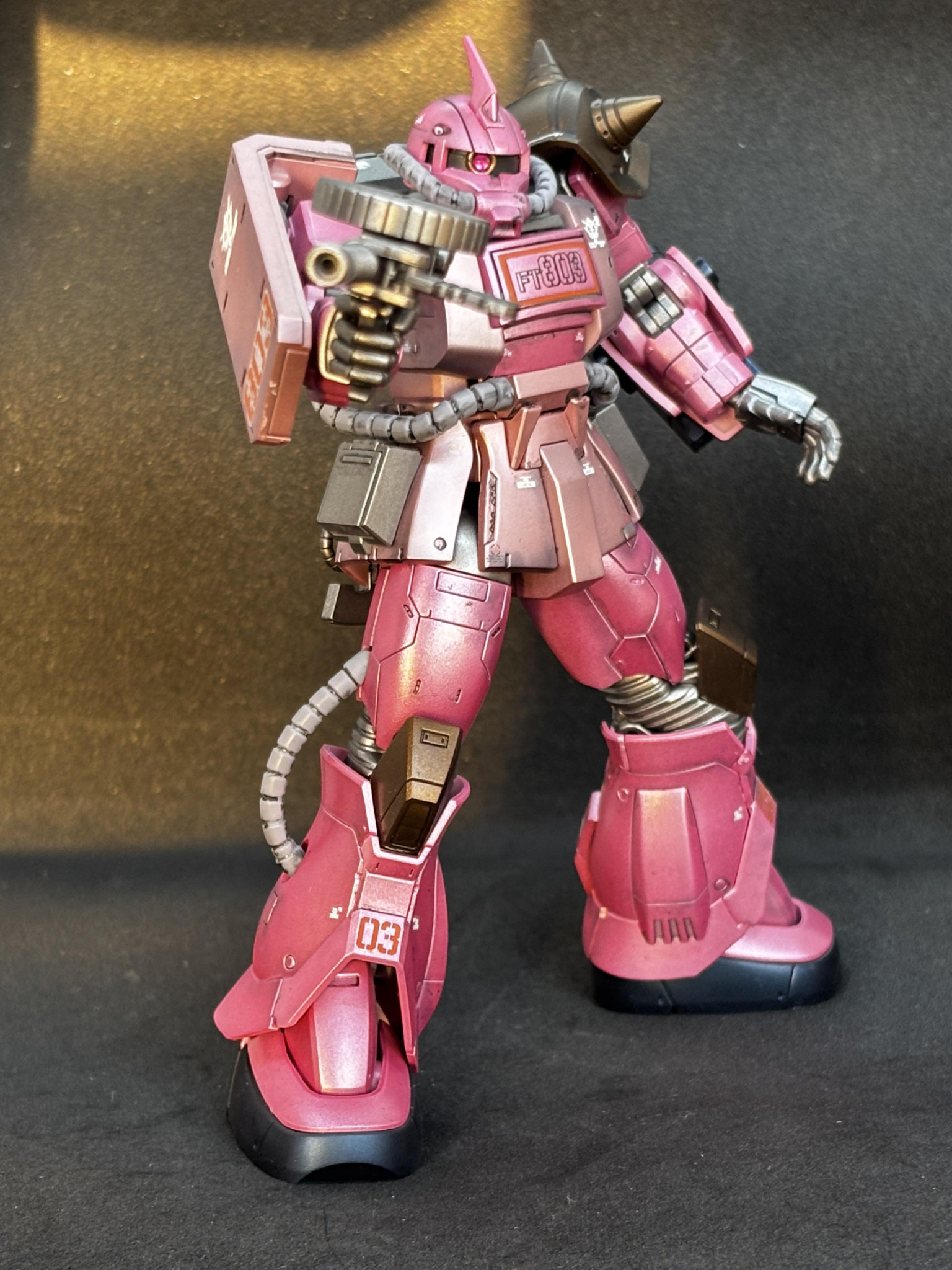 nononpapa HG 2025.11/30更新 プレバン限定ザク・デザートピンクパンサー隊 40 18 いいねしたモデラー(18) 1 0 作品を共有 プレバン限定のピンクパンサー隊を作りました。クレオスのメタルピーチとスーパーピンクゴールドで塗り分け。 肩と膝はクリアブラウンのマットキャンディ塗装。クリアブラックの細吹きと、水性墨入れで汚し表現。関節や手、武器はフィニッシャーズのライトガンメタル。デカールをアレンジして貼って最後に艶消しをトップコートしてます。モノアイは手芸店のアクセサリーパーツで作成。ヘルメット内側をかなり削ったので、ちゃんと首振りに合わせて可動します。 全塗装 コメント コメントをして応援しよう コメントにはログインが必要です cinnamon-1 41分前 美しいメタリック仕様がとても良いですね🤩 nononpapa メタリックやキャンディ塗装、マイカ塗装にハマってます。ガンプラだけでなく、サンライズ系や昭和の車も作ります。 5 プレバン限定ガンダムローズ 白はボーンペイントのネオマイカ、クレオスのクリスタルカラー、… 6 エグザベ専用ギャン エグザベ専用ギャンです。クレオスのアイスシルバーにクリスタル… nononpapaさんのページ この作品をお薦め作品に設定する Please login to update your profile! Please login to update your profile! Please login to update your profile! Please login to update your profile!