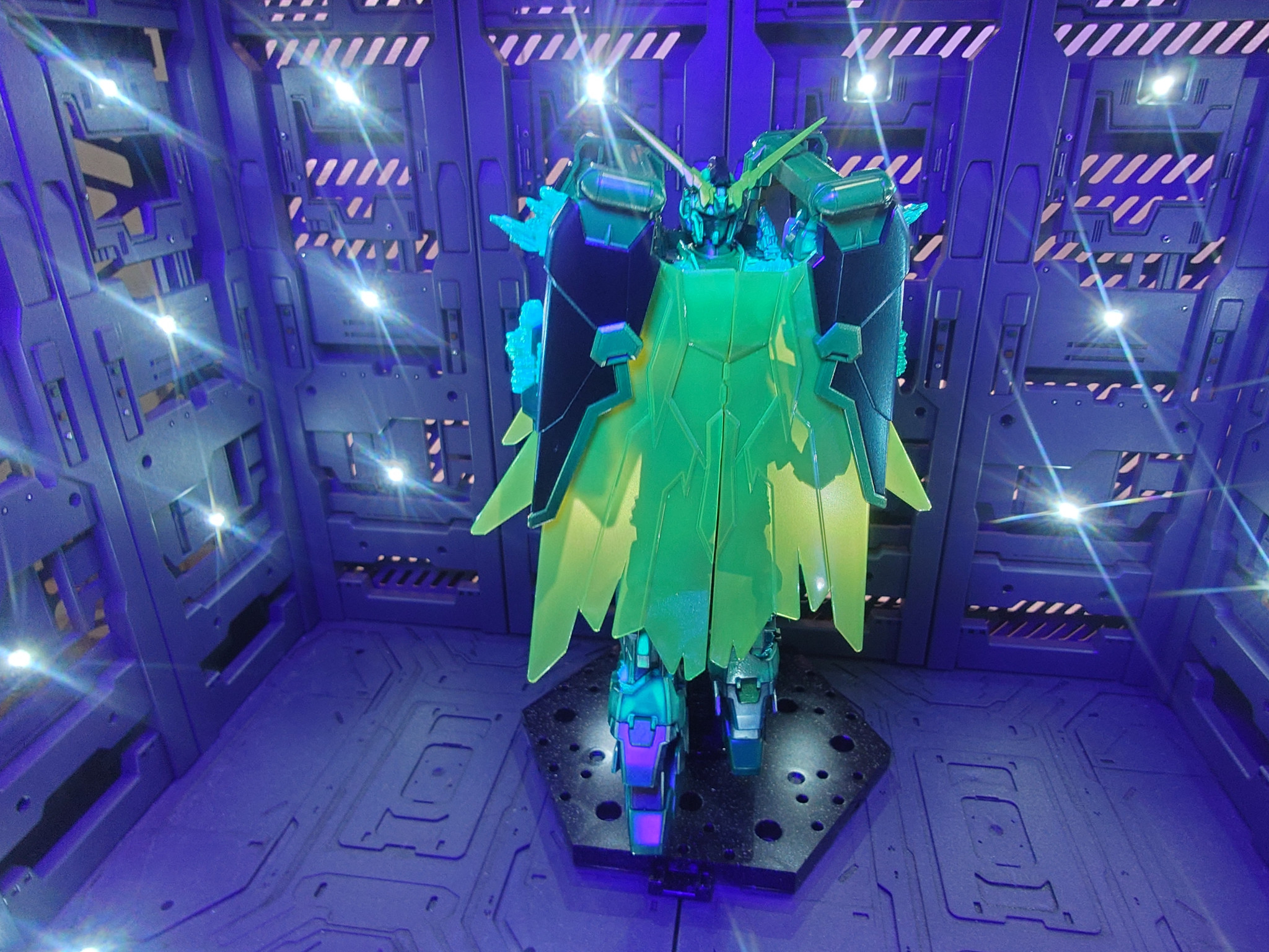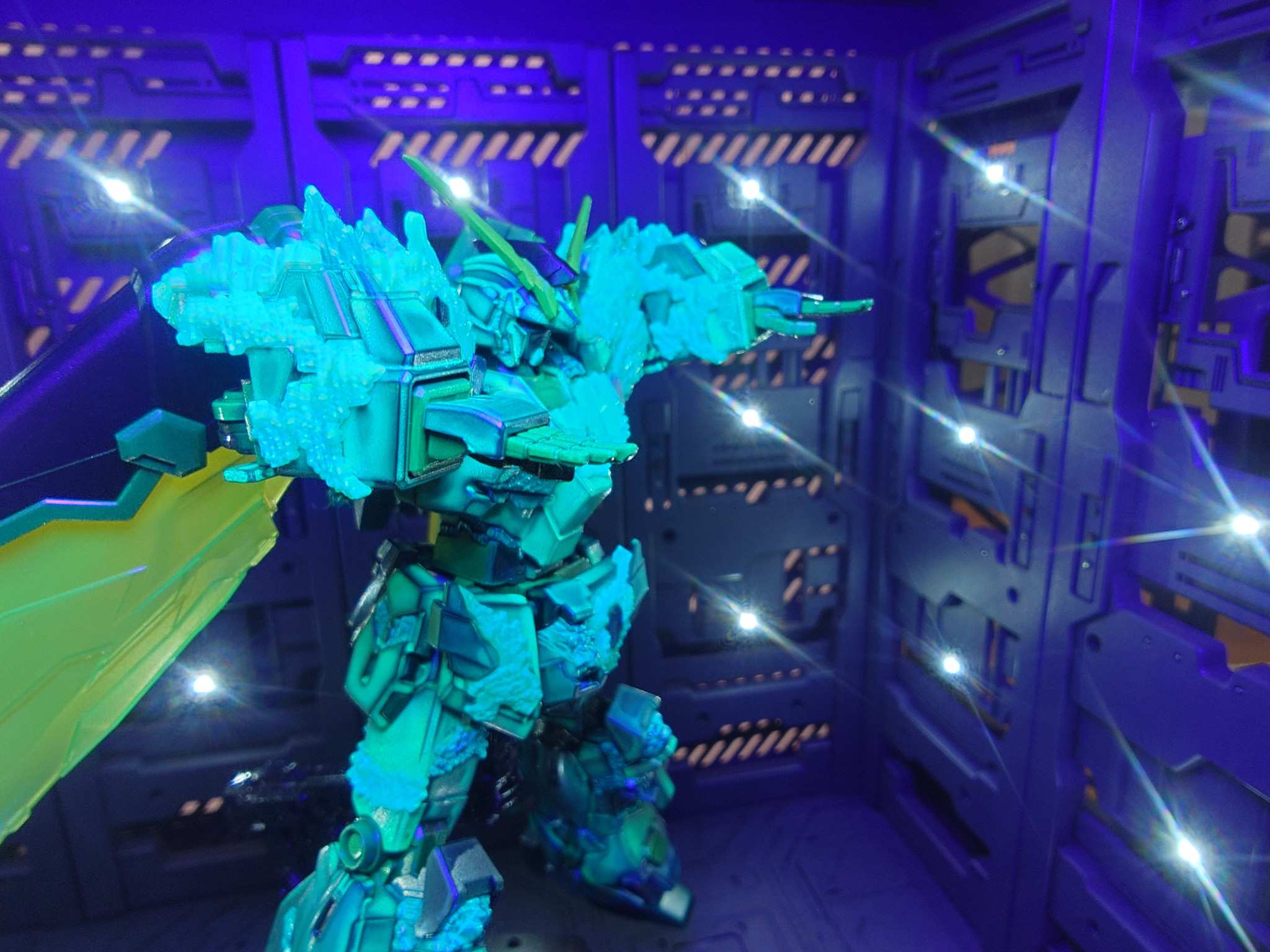 蛍光塗料で塗装しているので、ブルーライトで光ります。