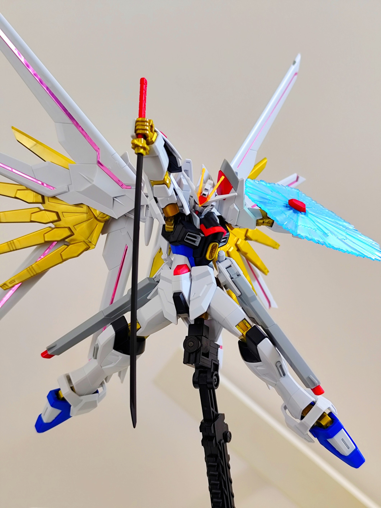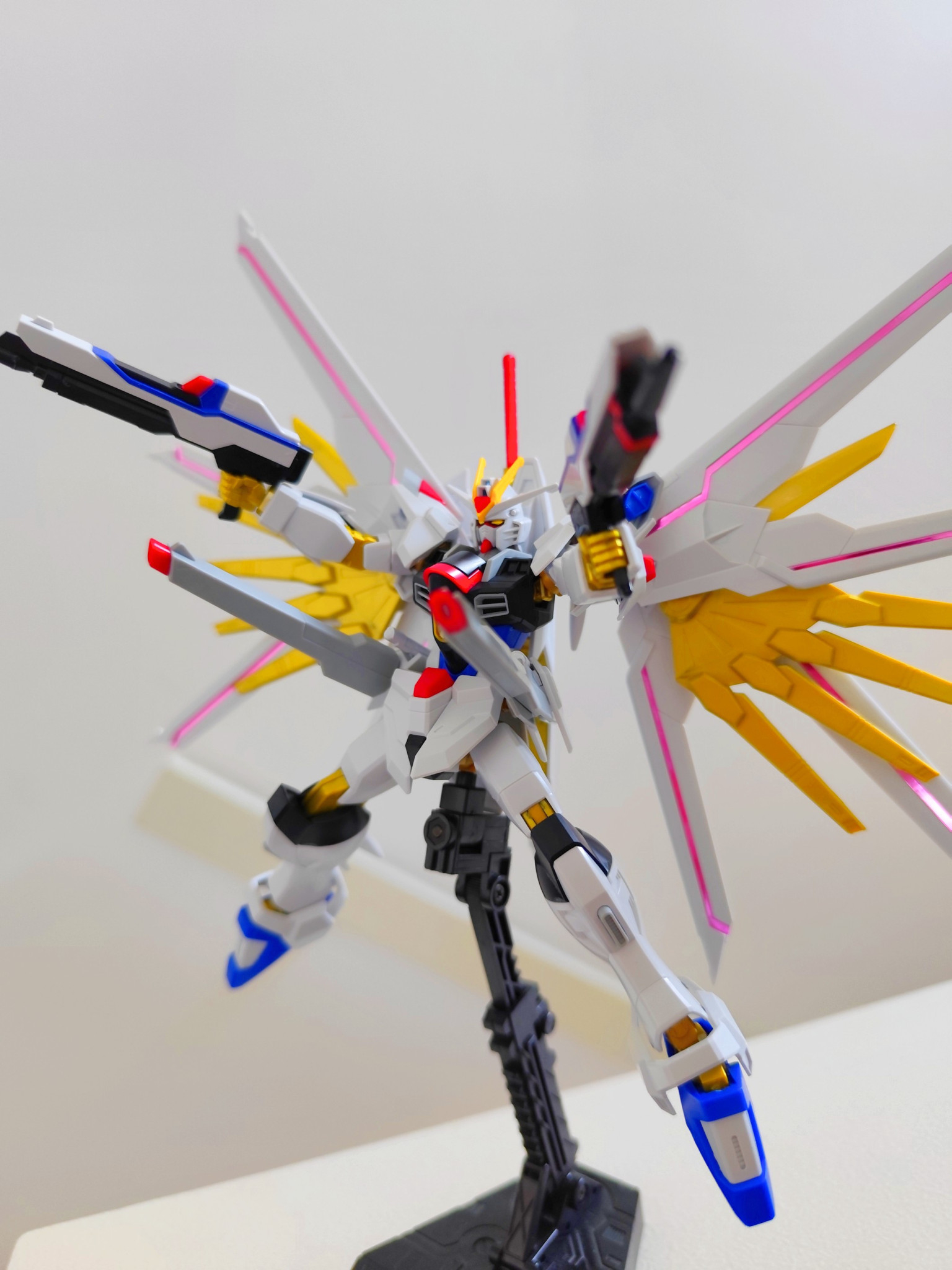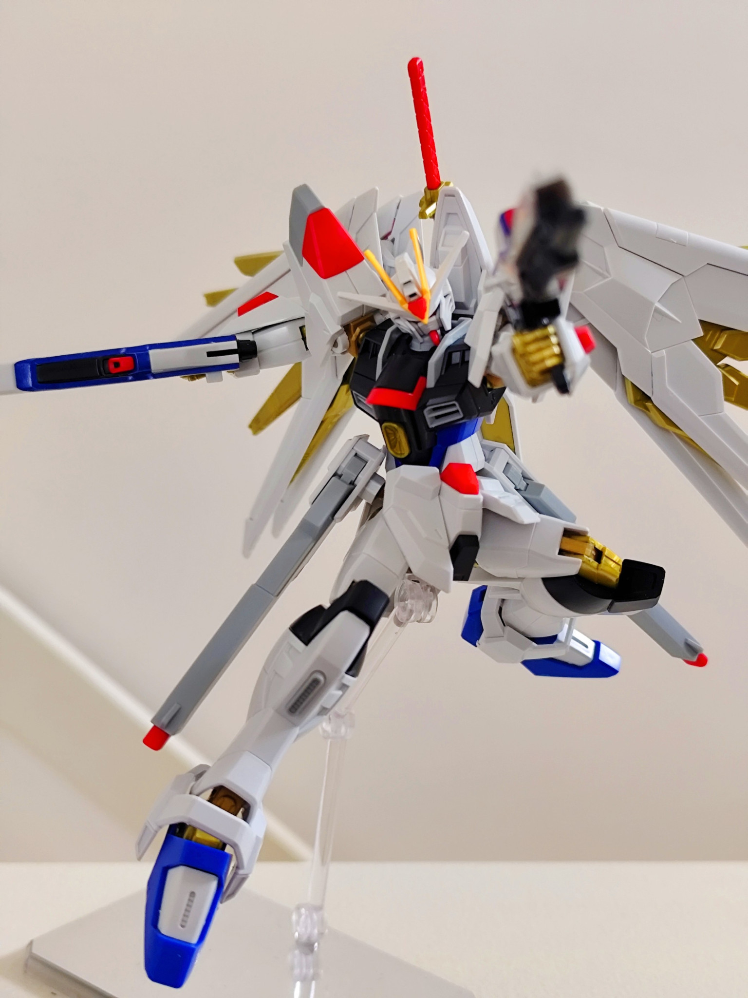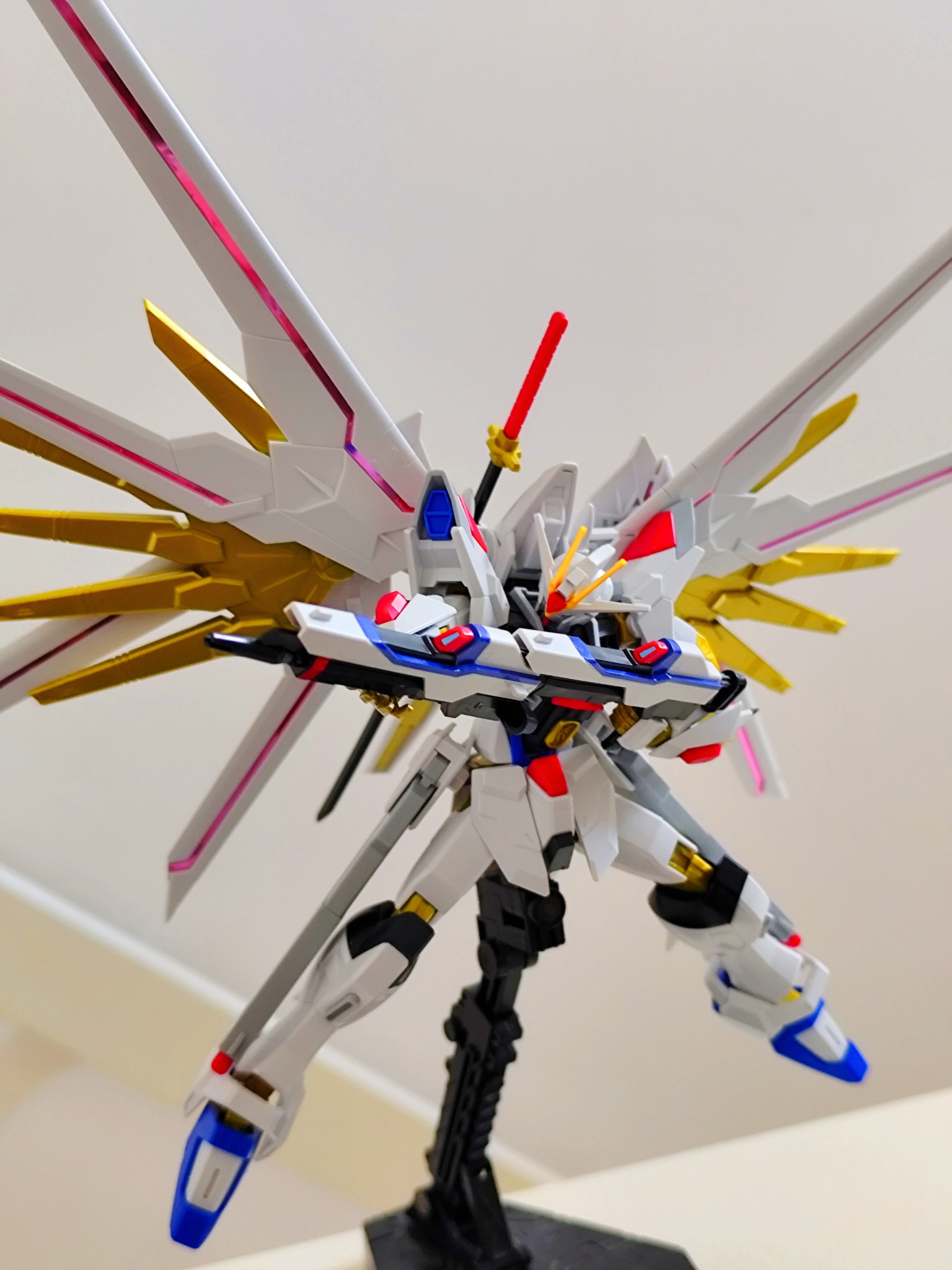 以上。マイティーストライクフリーダムでした。久しぶりに投稿してみました。素組みとシールだけで出来を確かめたいという方のお力になれればと思います。ポージング頑張りながら、皆様の反応良ければ少しずつ再開しようかと思います笑
