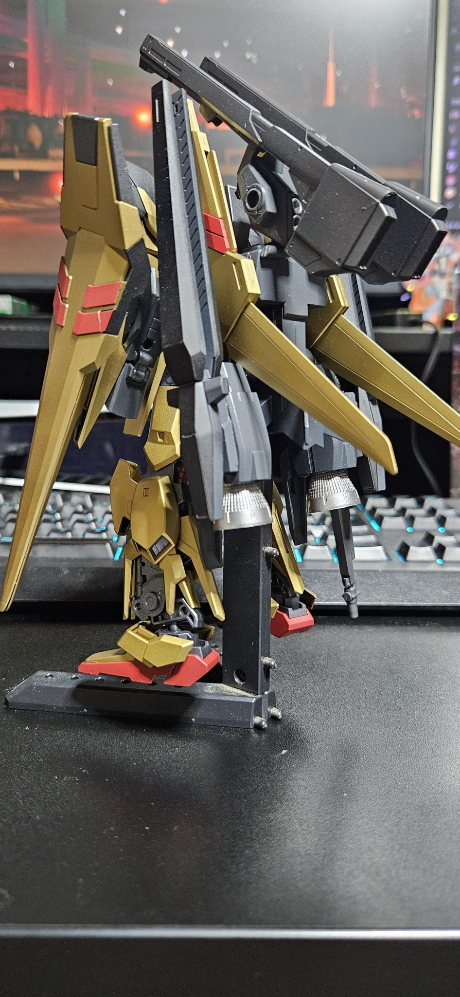 サブにデルタカイのLMBを懸架しており、メインはデルタプラス・リゼルのLBRです。BWSメガライドランチャーを加工し、武装は300mmキャノンとデルタカイのPFFになります。近接武装はシールド内のビームガン兼用ビームサーベル、腰部サイドアーマー内に百万式から流用したビームソードになります。