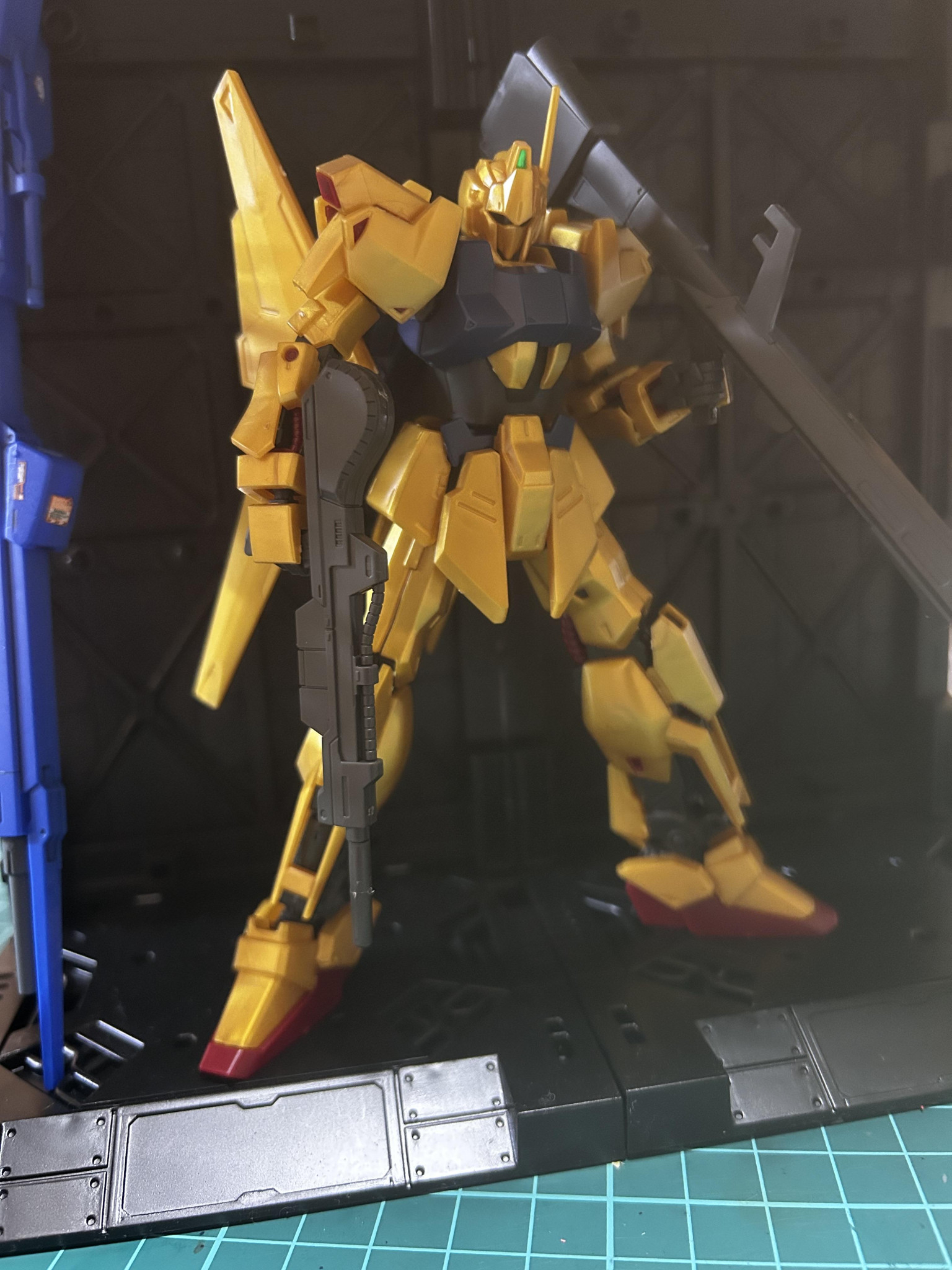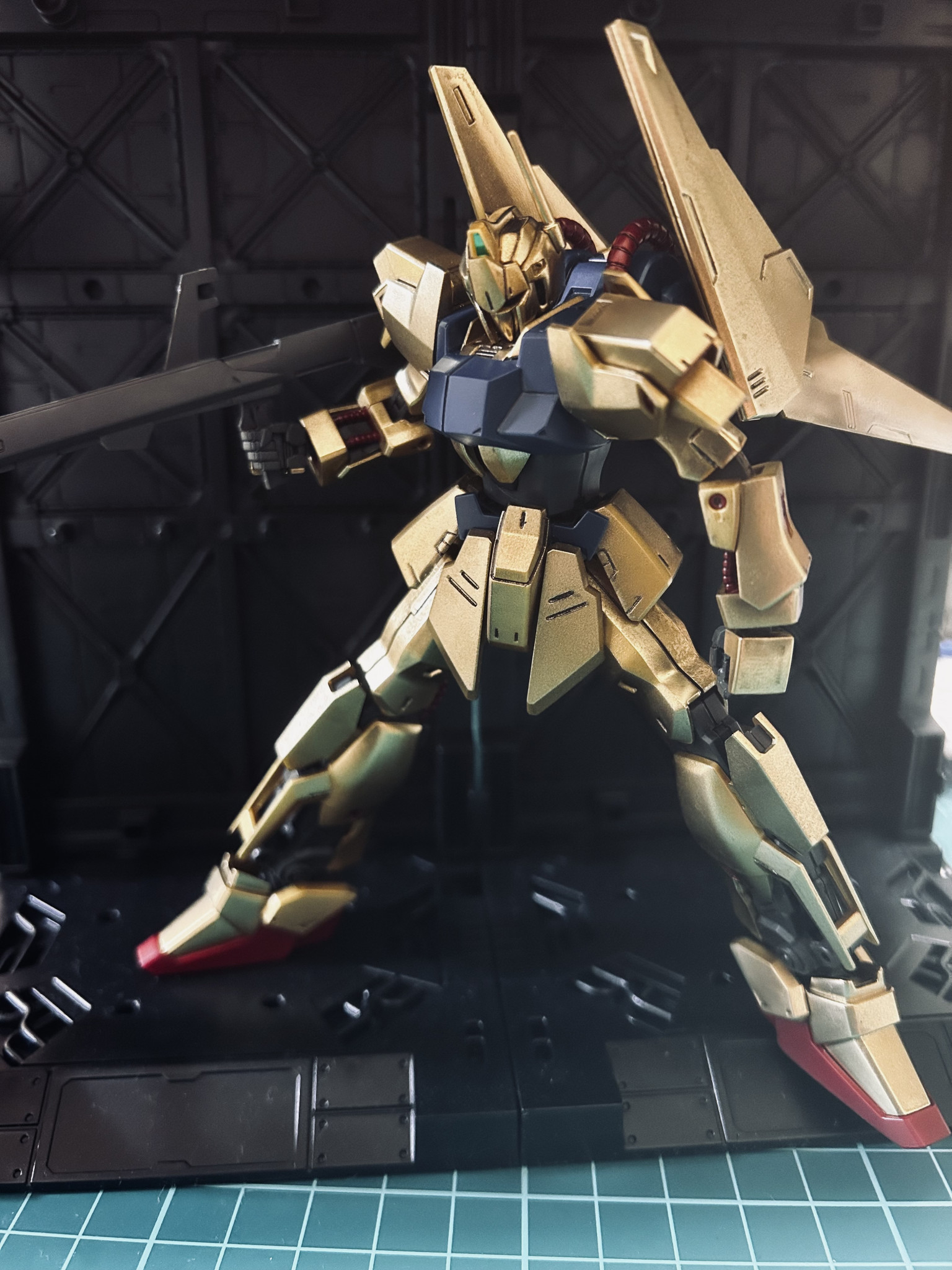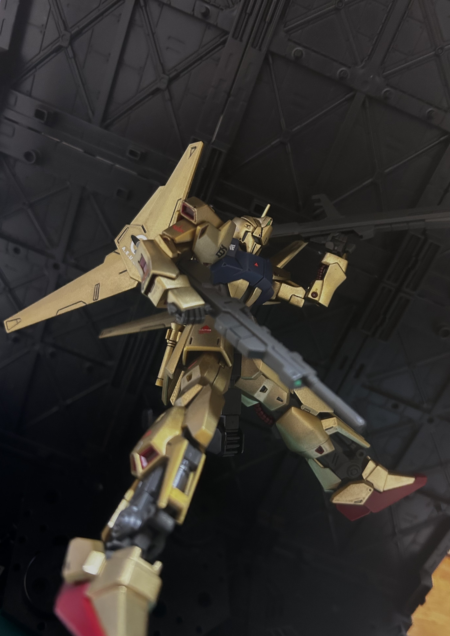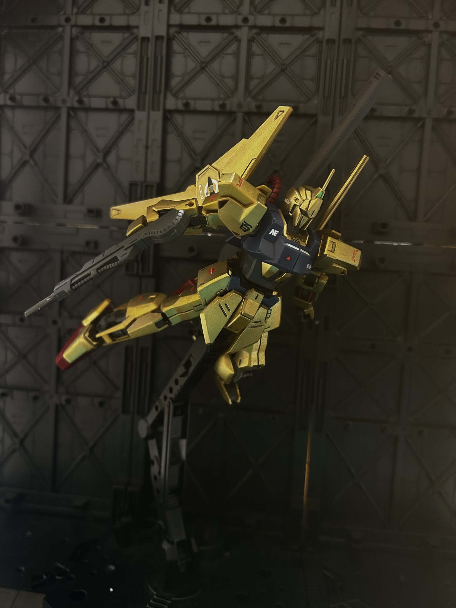 実は初めてゴールド部分をスプレー塗装で仕上げてみました!私自身ガンプラ制作を始めて1年も経たない新人モデラーの為技術の粗が目立ちますが、それでもこの百式はめちゃくちゃカッコよく出来たんじゃないかなあと勝手に自画自賛してます笑