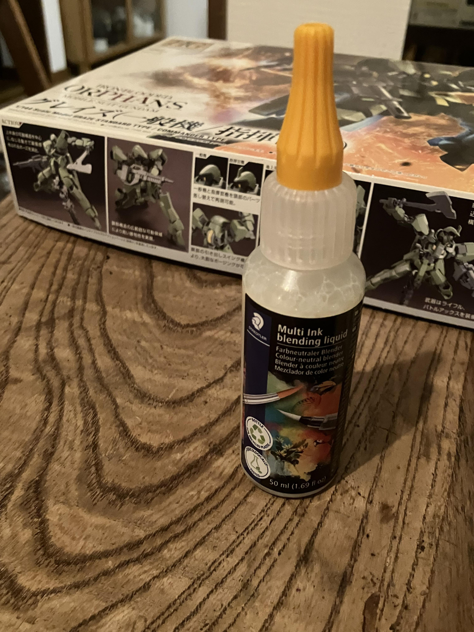 特徴は、このブレンディングリキッドが有ればペンで塗装して乾燥した後で塗装を拭うことが出来る点です🖌️