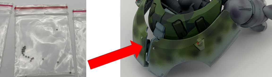 ビス穴にハイキューパーツのスチールボールをはめ込む