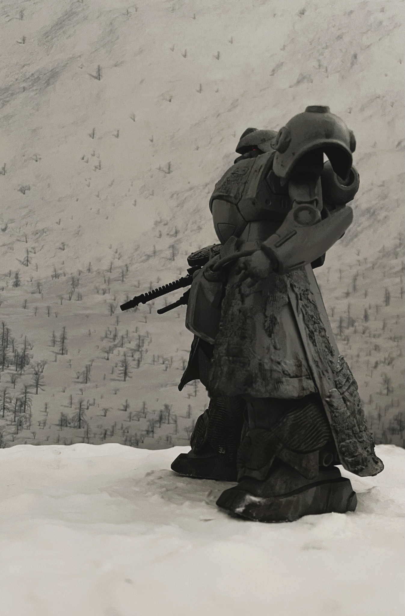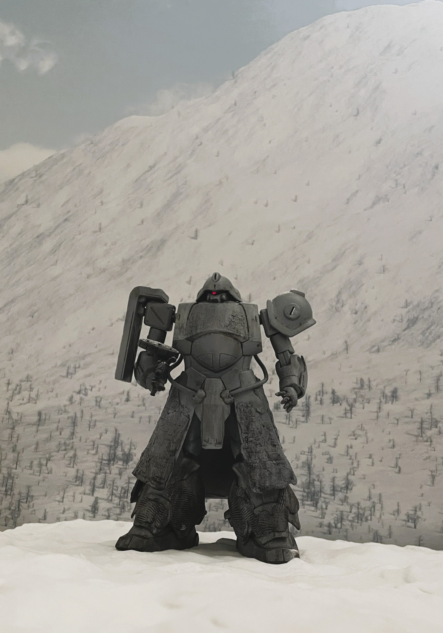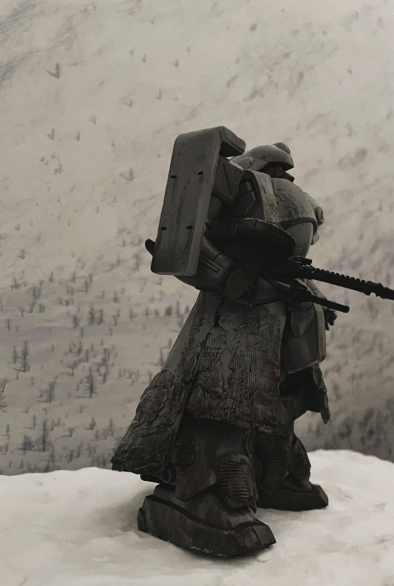 次回作、雪上の戦闘シーンジオラマを構想中です。量産型ゼータガンダムも間に合えば一緒に置いてみたいところです。