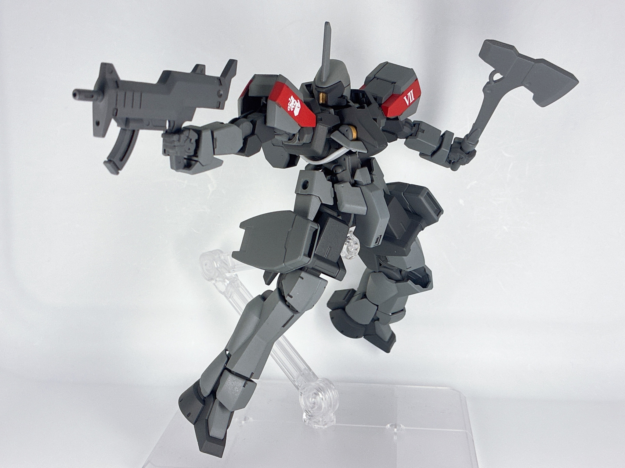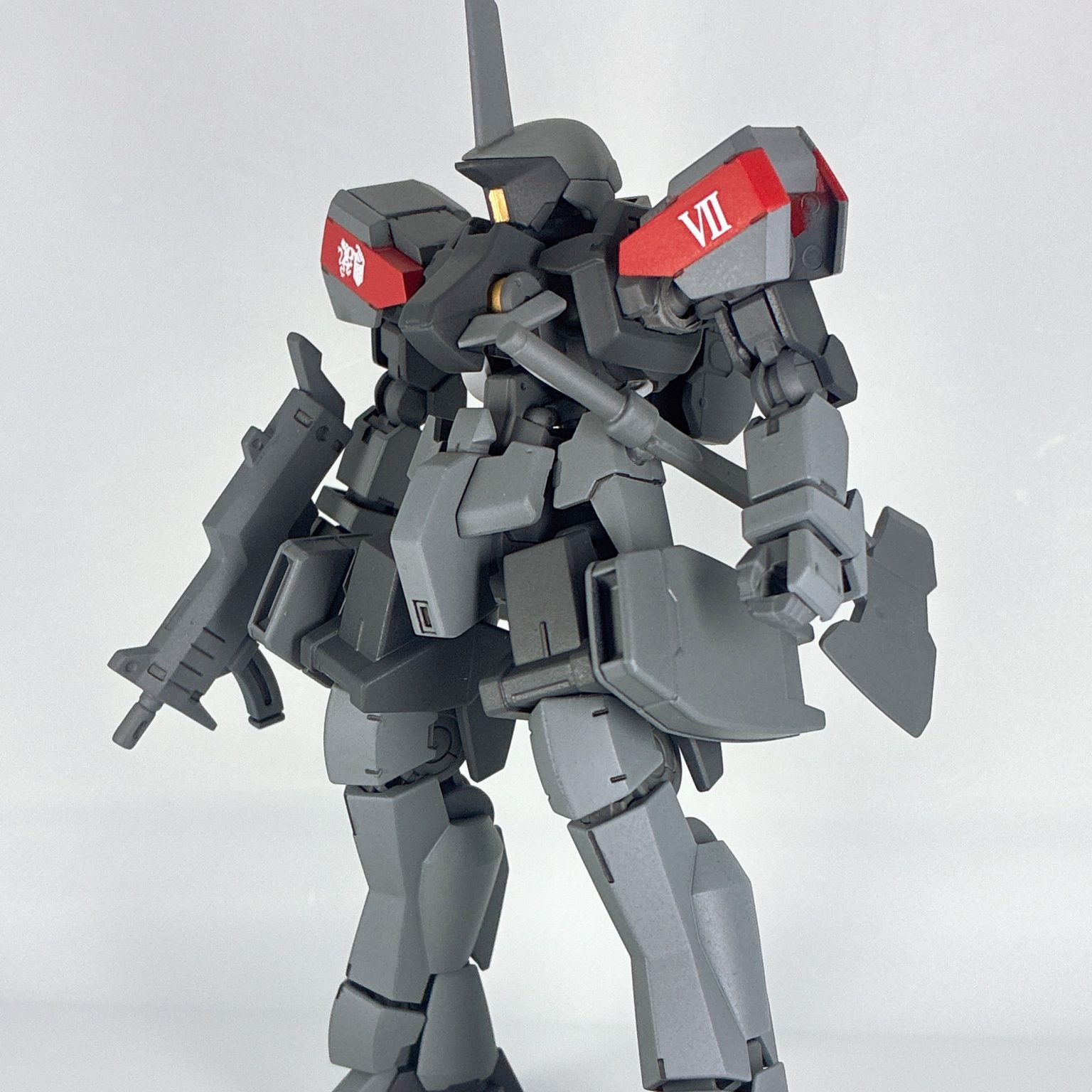 ギャラルホルン所属のアリシア用のグレイズです。肩の赤いラインは彼女の専用機である事の証。今回は陸戦仕様になっています。