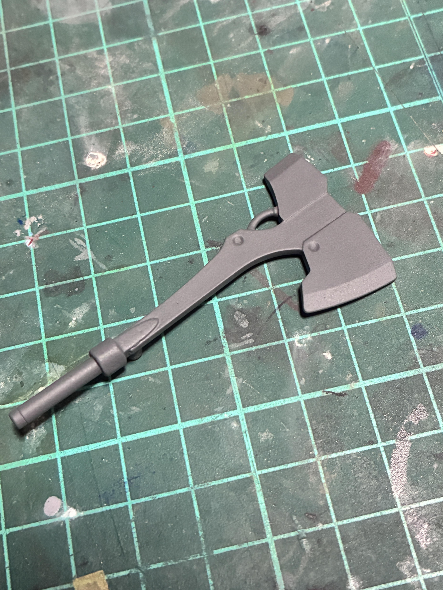 バトルアックスの肉抜きもランナーを使って埋めました。あと片方の軸は切り落としました。