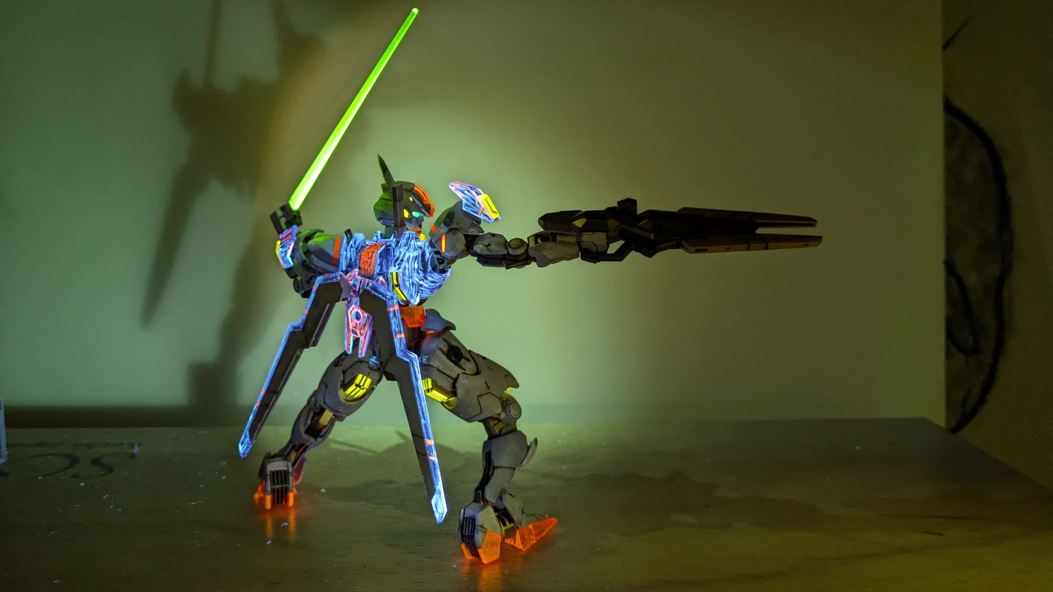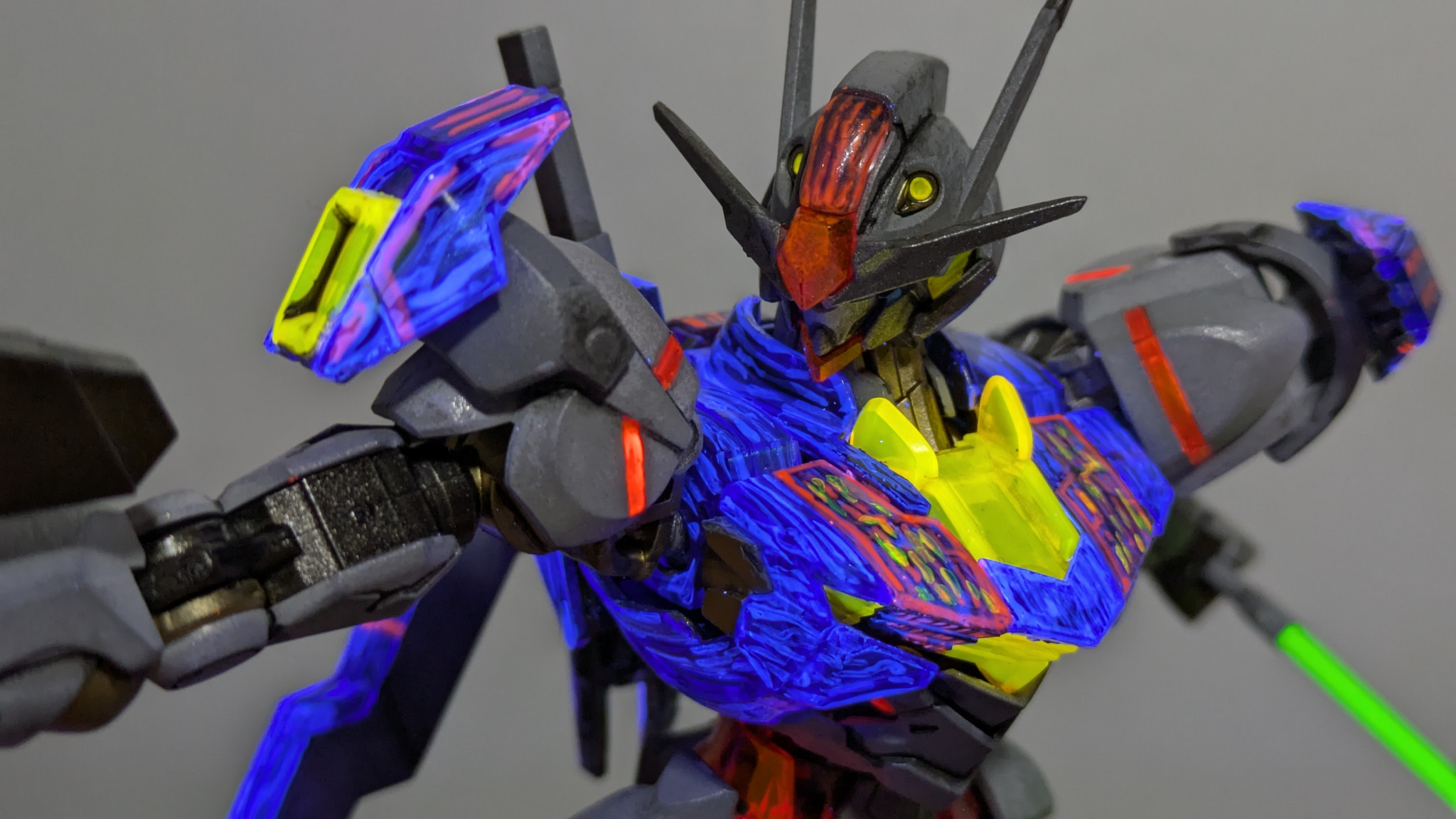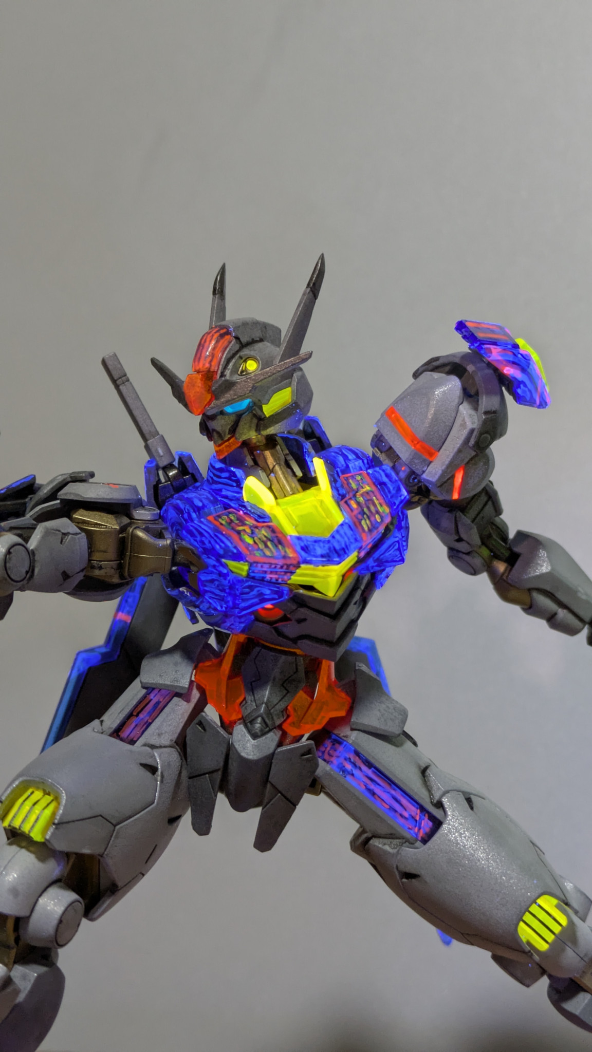 せっかくのクリアモデルなので、キレイに光らせたいと思い、蛍光塗料を使いまくりました✨