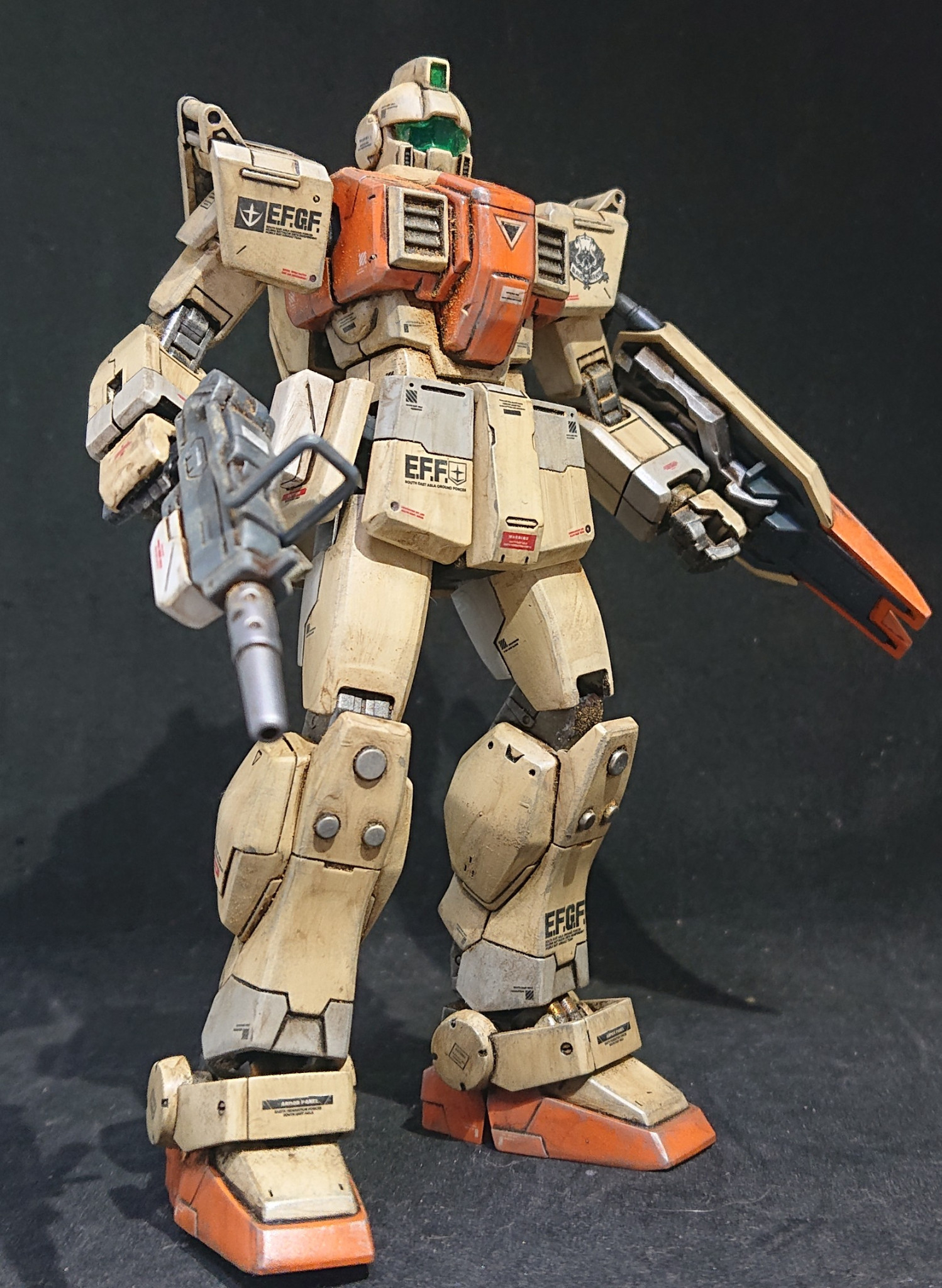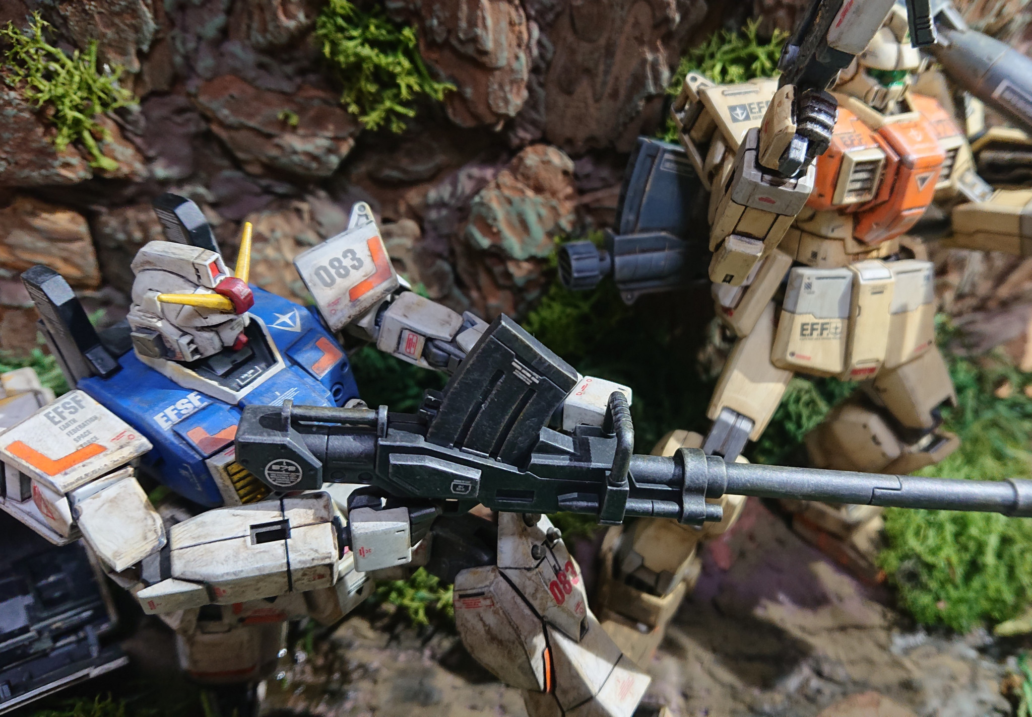 今回作成した陸戦型ジムと以前作成した陸戦型ガンダムをウェザリング、汚し塗装で仕上げました❗