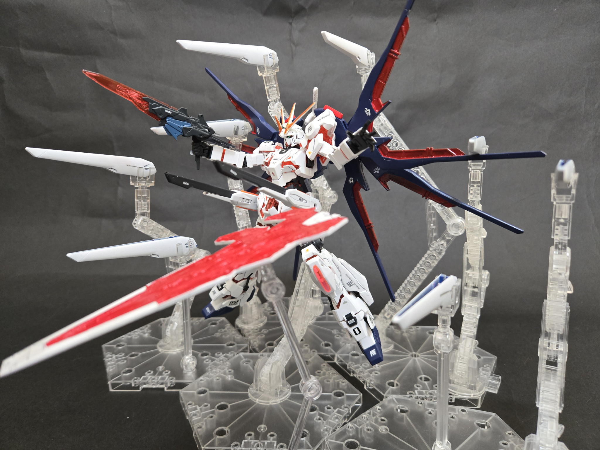 主にストライクフリーダムガンダムを始めとする、様々なアナザーガンダムの要素を宇宙世紀的に解釈して機体に取り込んだ結果、攻撃力や機動力は大幅に強化され、それにともなってカケル自身の反応速度などへの追従性も高められている。