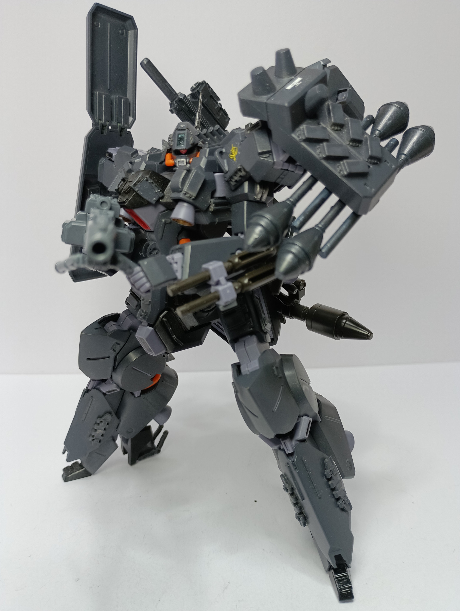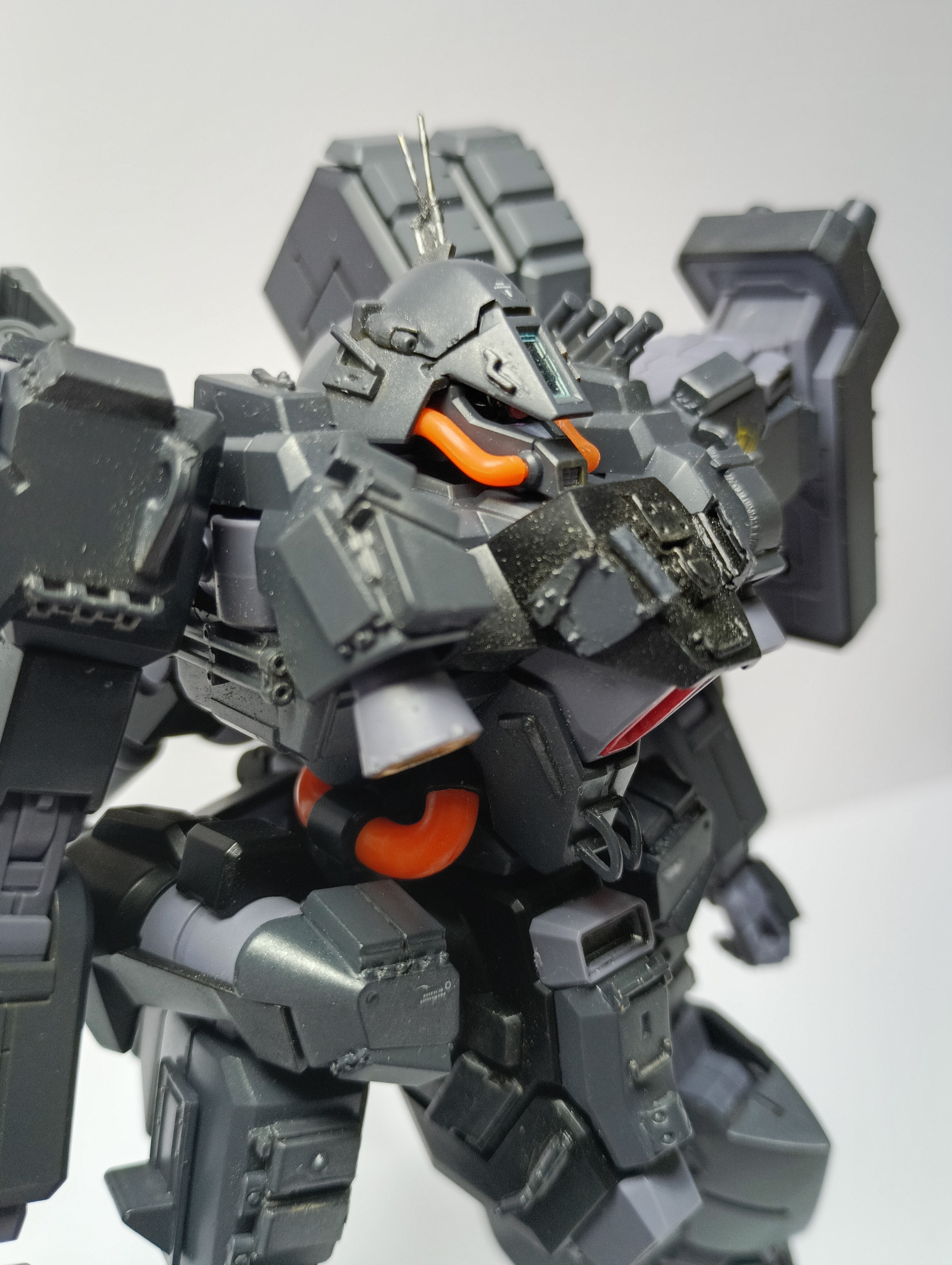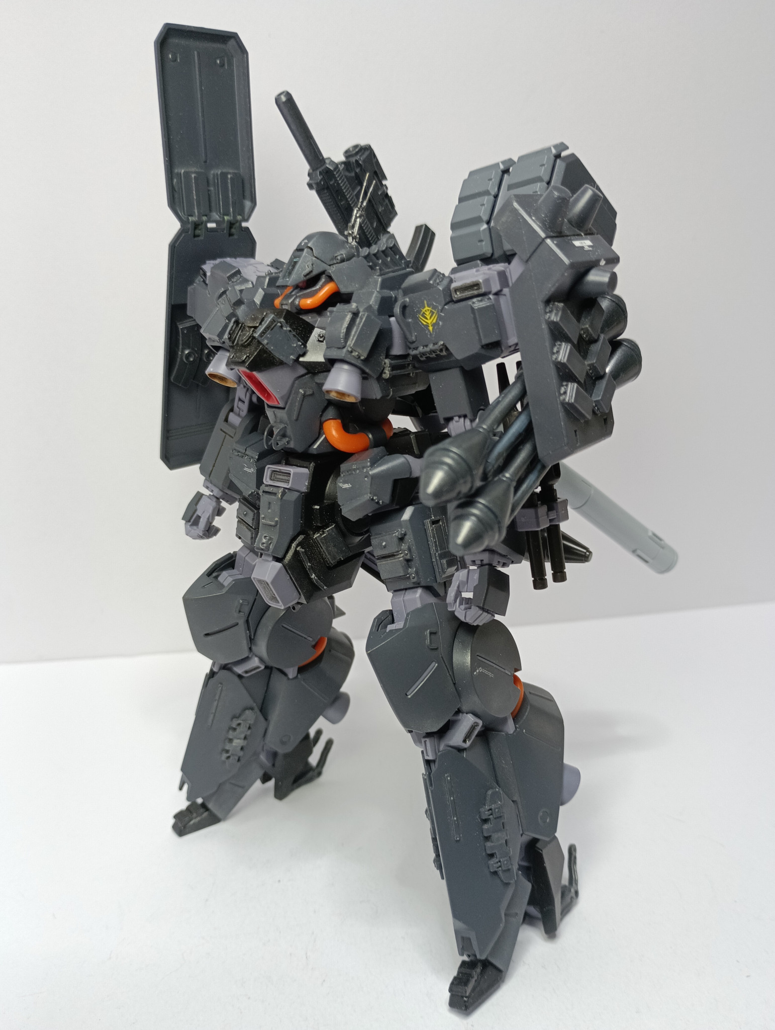 主な改造点は、ギラズールの武装の移植と、各所に戦車プラモのパーツの貼り付けを行っています。