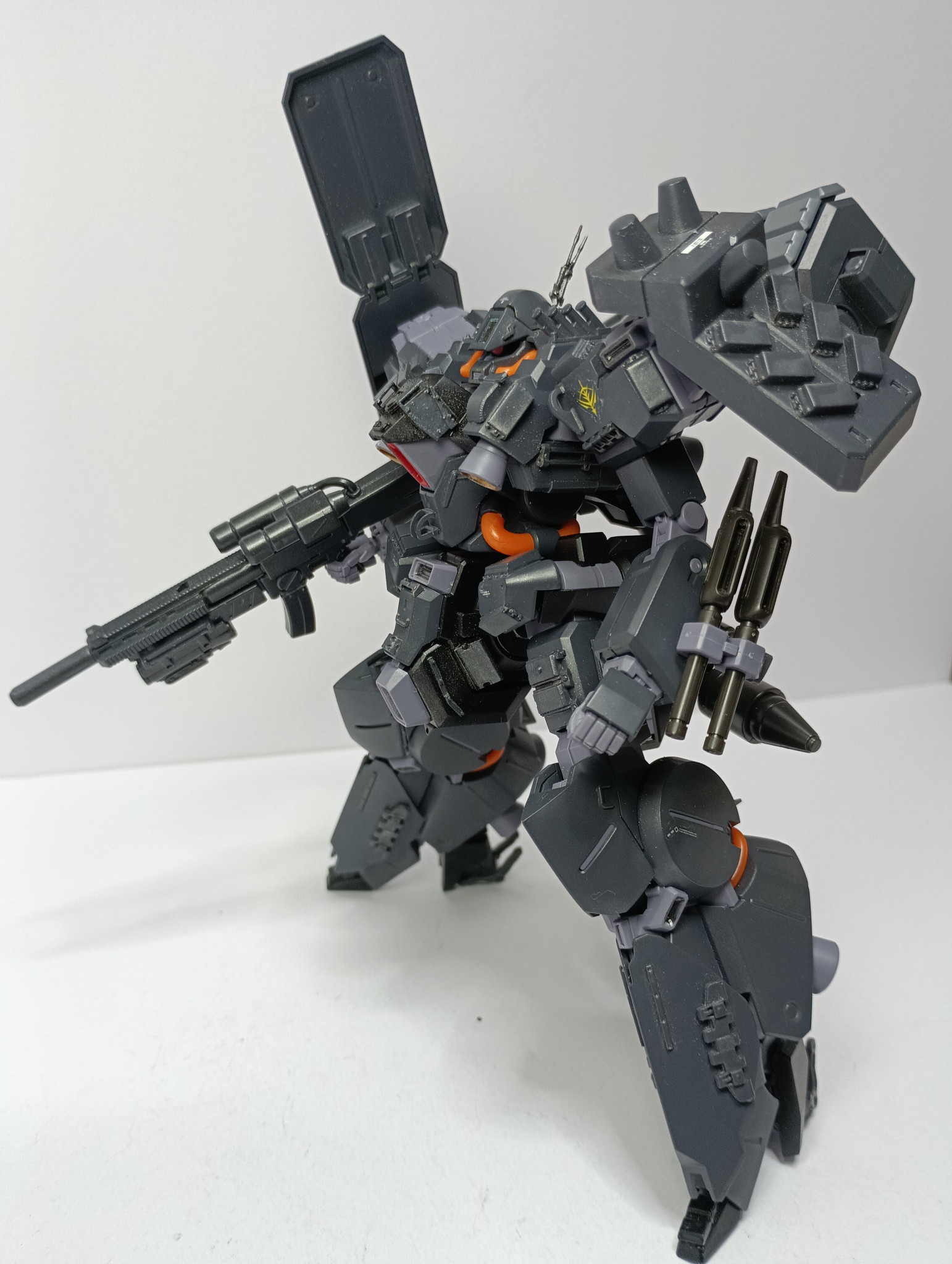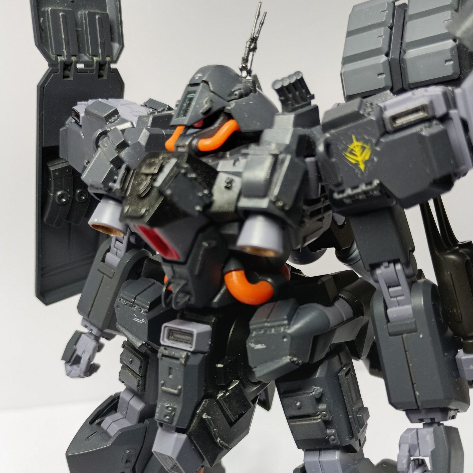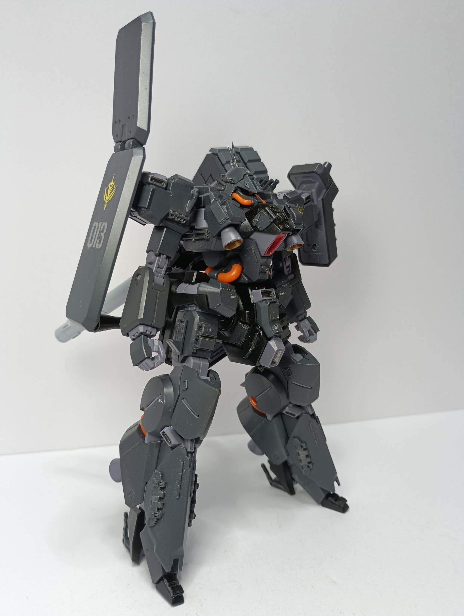 主な改造点は、ギラズールの武装の移植と、各所に戦車プラモのパーツの貼り付けを行っています。