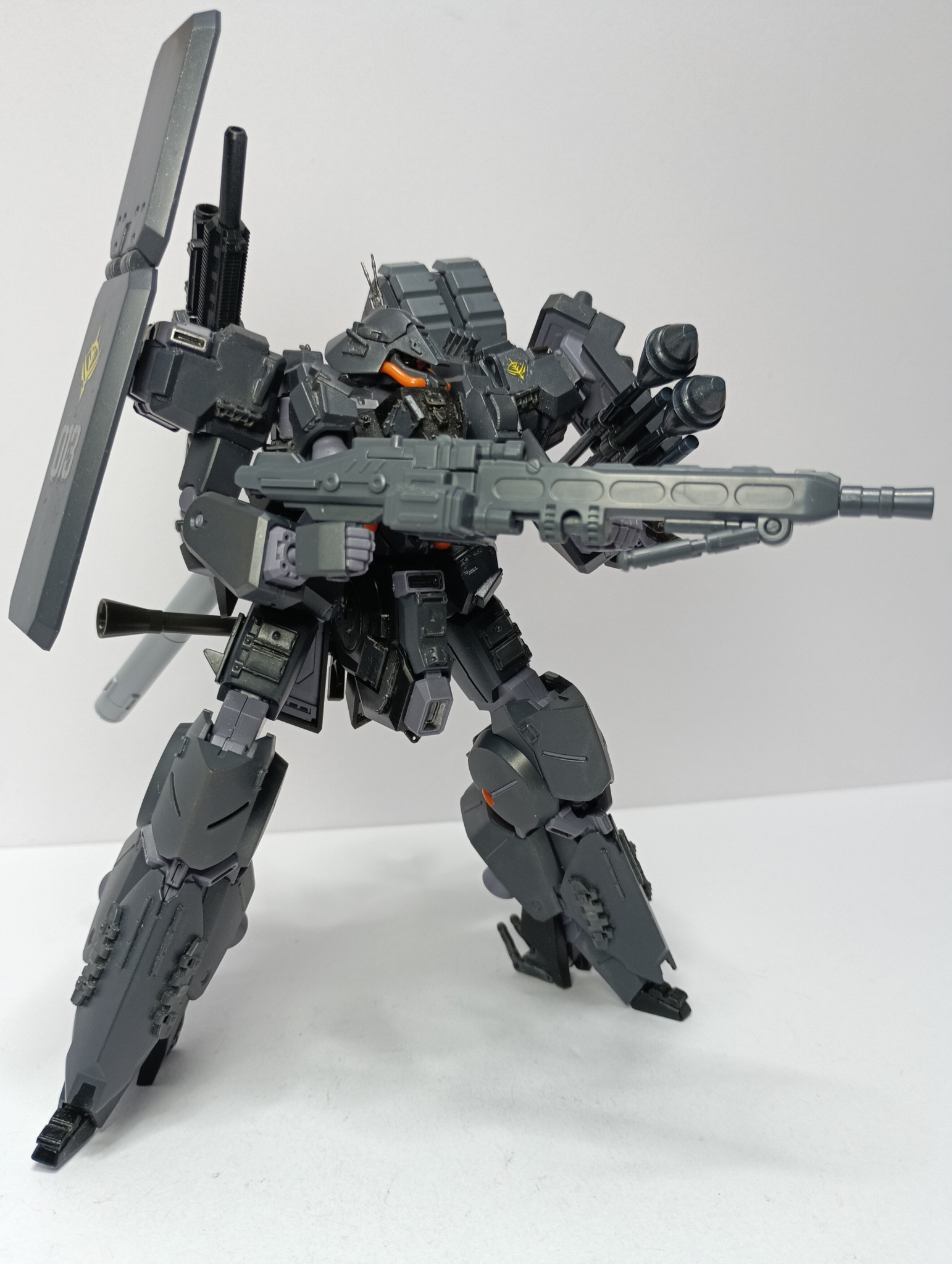 ビームライフル装備。塗装はファントムグレーとセミグロスブラック。もう少し、黒に近い色で統一してもよかったのかな…とちょっと後悔。