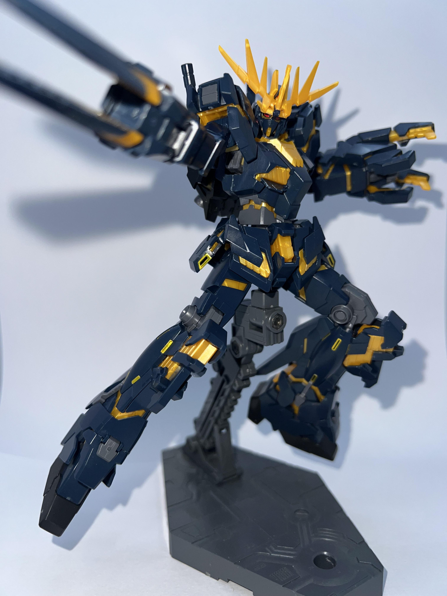 HGUCユニコーンガンダム2号機 バンシィ(デストロイモード)を素組みしました。アーティファクト筆塗りが平日だとなかなかできないのでその平日の隙間時間で作成しました。