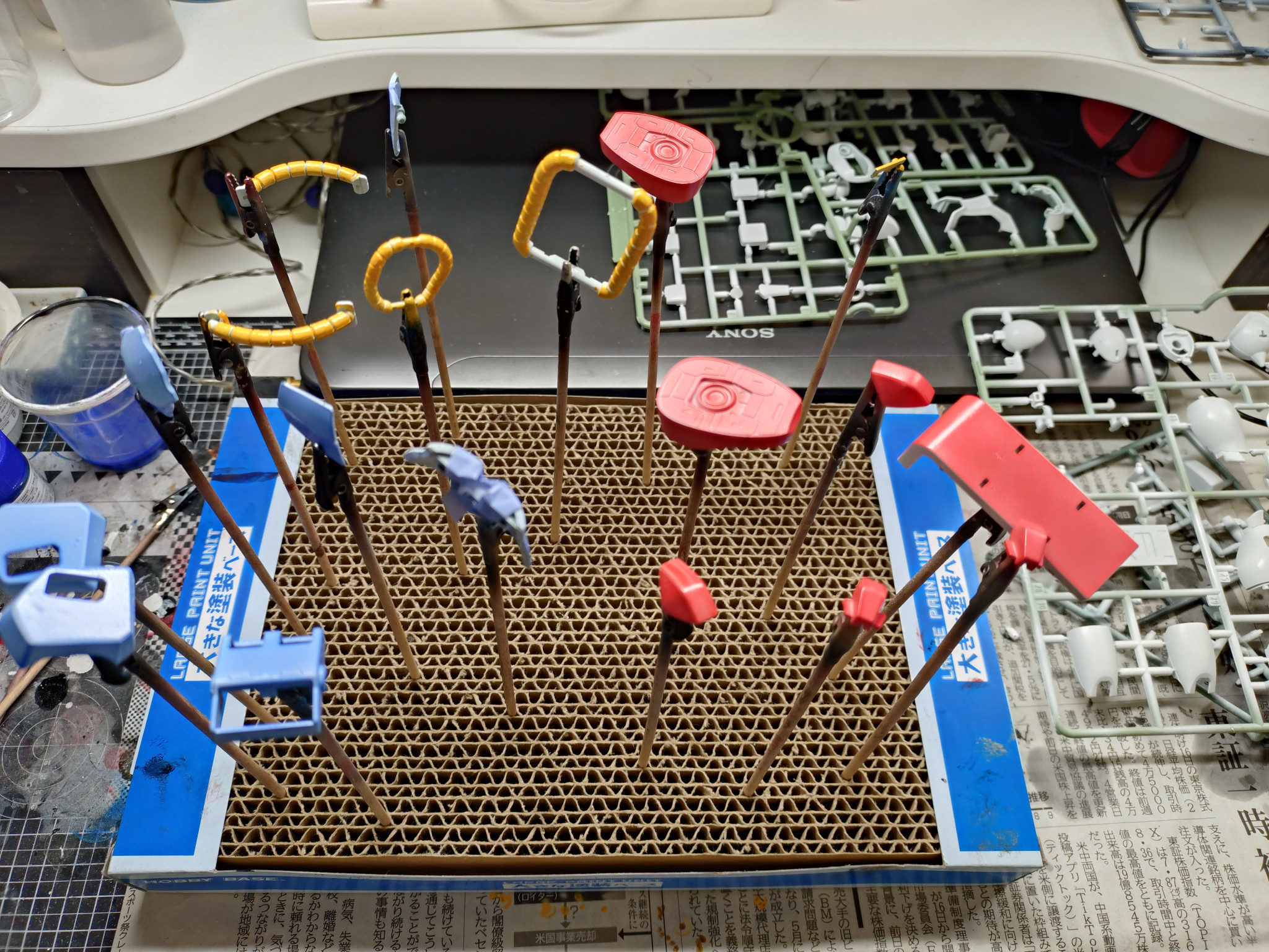 普段余りやらない塗分け。白下地から少しずつ色を重ね行ったので、パーツ数の割に結構手間掛けました。薄く塗らないと、すぐタレる。