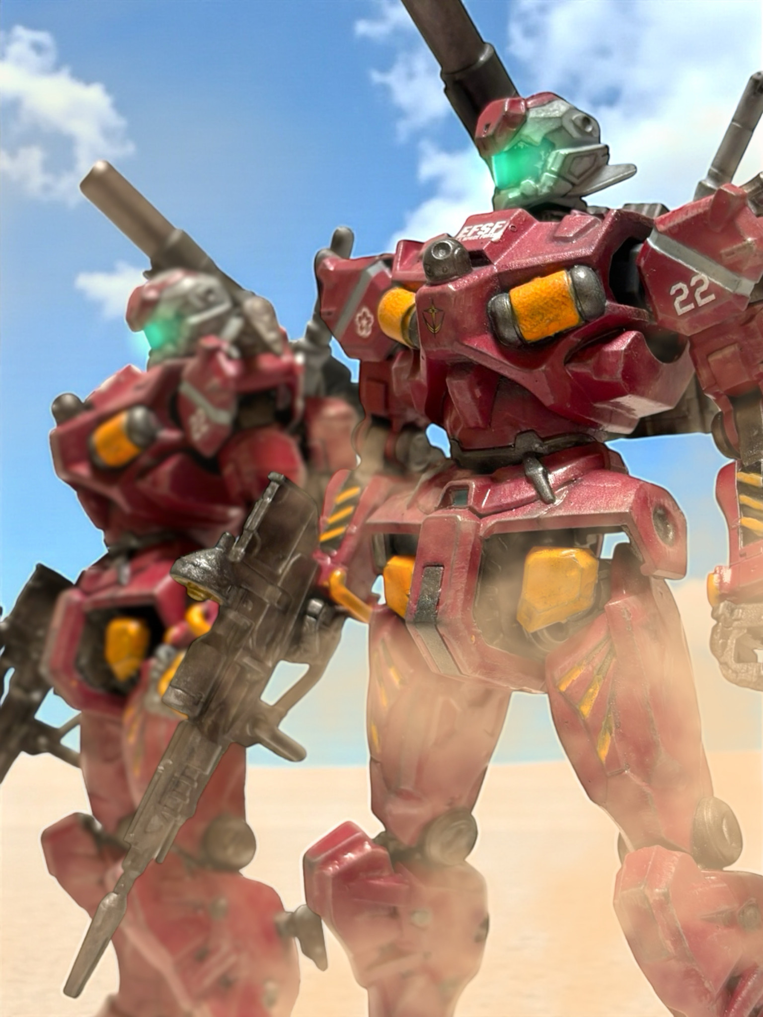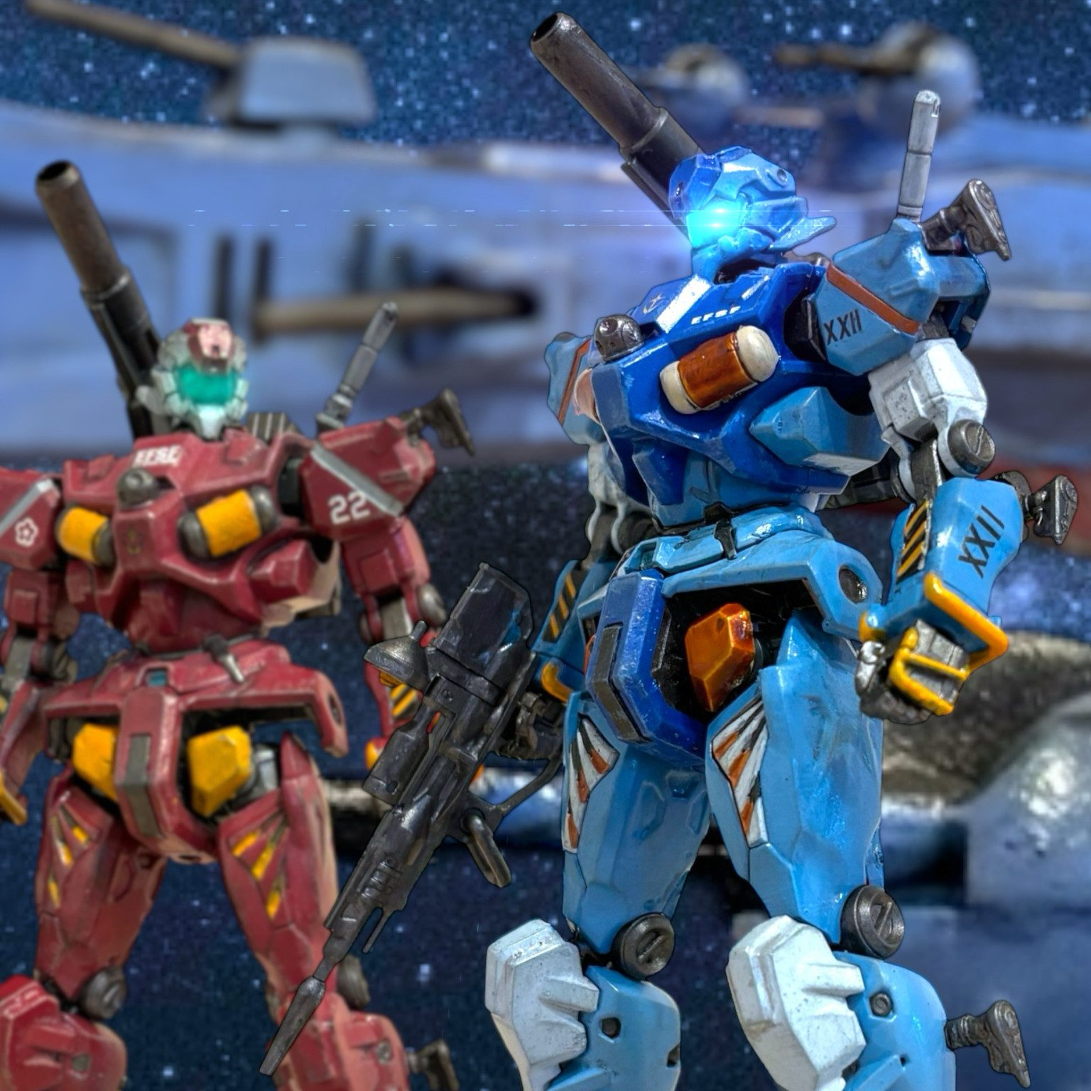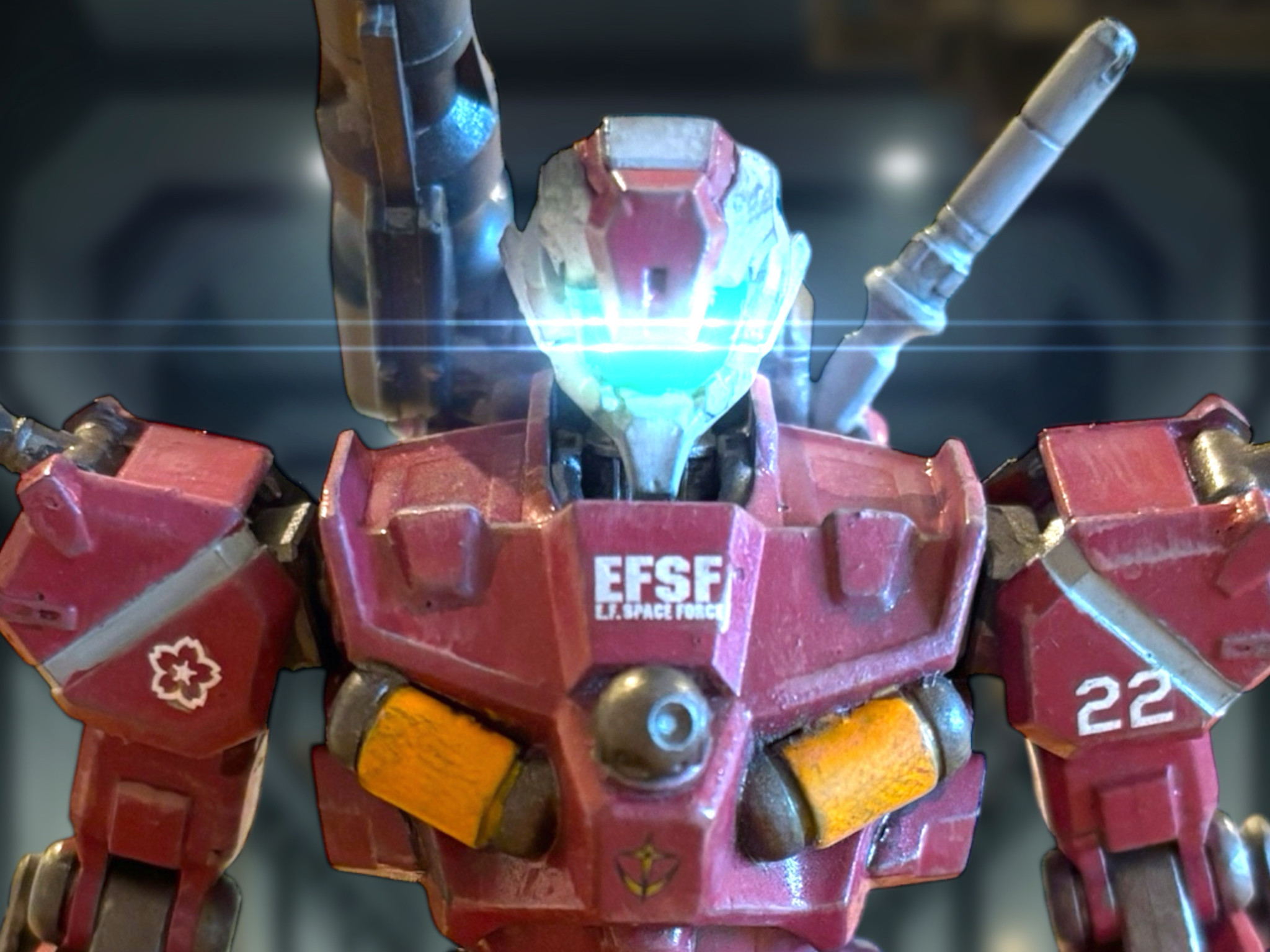 クラバに任務で潜入する話にしようと思いましたが、青い方も赤い方も、機体に思いきり連邦のエンブレムと「EFSF」て入ってるので、この機体では参戦できなさそうですね(gundam-kao5)