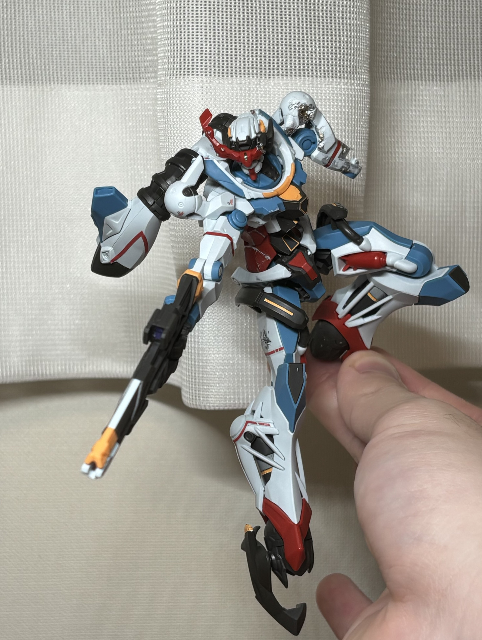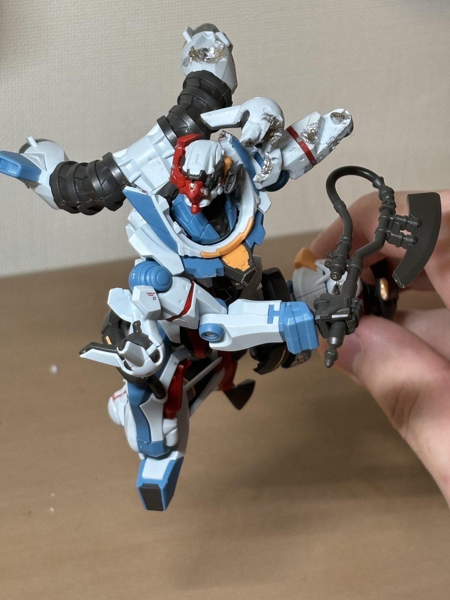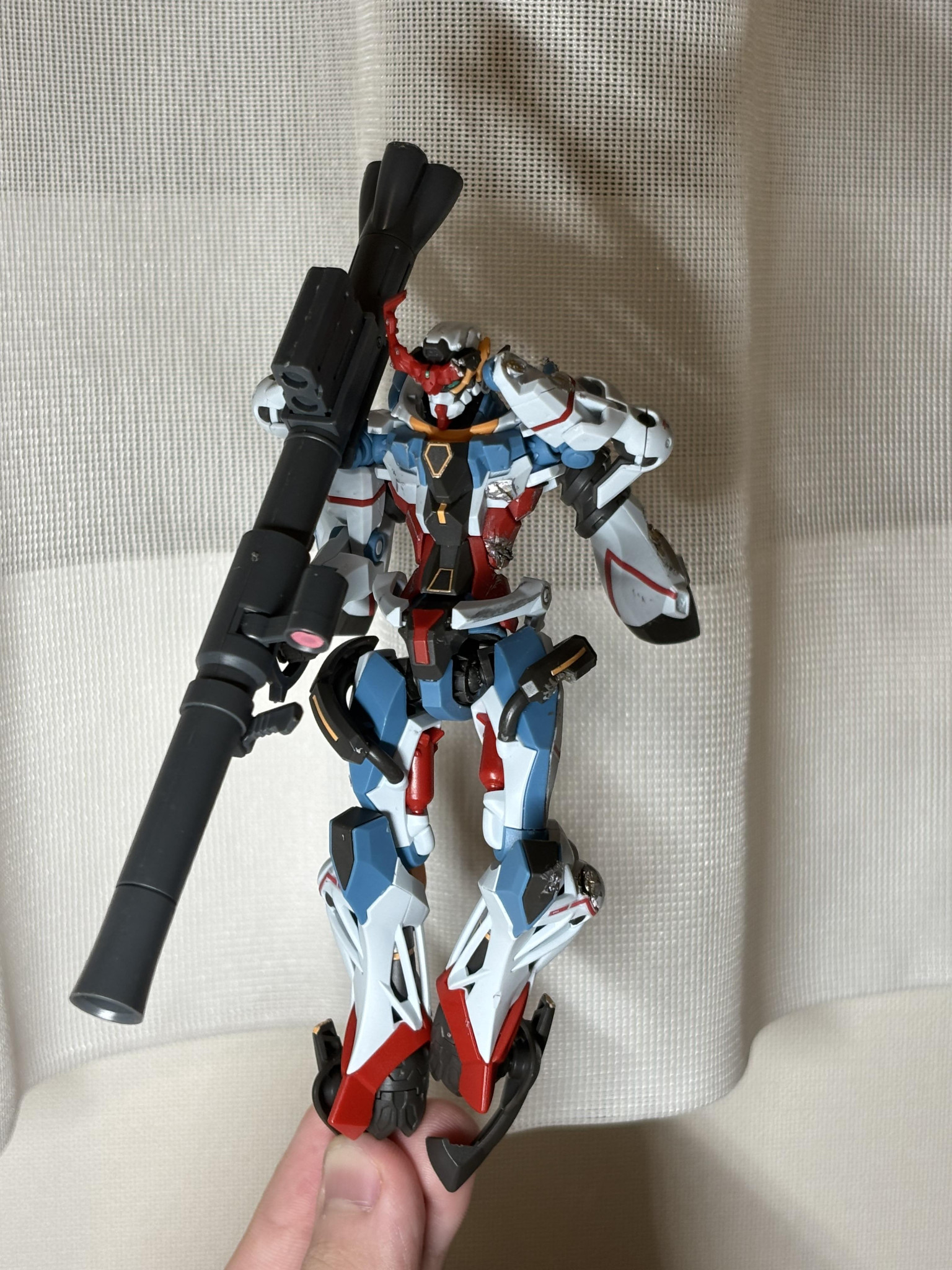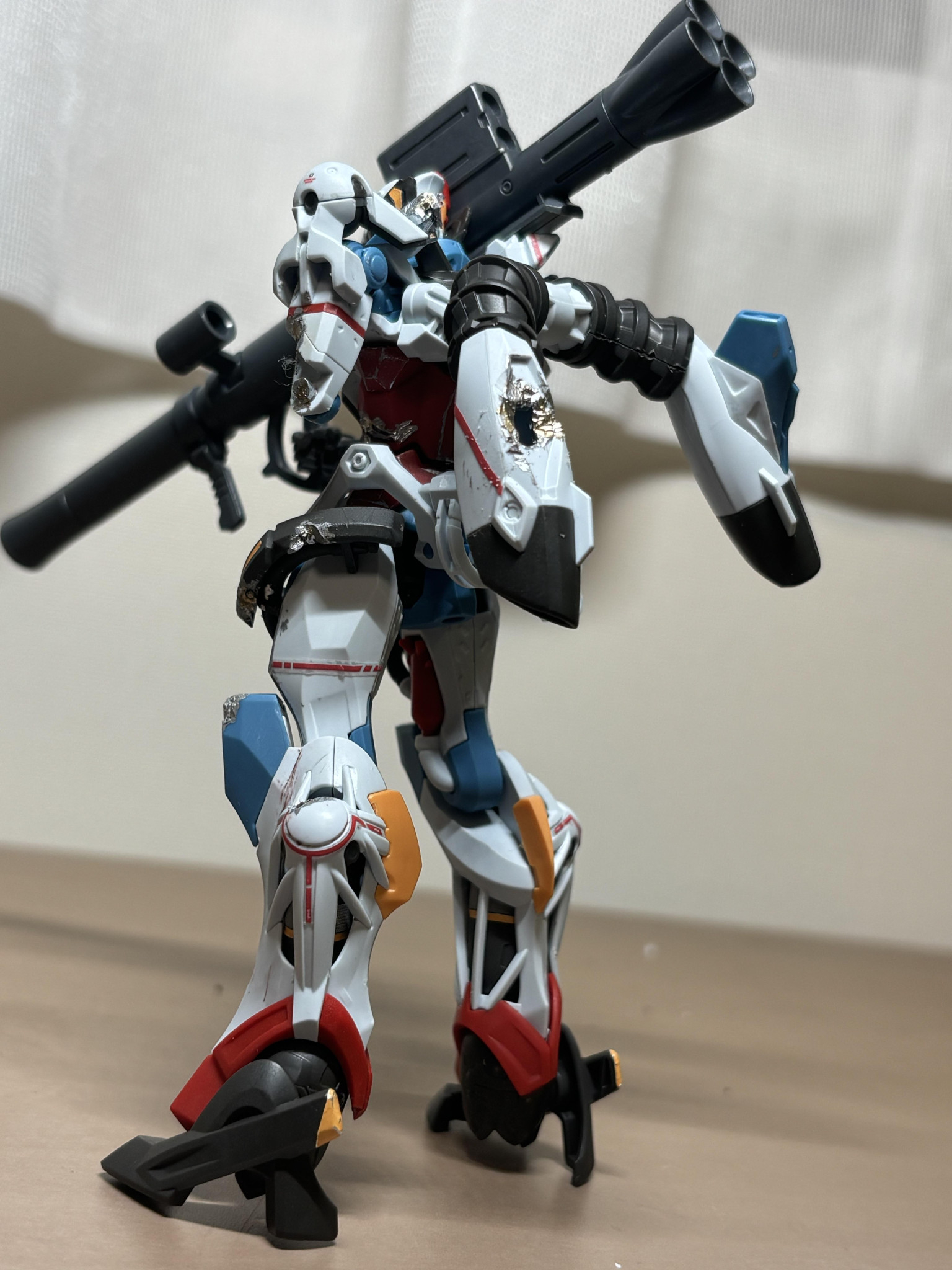 このガンプラは、本編第7話「マチュのリベリオン」にあたるサイコガンダムとの戦闘で、もしビームが被弾、損壊していたら?というIFのもと作りました。