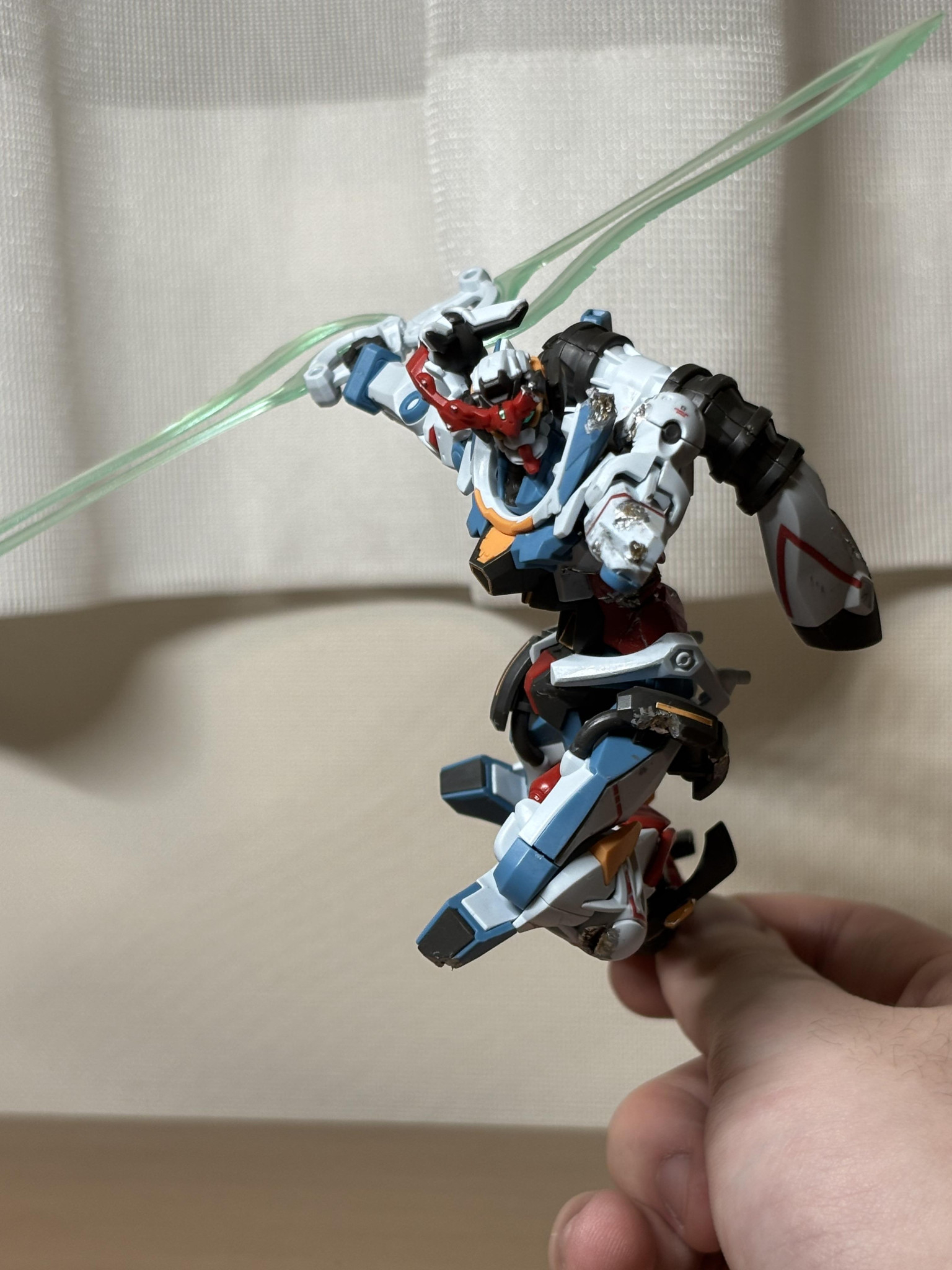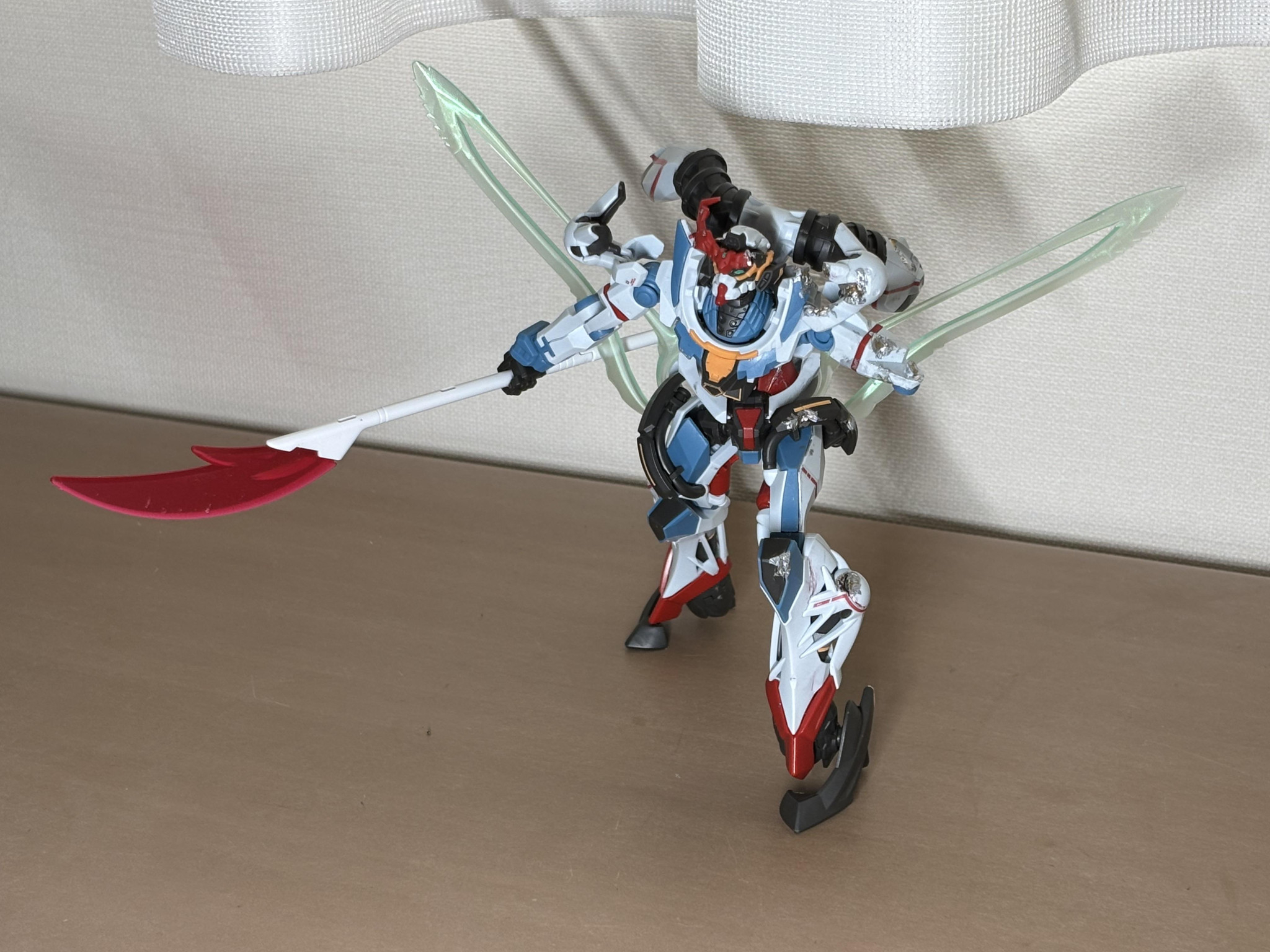 両刃の長いビームサーベルはやっぱカッコいいですね。あわよくば、同じ方向に刃が向いていれば良かったんですが。