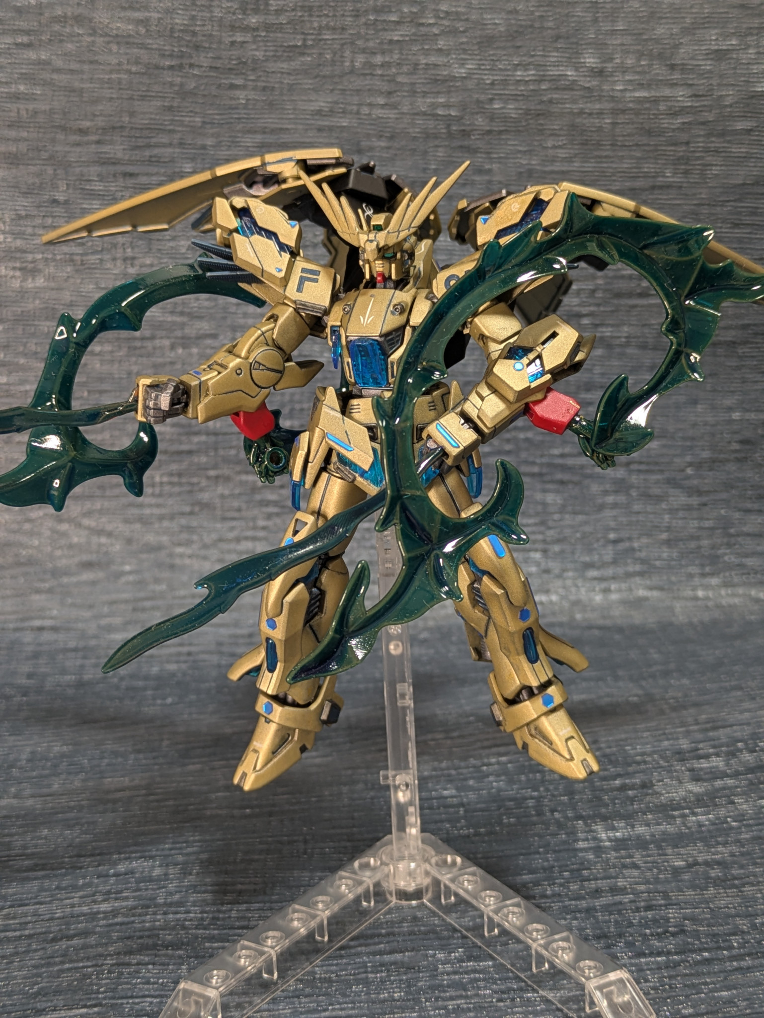 フルクロスのパーツを翼に見立ててダブルオーのバックパックと組み合わせました。