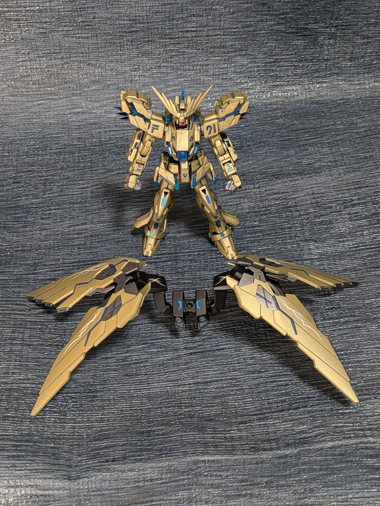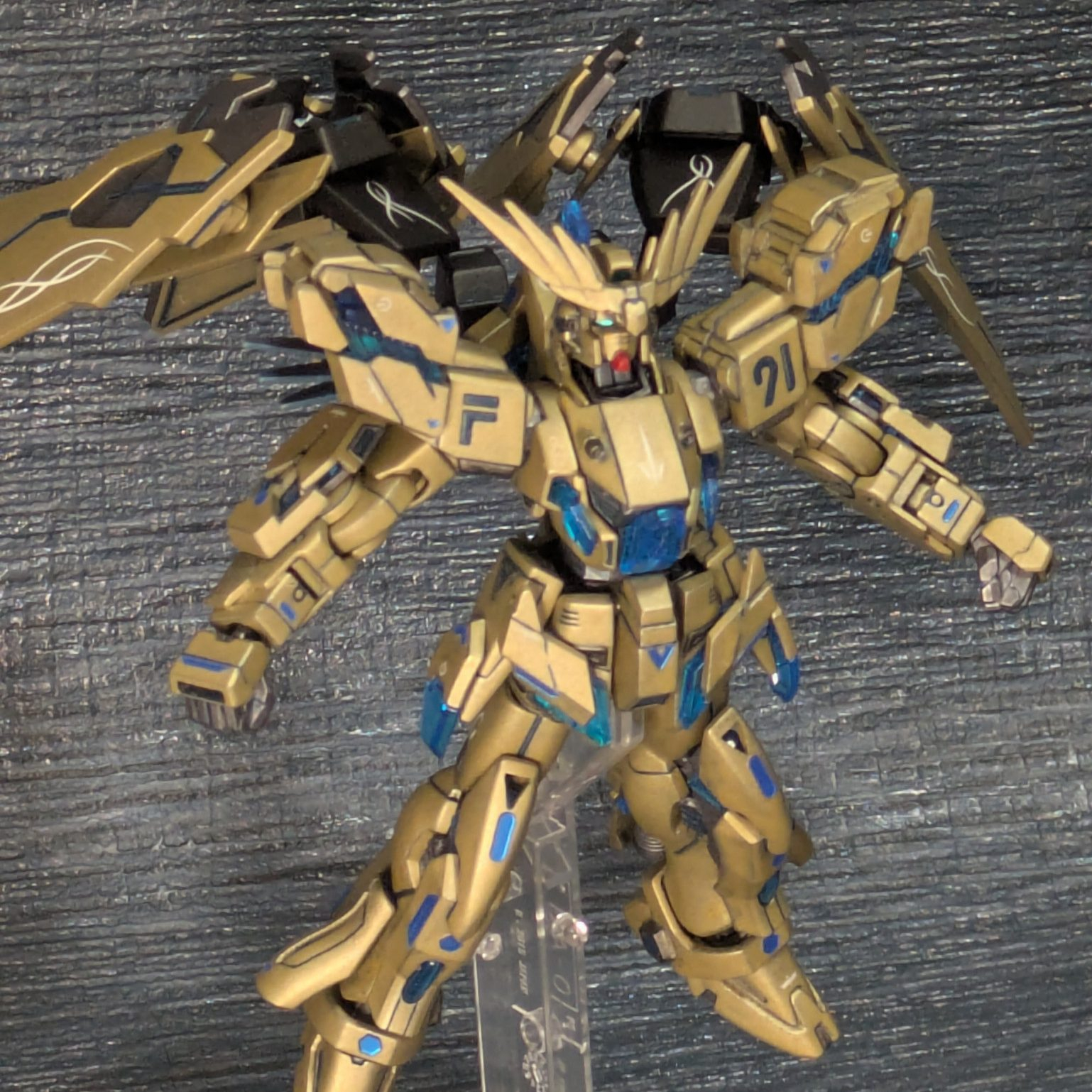 1号機を投稿したのが2020年でした。子供達もすっかり大きくなりまして、今では一緒にガンプラを組み立てる仲になってます。ちなみに、墨入れの色はそれぞれサイコフレームの色にしてまして、今回はメタリックブルーを採用したのですが、写真では黒にしか見えませんねぇ。