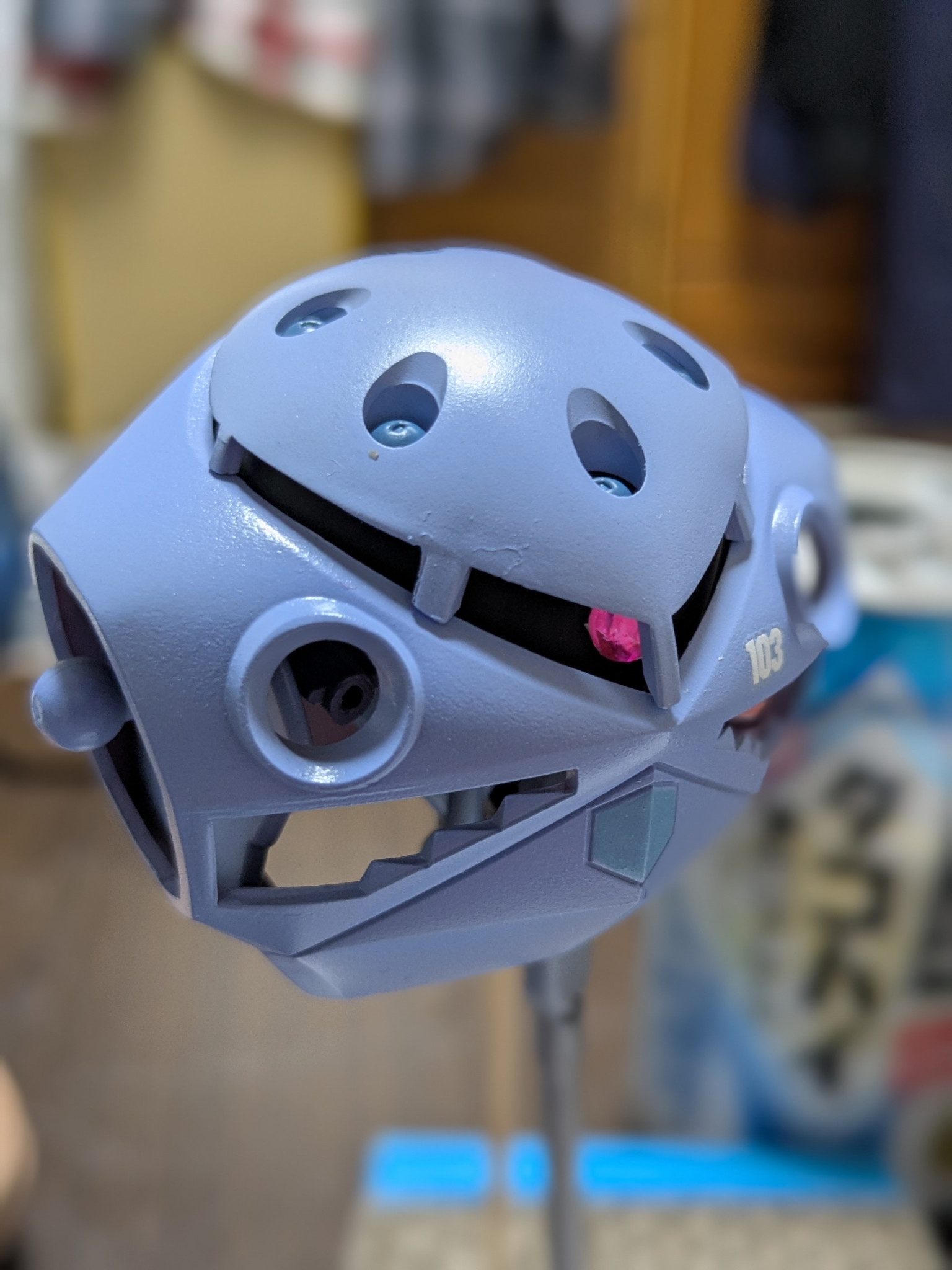 →モノアイは100均のラインストーンにUVレジンを乗せて丸くしました、これはかなりいい感じになりました