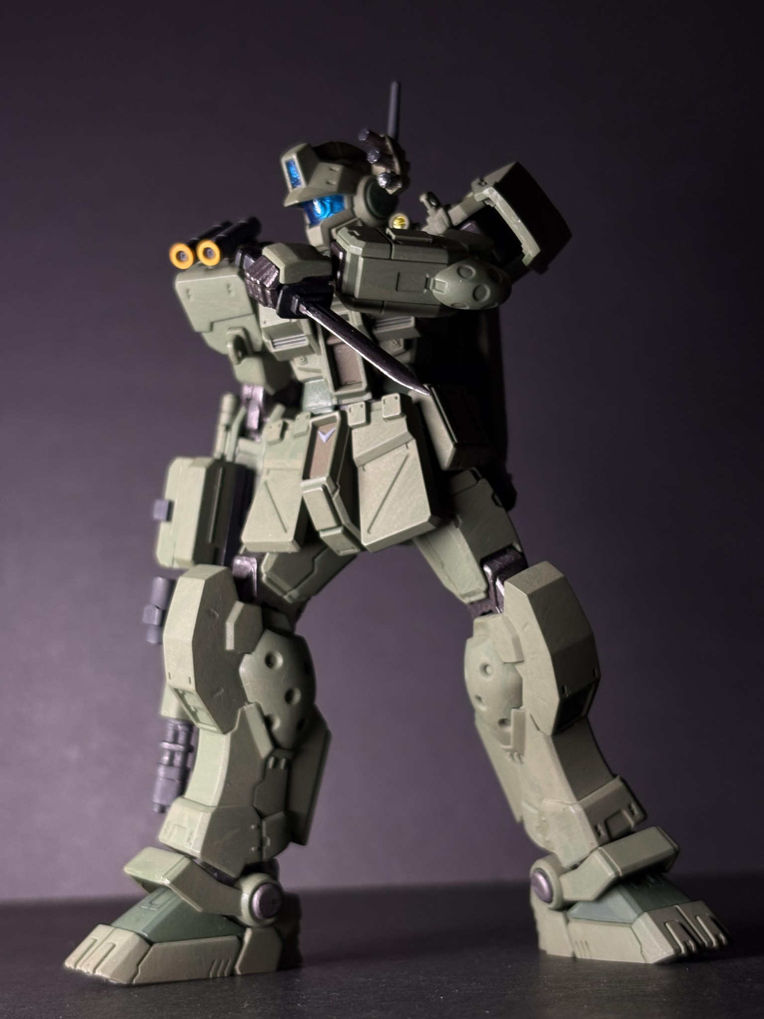 原機の赤い差し色は排除し、環境色との親和性を高めたロービジ寄りの配色に変更。所属部隊を示すマーキング類も作戦行動を優先して省略しています。