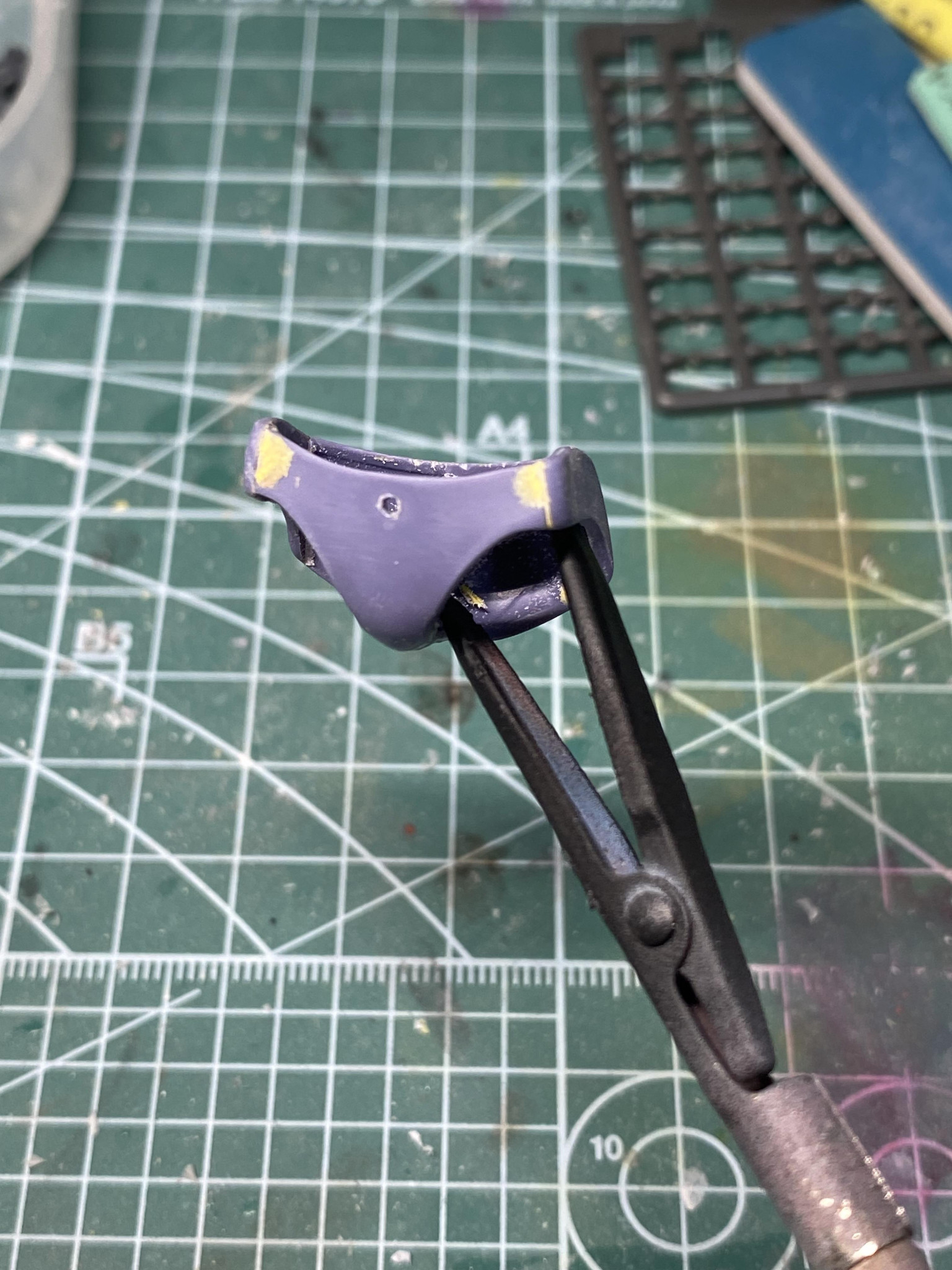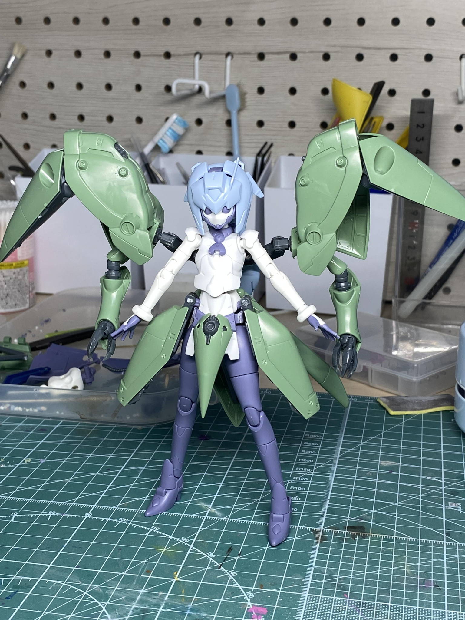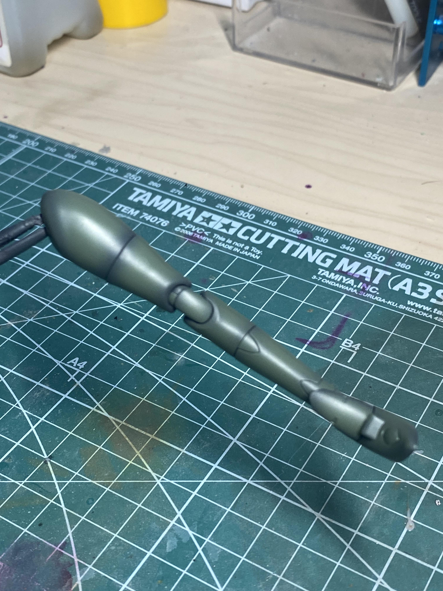 塗装後。足に比べて、肩部分は全然立ち上げ塗装できてないじゃん!って塗装直後は思ったけど、トップコート吹いて組んでみたら、まあいいかってなりましたw