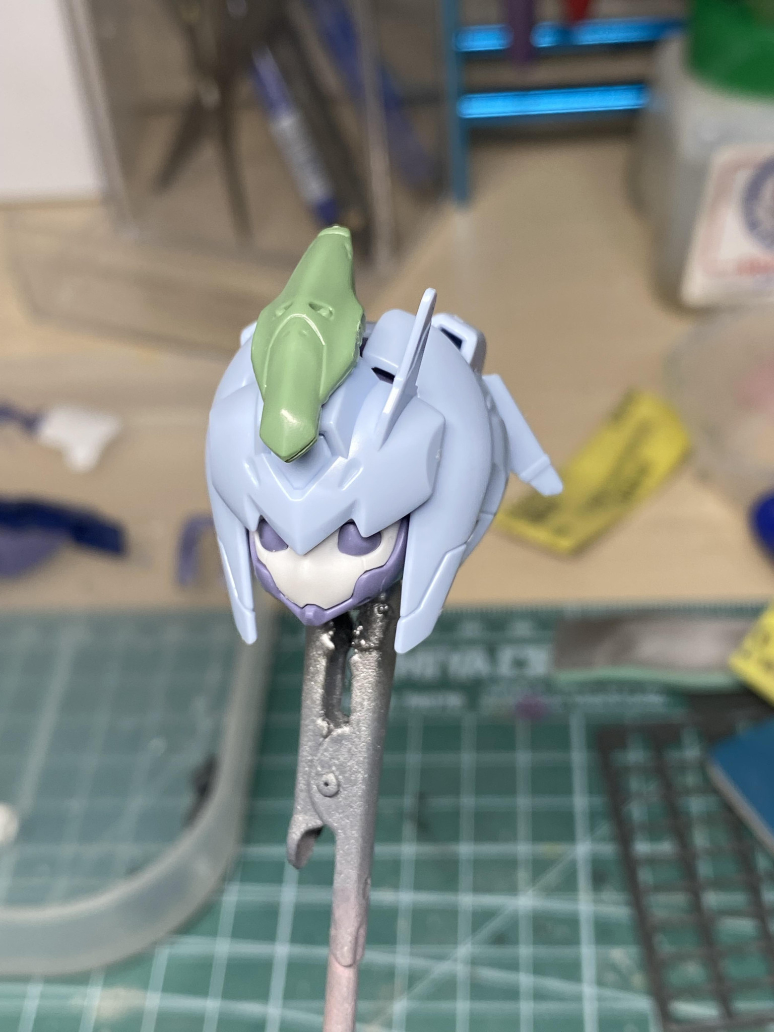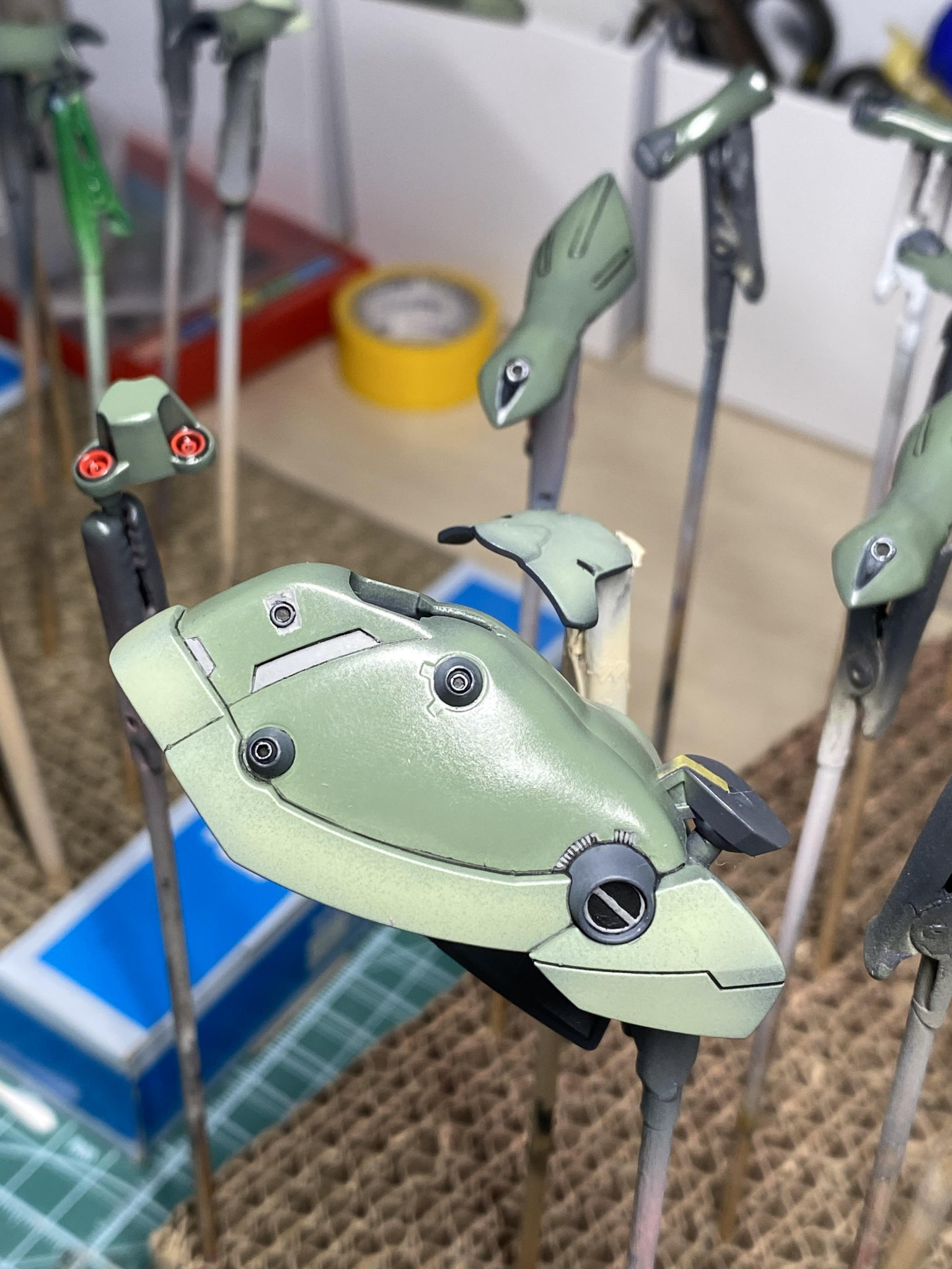 仮組み時。後からノイエの頭をアンテナっぽく取り付けたらいいじゃないかと思いつく。