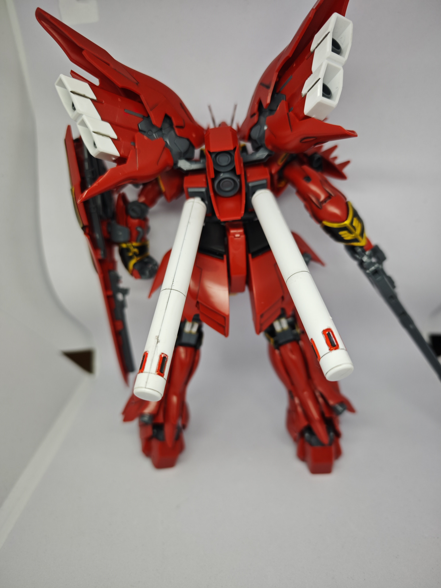 基本的なものは変えずに頭部のみのミキシングです。墨入れや一部の塗装などでほぼシナンジュです。素が格好良い機体なのでイジる必要が全くないですよ。