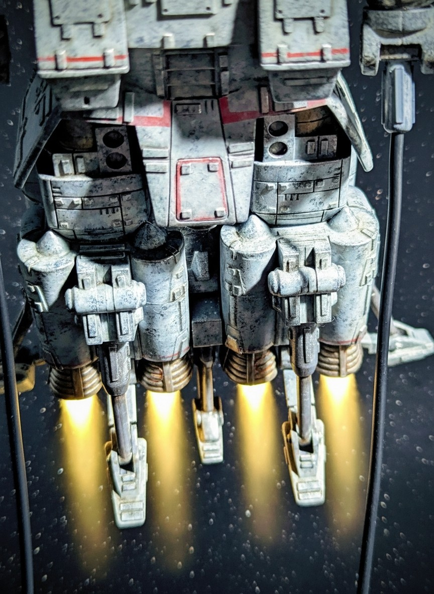 白い機体色に超絶プラ板ディテールとウェザリングで皆さん仰ってますが、スターウォーズの機体みたいな雰囲気になっていて超カッコ良いです😆✨そしてこの山田ベースの緻密さ、リアルさ!LED照明がまた雰囲気出てますね👍✨年末に良いものを見せて頂きました😄✨来年も素敵な作品を楽しみにしております!良いお年を〜😄✋