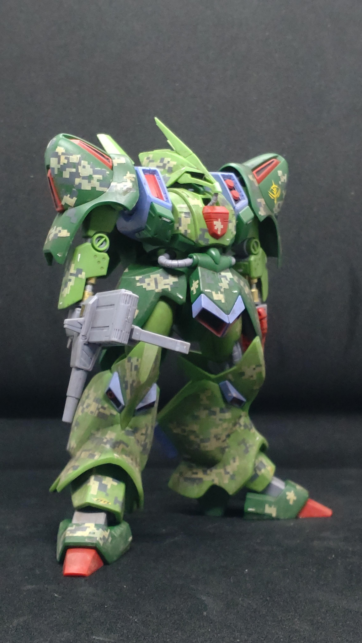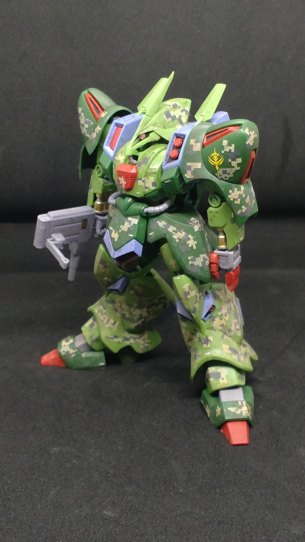 手元にあったデジタル迷彩デカールで飾ってみましたが曲線の少ない連邦系でやっとけばよかったなと後悔。
