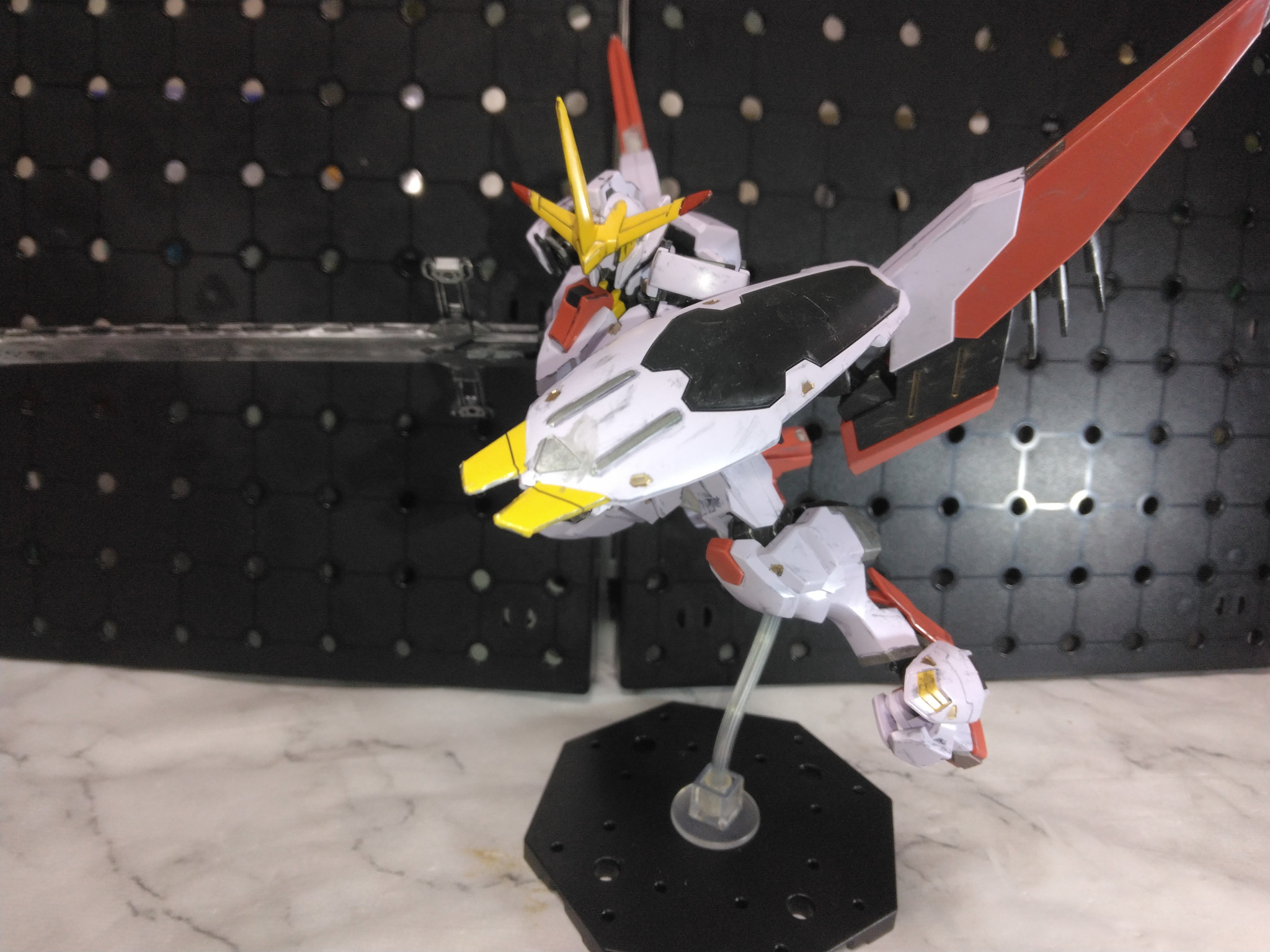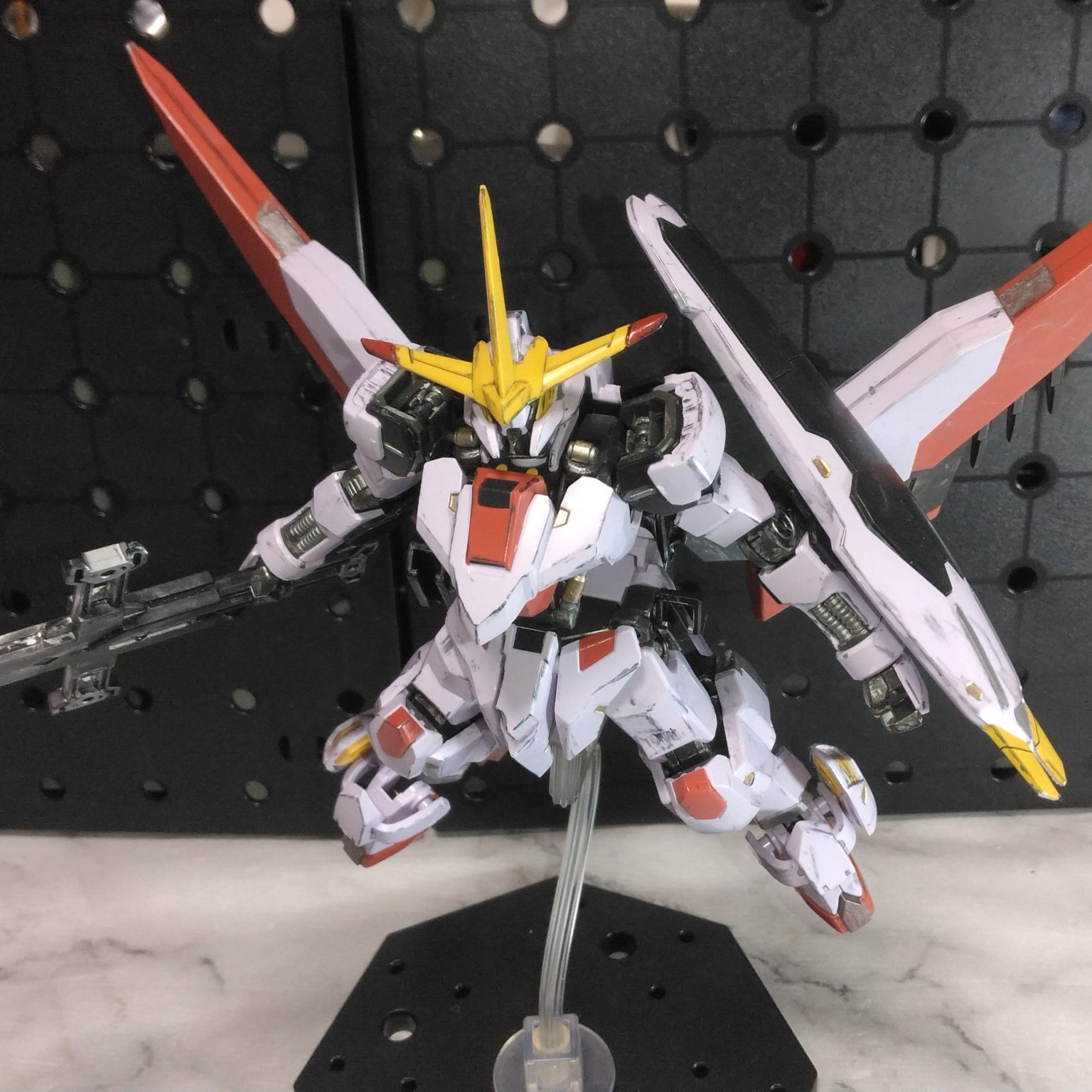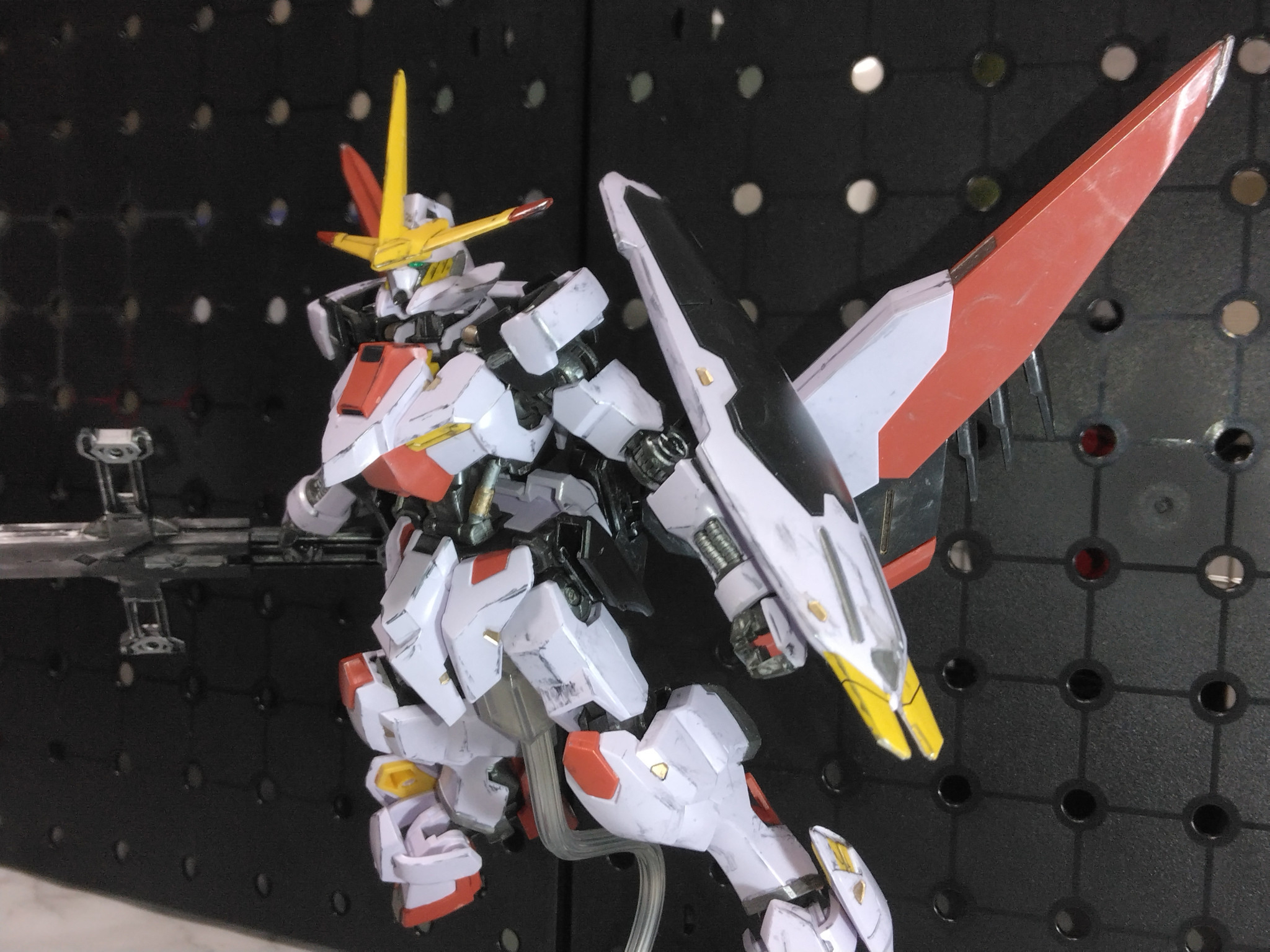 元の端白星から肩アーマーやスラスターの型が変更になり体は少しスラッとして横にシルエットが伸びました。