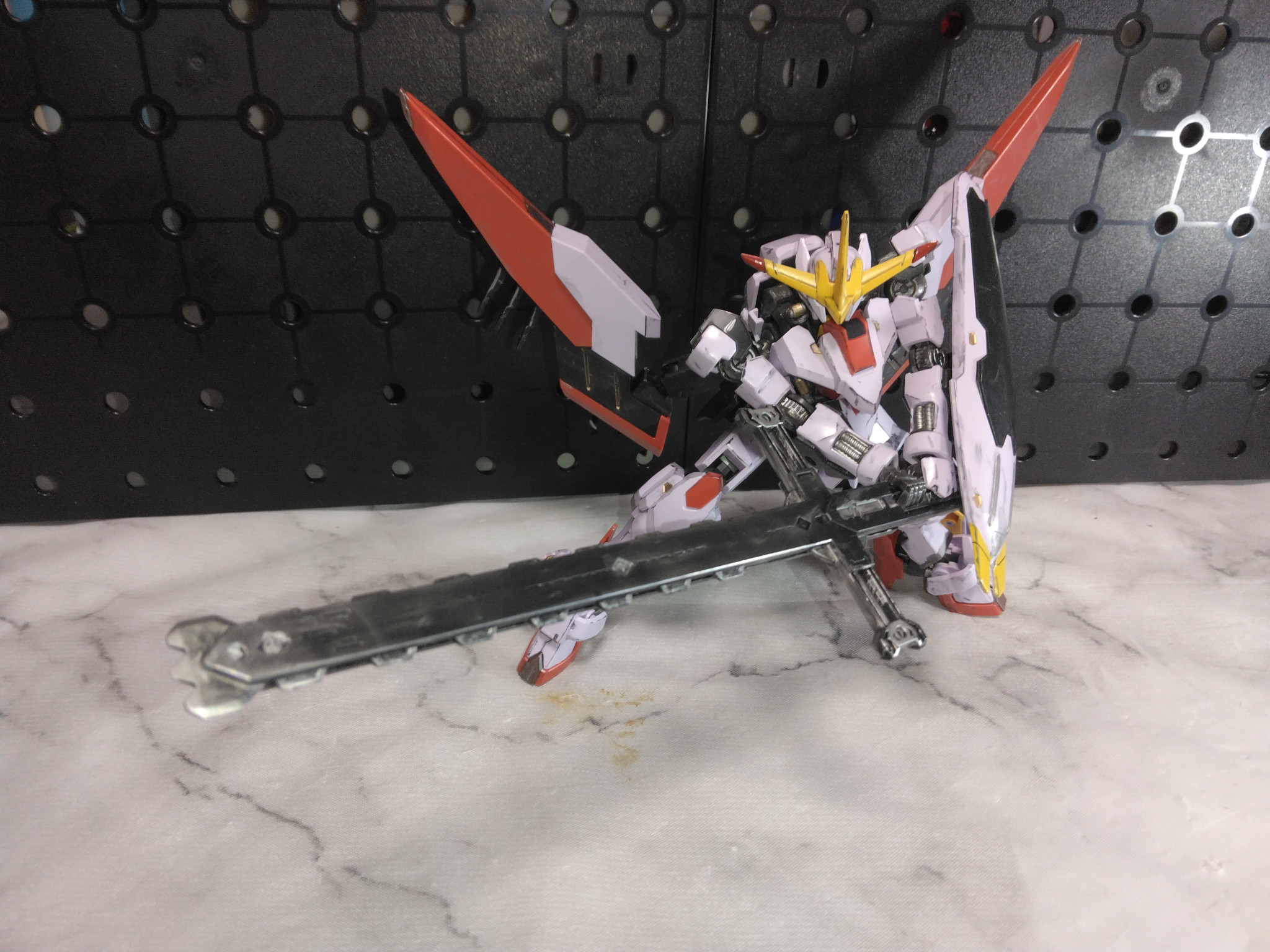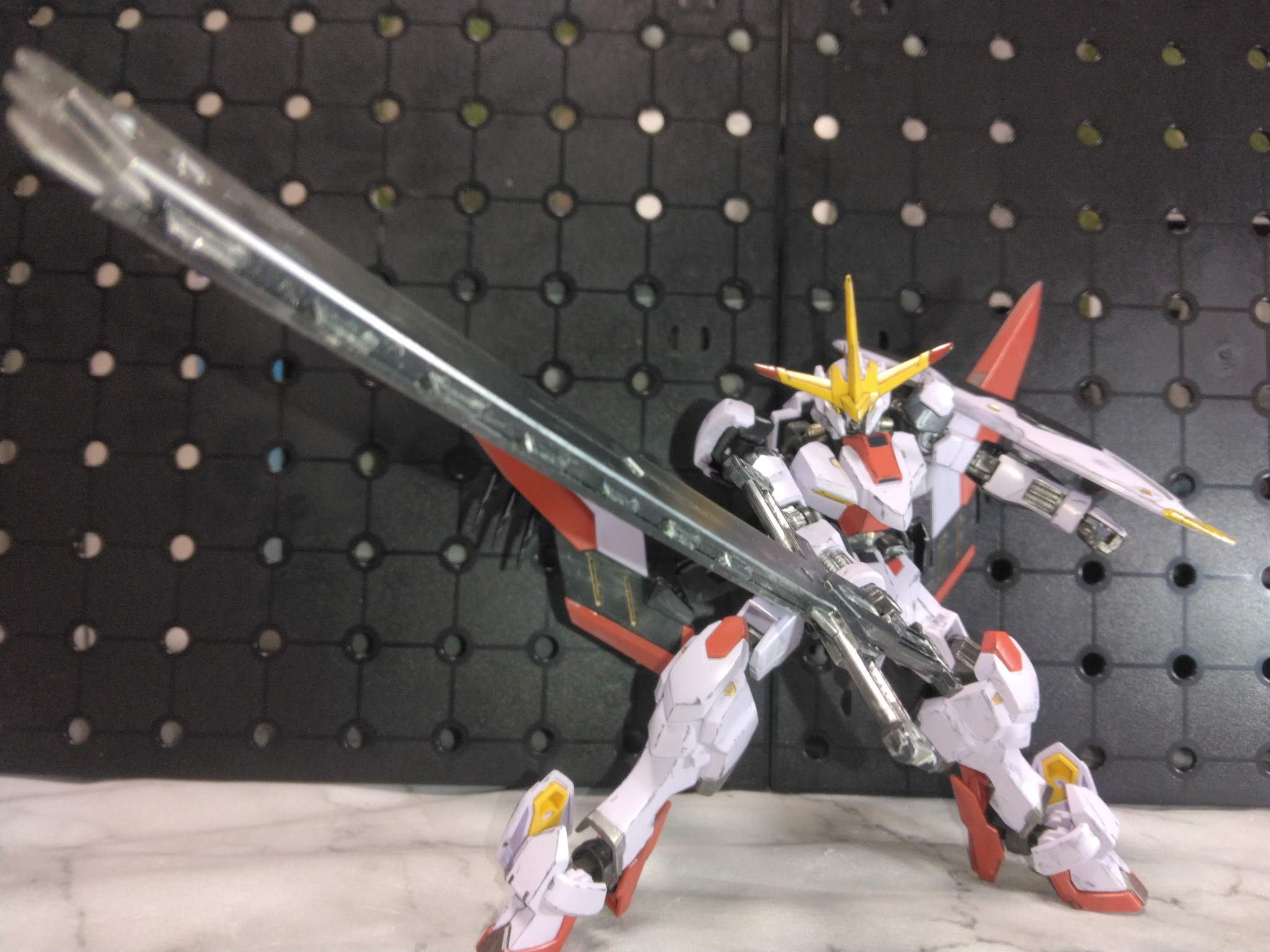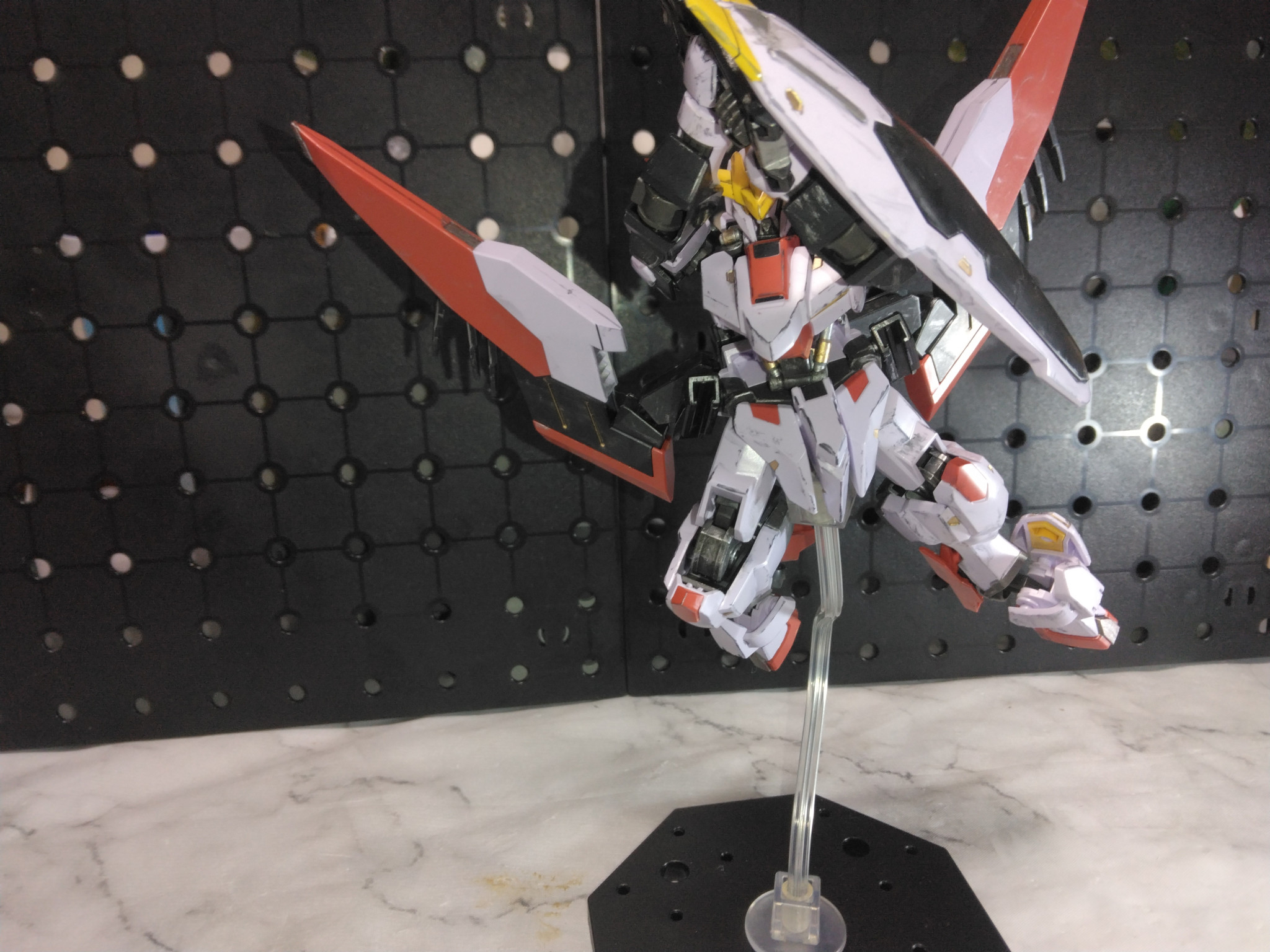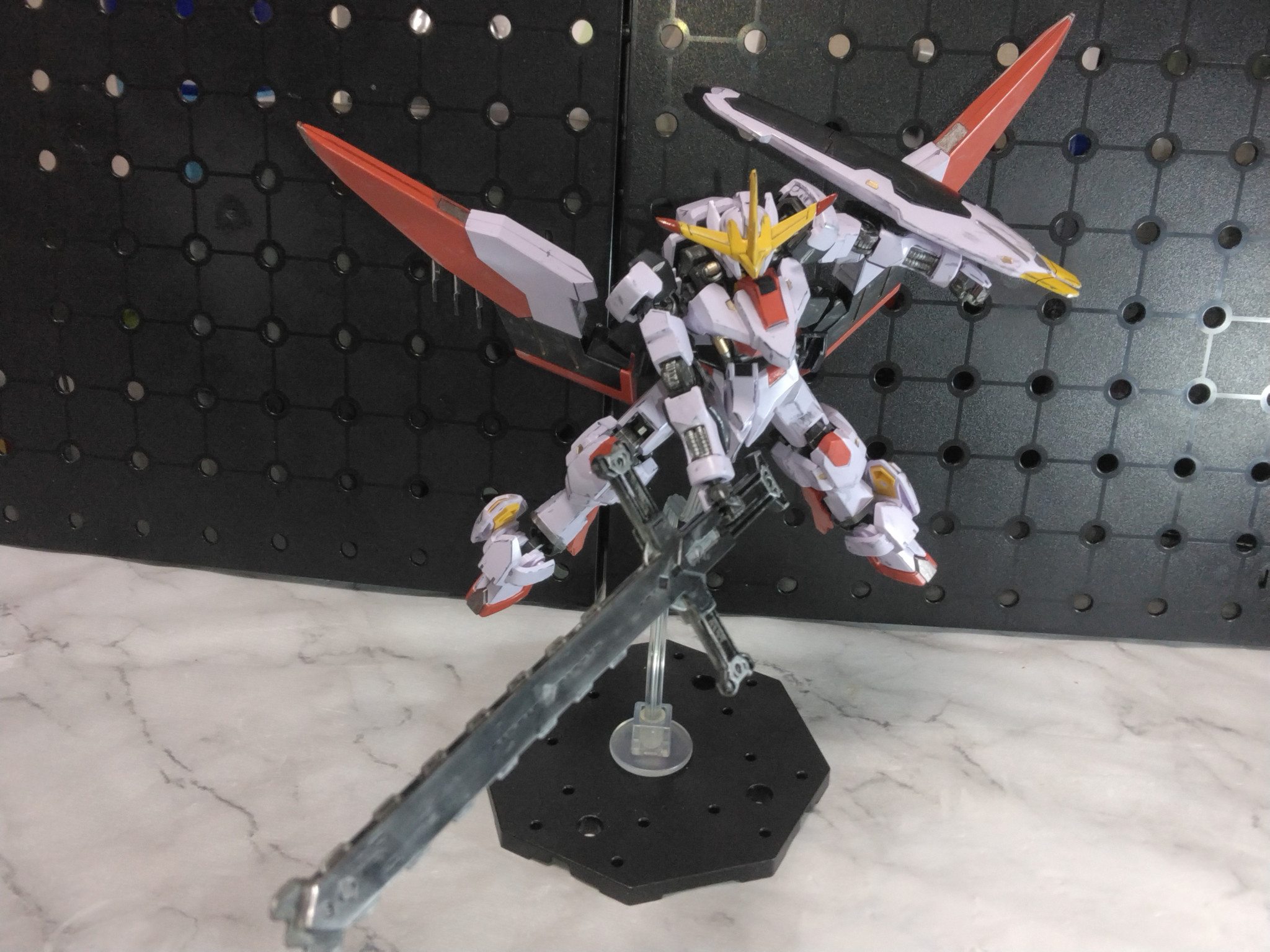 元の端白星から肩アーマーやスラスターの型が変更になり体は少しスラッとして横にシルエットが伸びました。