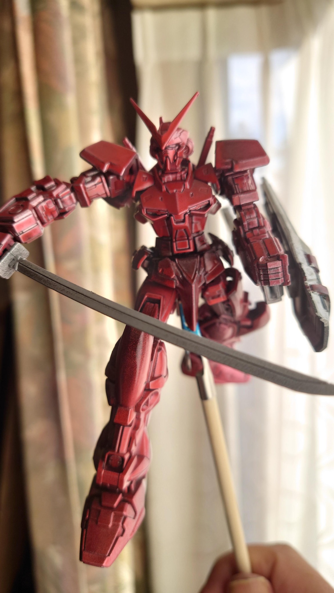 HG アストレイレッドフレームをジージェネでレッドウォーリア見てウォリアーっぽく作りたくなり作成しました。 黒のサーフェイサーにシルバーを塗りクリアレッドが基本になっています。部分的にメタルレッドでエッジを効かせてみました。