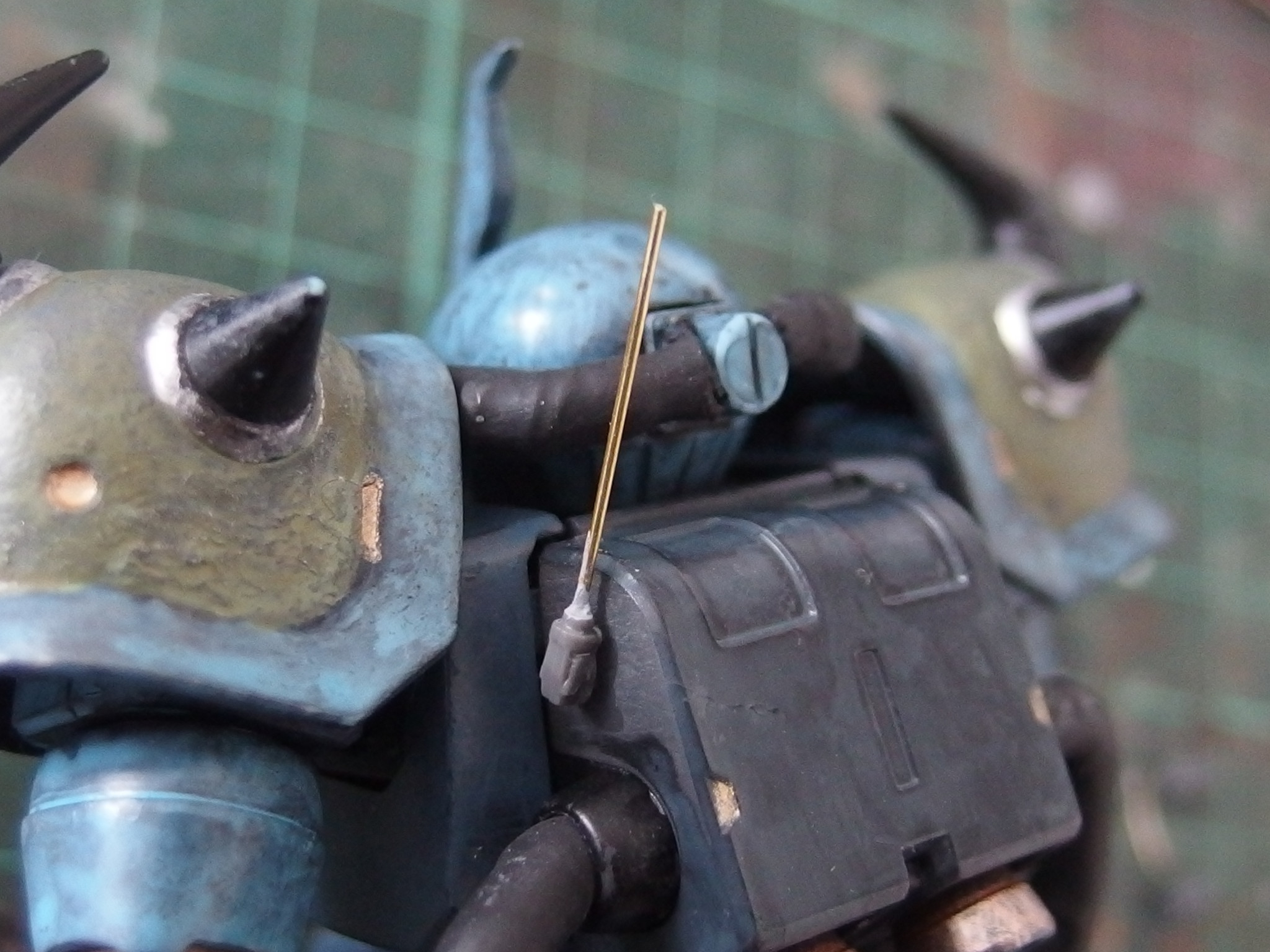 「ウェーブのJ・センサーと真鍮線でアンテナを追加」とホビージャパン誌面には記載されてるんだけど、こんなの不器用な私には簡単には出来ない訳で💧