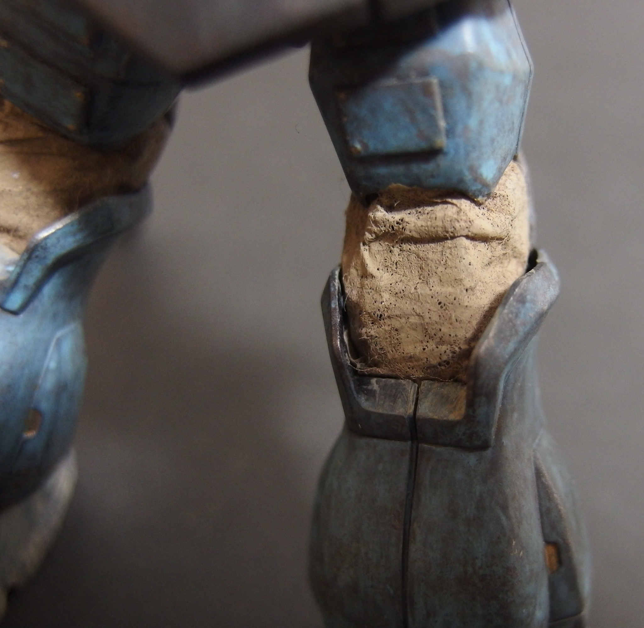 誌面上では「頭部と胴のパイプに保護用のシーリングを追加する。素材は電気工作用の熱収縮チューブを利用」すると書かれているんだけど、具体的に何ミリのチューブを使用すれば良いか分からないし、頭部のパイプにこのチューブを通すにはどうしたら良いか分からず、こんなもんかとやってみたら上手く行かず💧