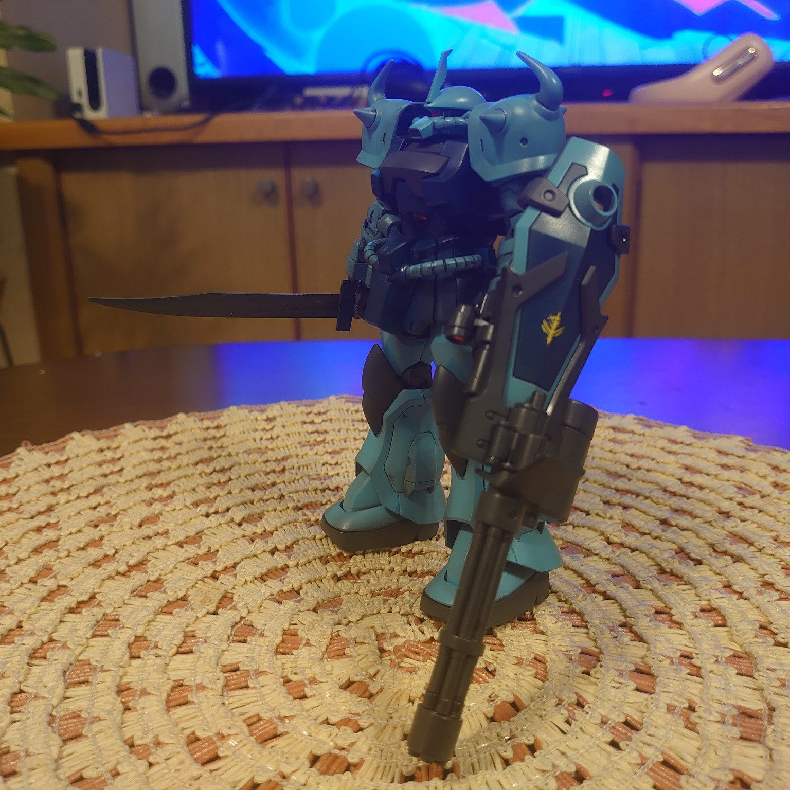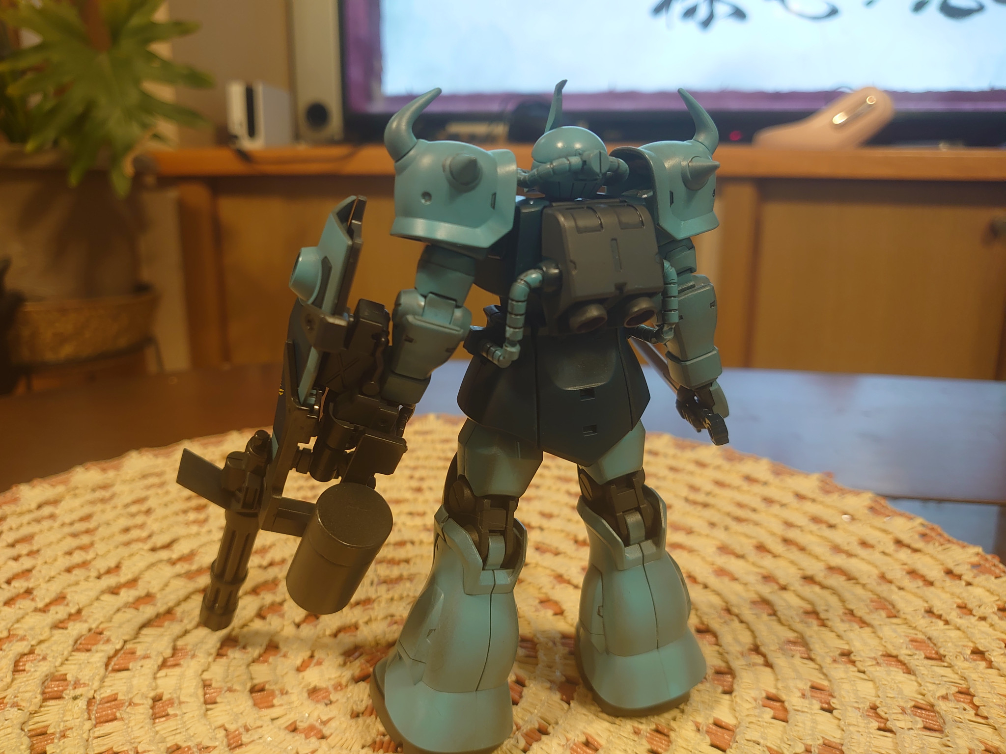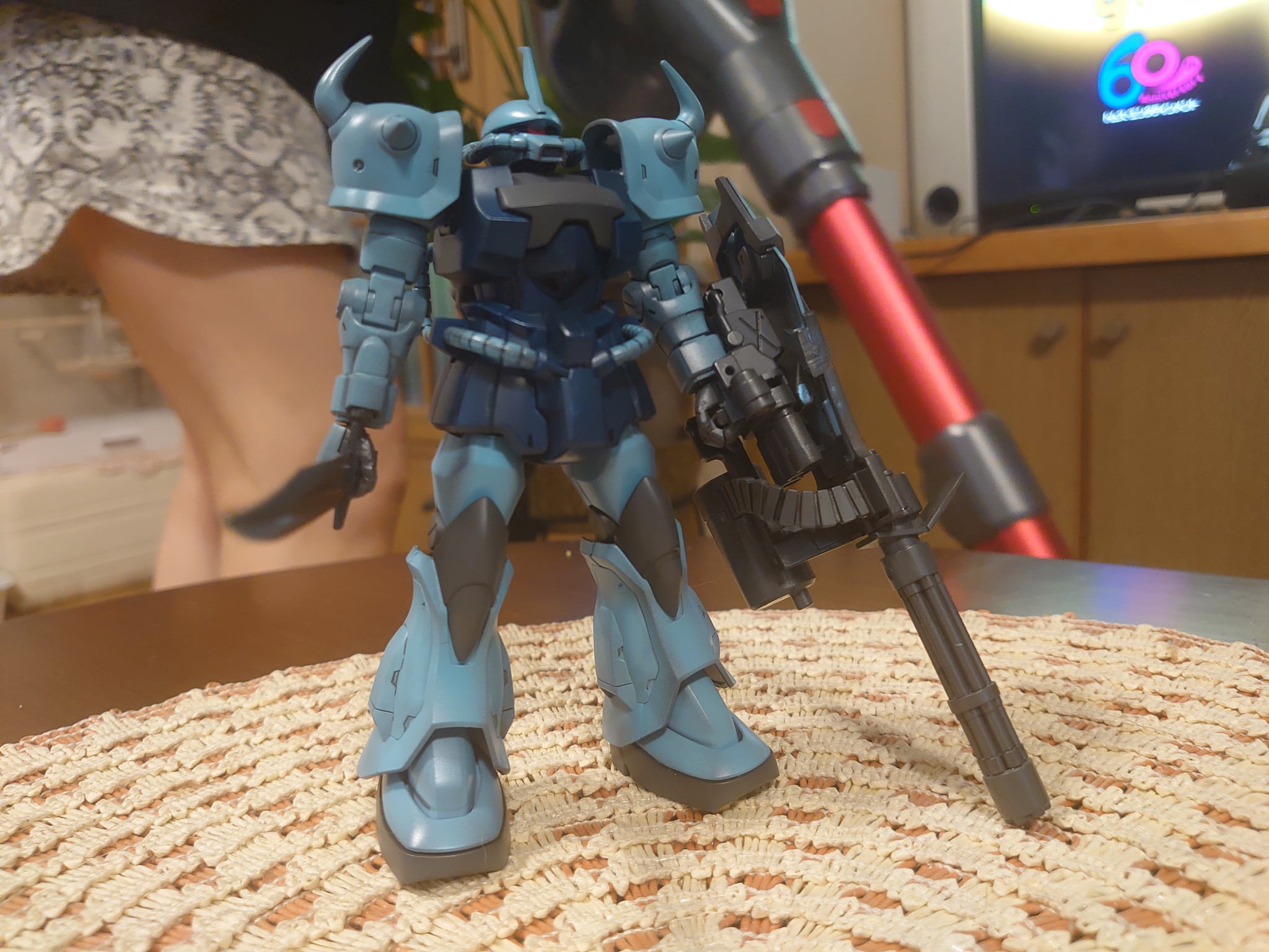 完成したままリビングのテーブルに一晩置いて朝起きたら本体が床に落下で頭部のツノが無い! 猫に落とされ犬に囓られた。バンダイのサイトから部品を拾い在庫を見るとグフカスタム無し 通常グフ無し、シャアーザク無し、ナシナシ無し!思い当たるツノ無し!全く無し(笑)