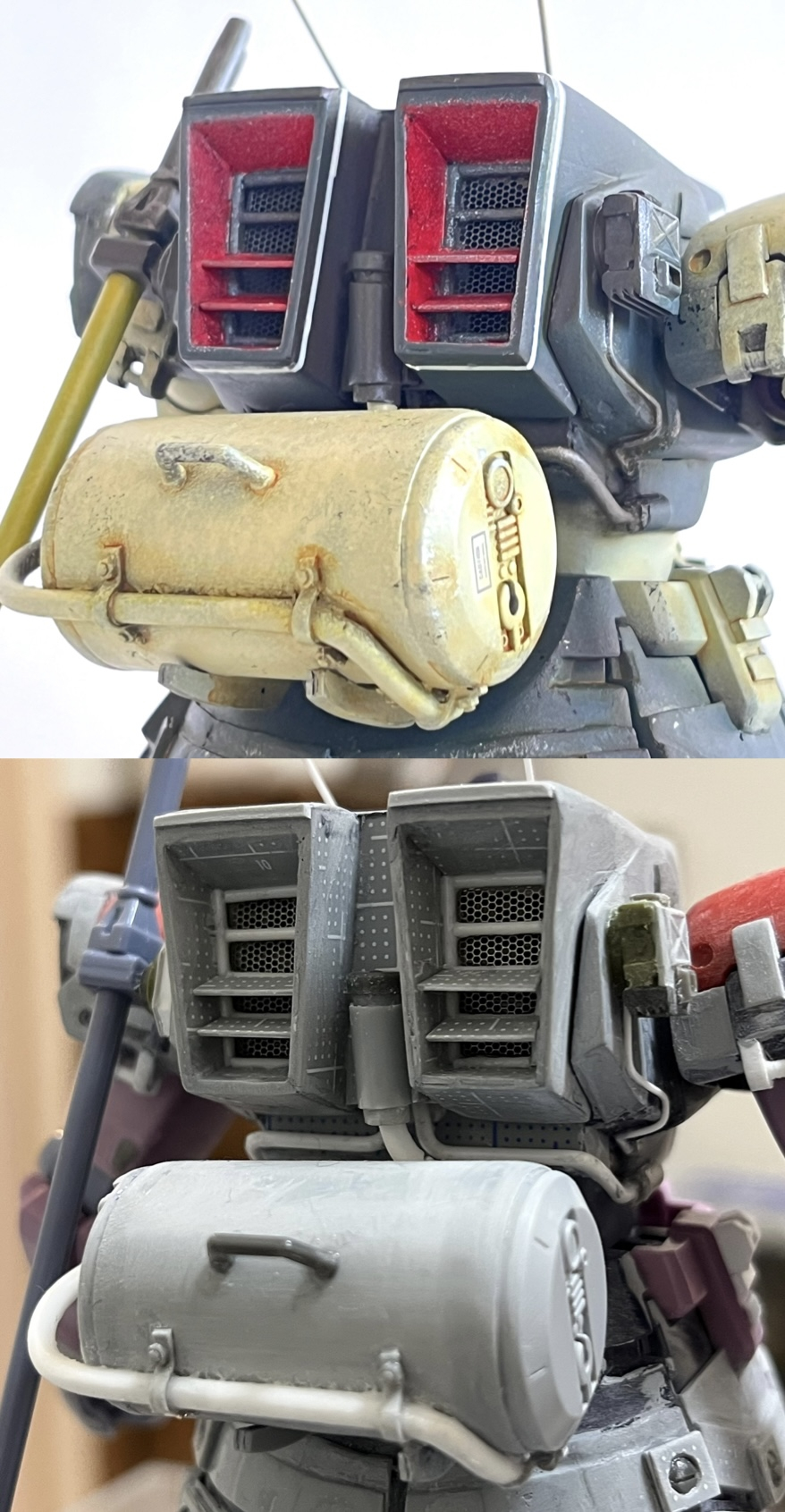 凄いです!😄一度作った事があるキットなので!ホントに良く分かってしまいます!😄最高の技術を見せてくださり感服です!😆このキット!私の思い込みなのですが!プラの質が私的には扱いにくく感じました!それとやはりHGなのでやりたい事をやるスペースが小さくて、腕が追いつきませんでした!😅この作品を見てしまったので!もう一度チャレンジしようと思います!😄参考有難う御座います!😀
