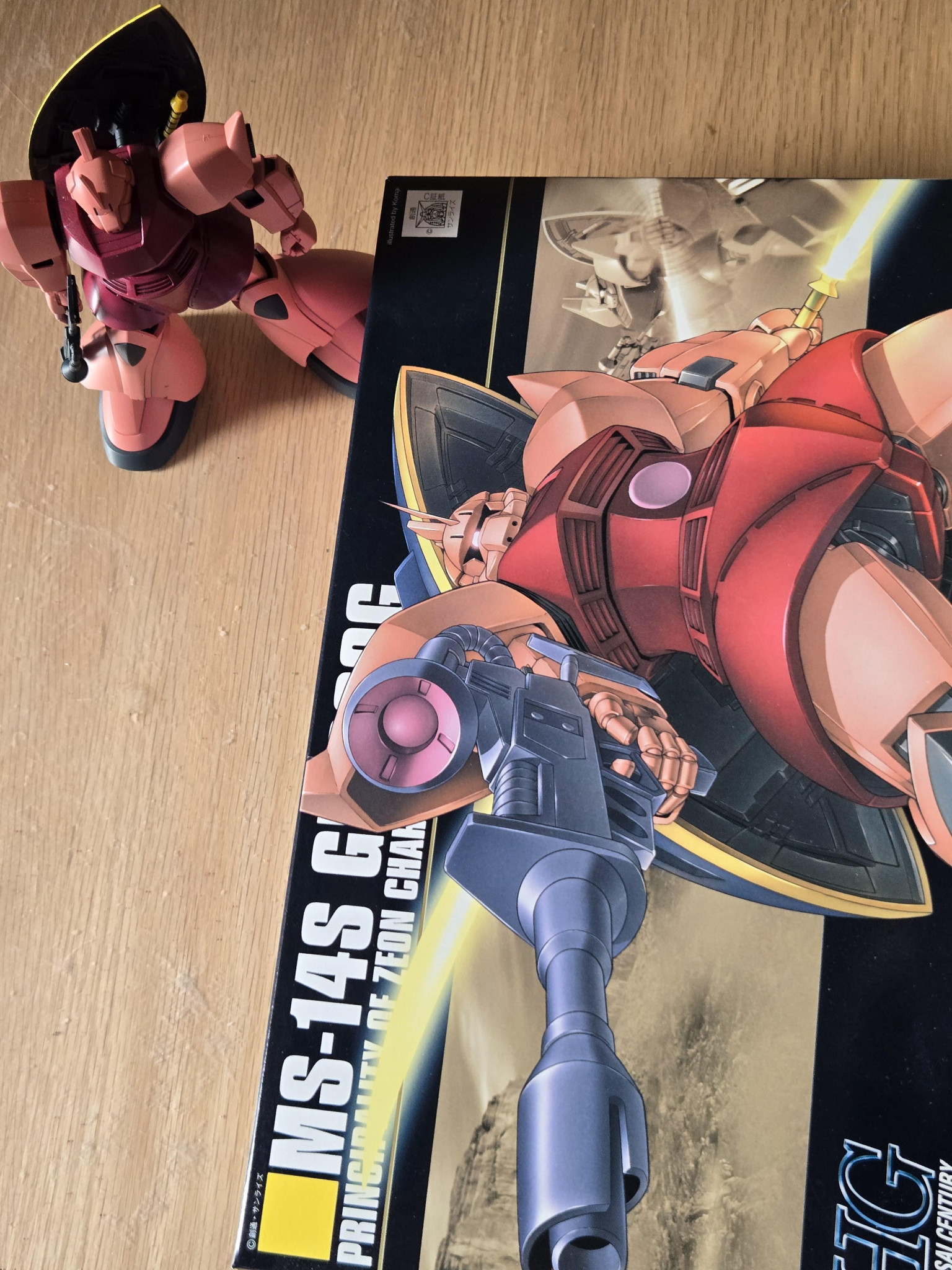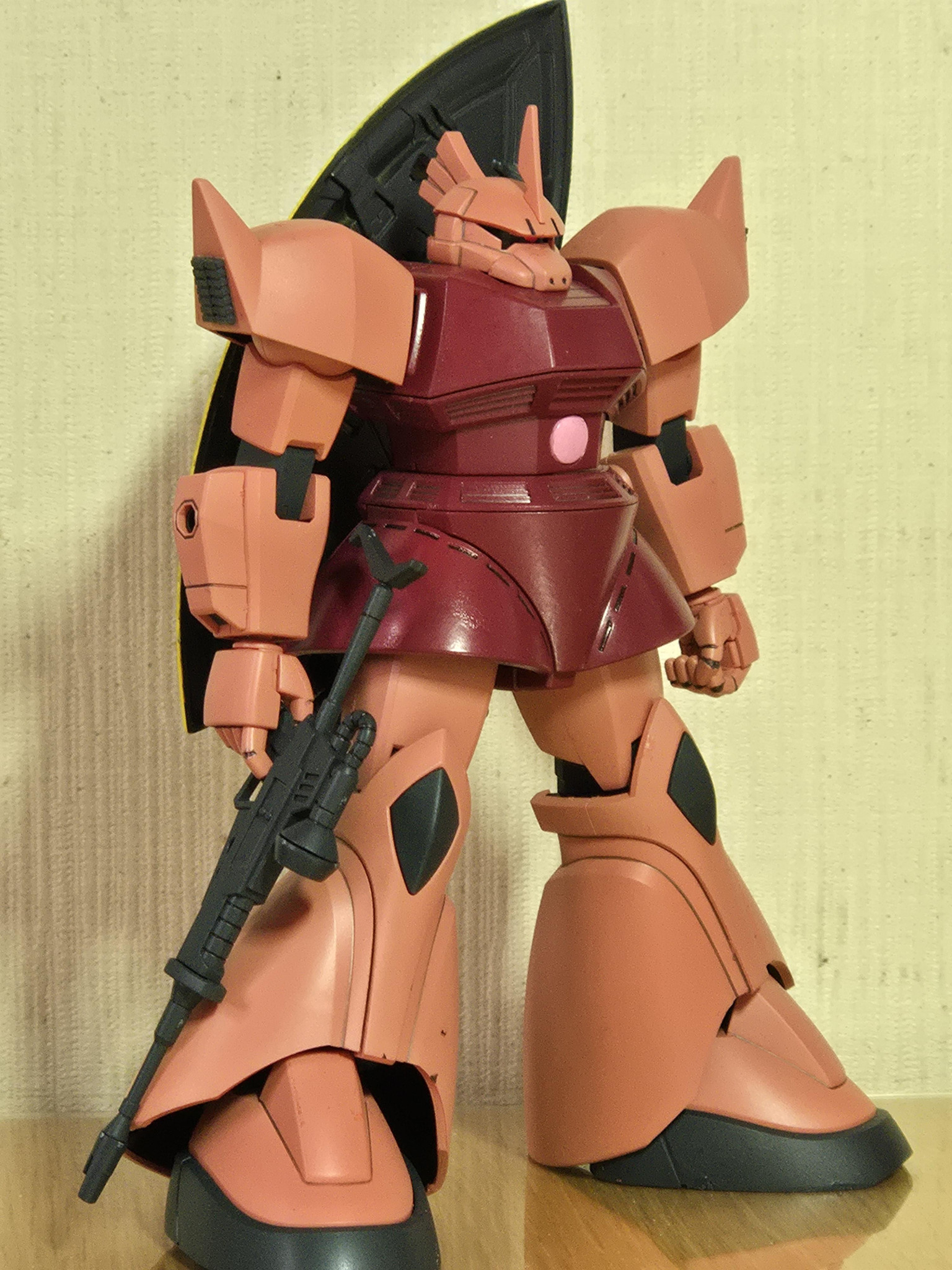 とても、重厚感あります。シャアピンク等の基本色で全塗装仕上げです。各所に墨入れも行いました!
