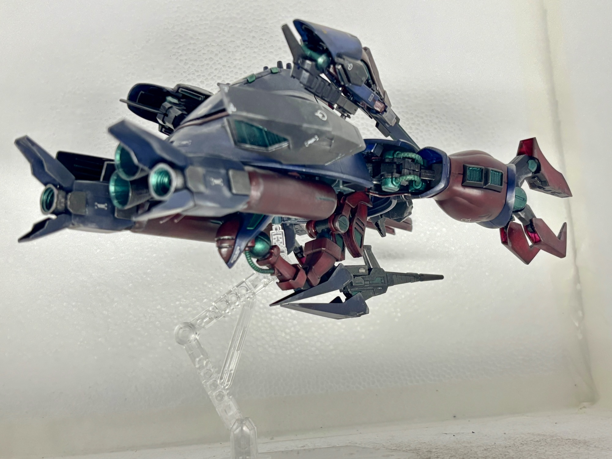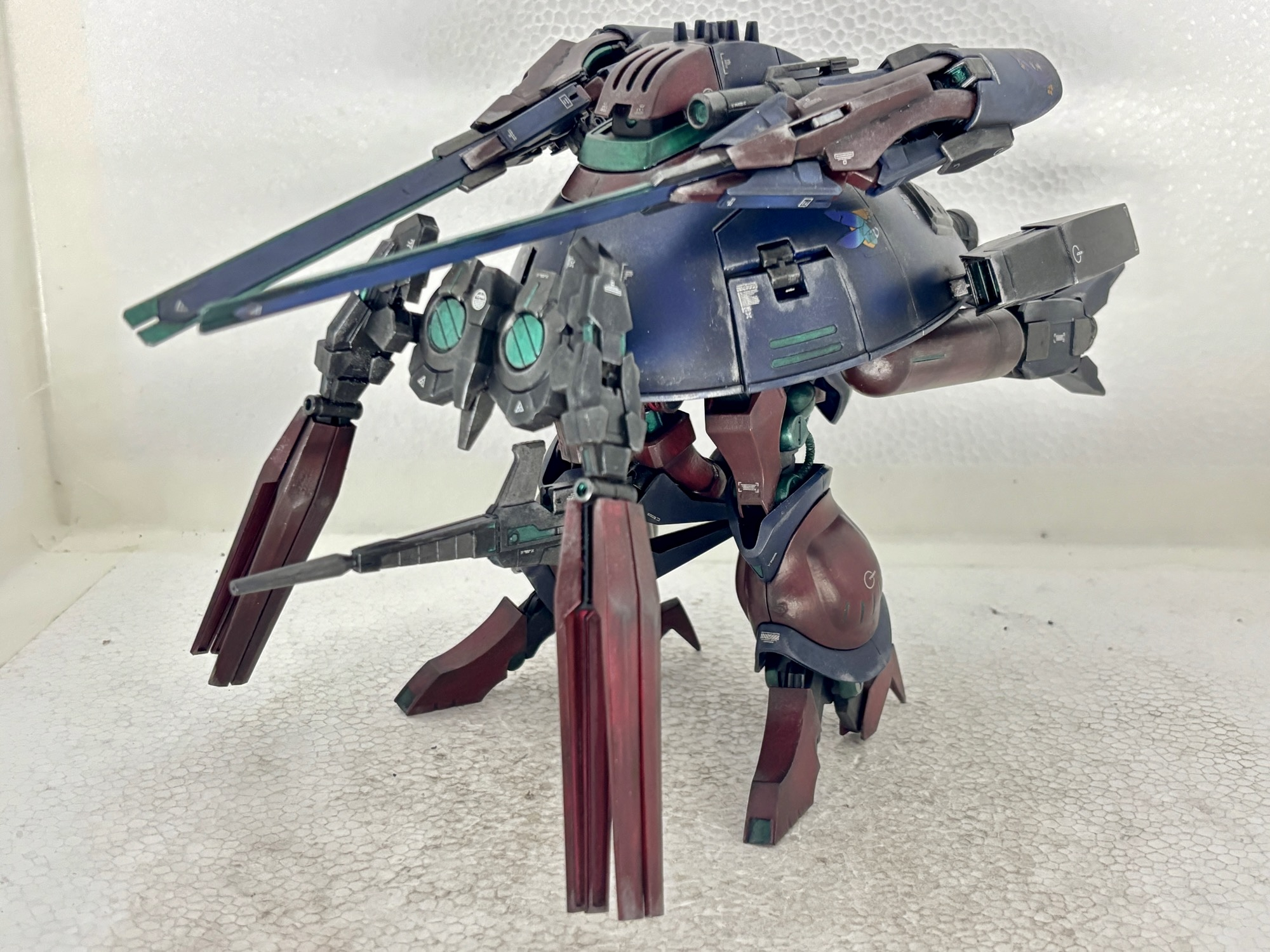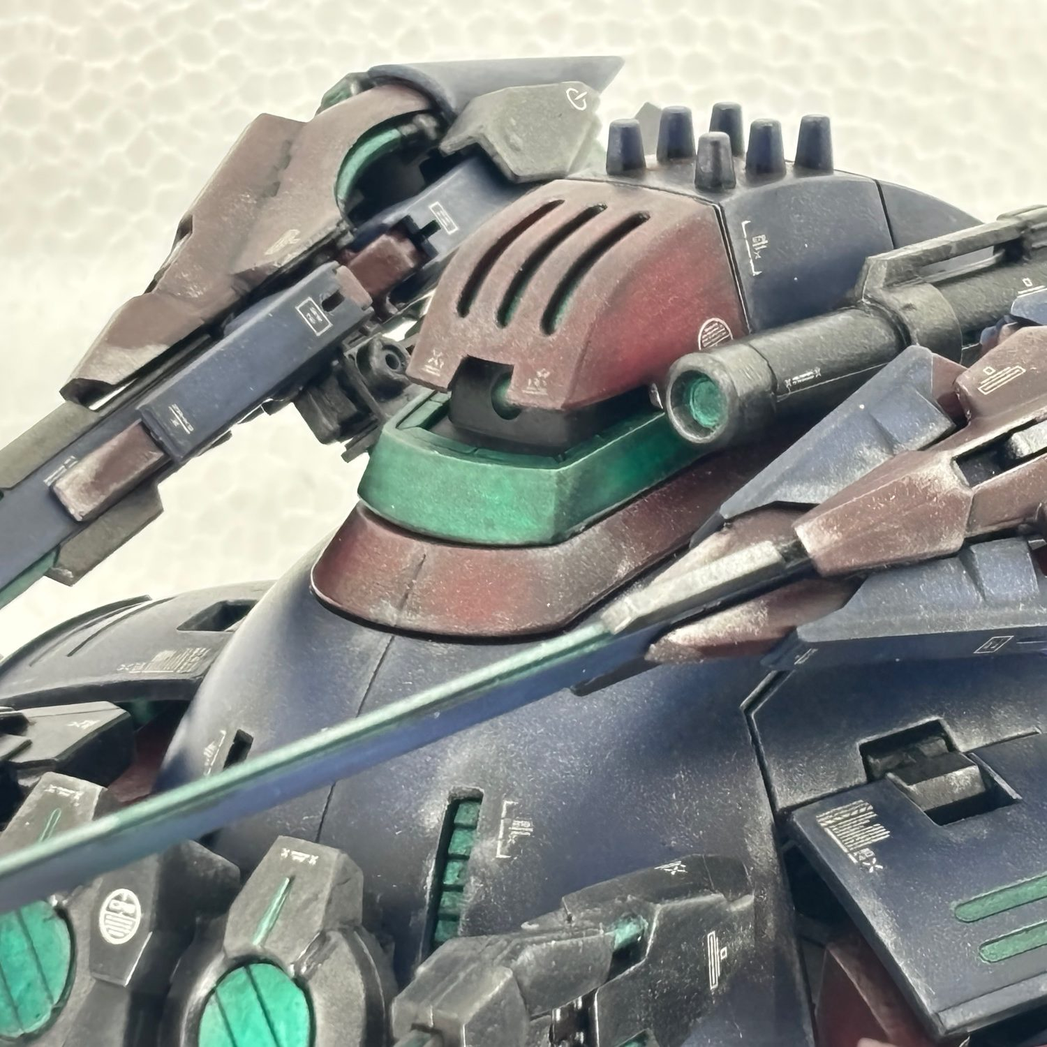 『シーマガラハウは生きていた。』と言う妄想設定を膨らまし、UC0098-0100の世界で楽しんできましたが、ここいらでひとまず区切りをつけます。最後はバウンド・ドックです。横流しされたサイコフレームとサイコミューキャンセラーシステムを搭載した簡易NT-D仕様です。筆塗り部分塗装、墨入れ、デカール、つや消しトップコート、汚しの仕上げです。