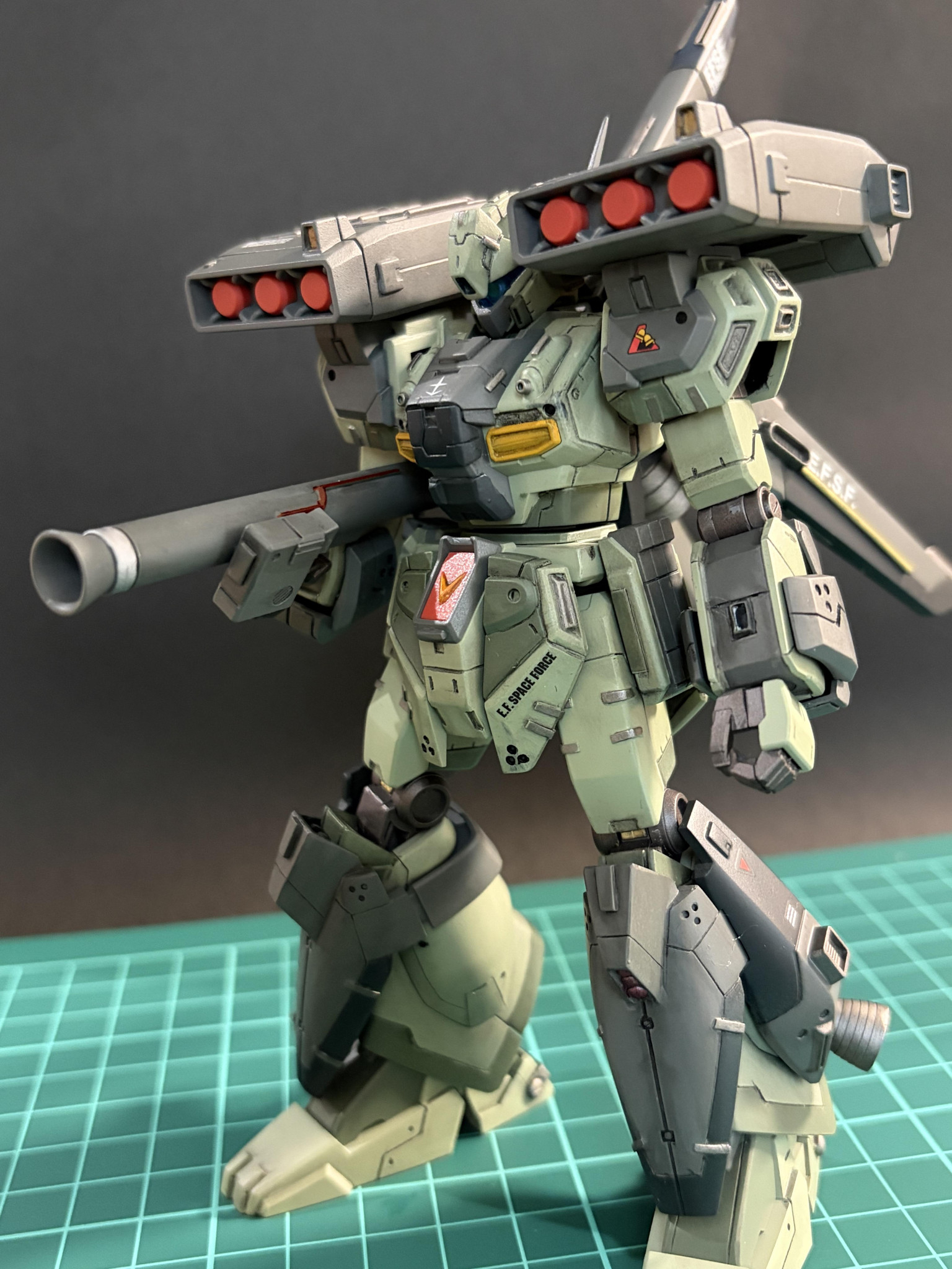 ディテールアップされたスタークジェガン、迫力がある造形、渋いカラーリングとウェザリング仕上げ、めちゃかっこいいですね😆👍