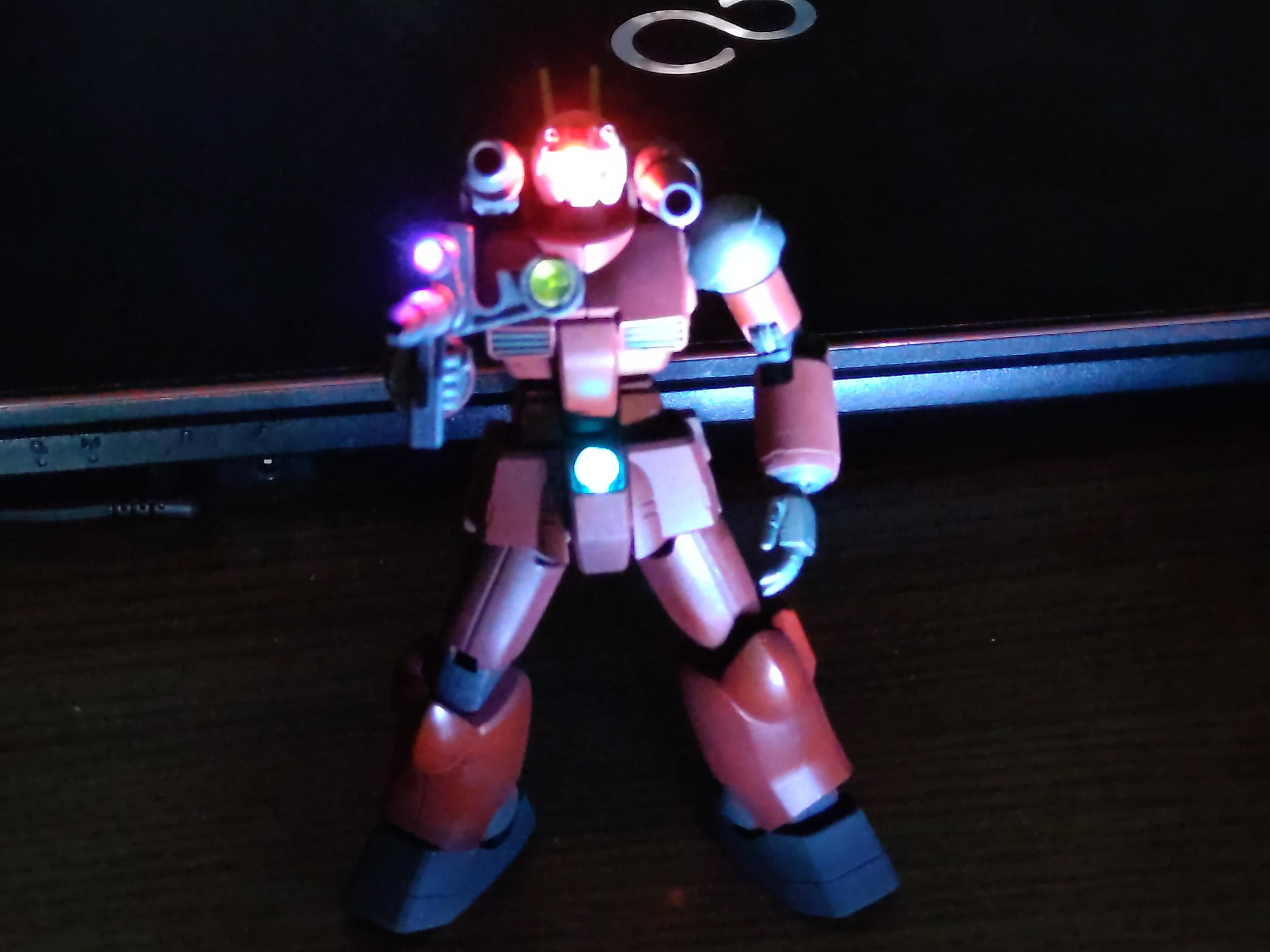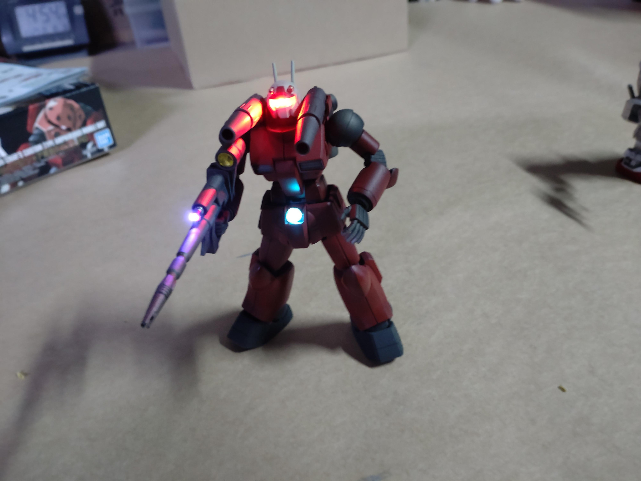 赤く光るバイザー、胴体のセンサー発光、バルカンの真鍮線、合わせ目処理と仕上がりが良いですね👍