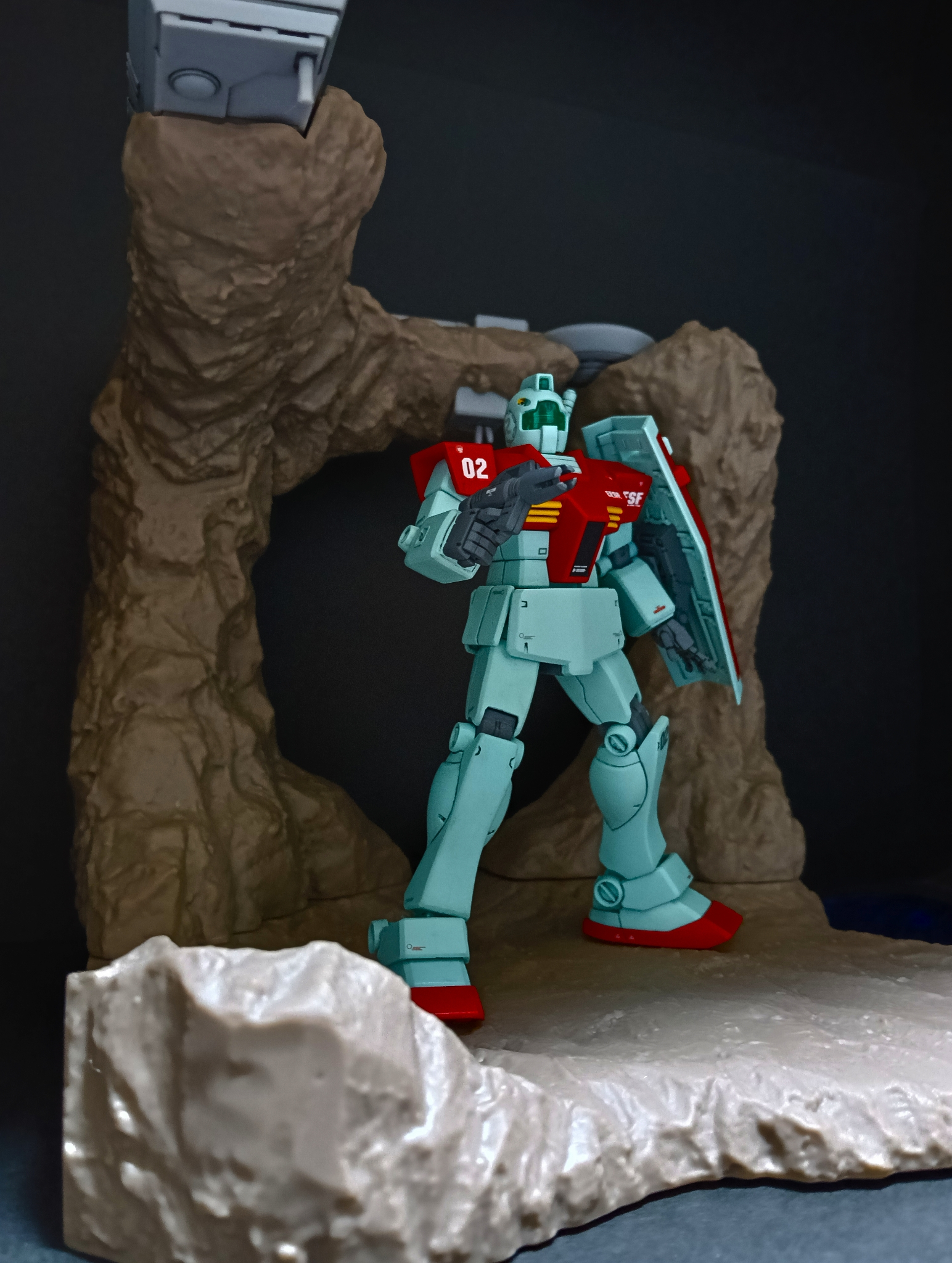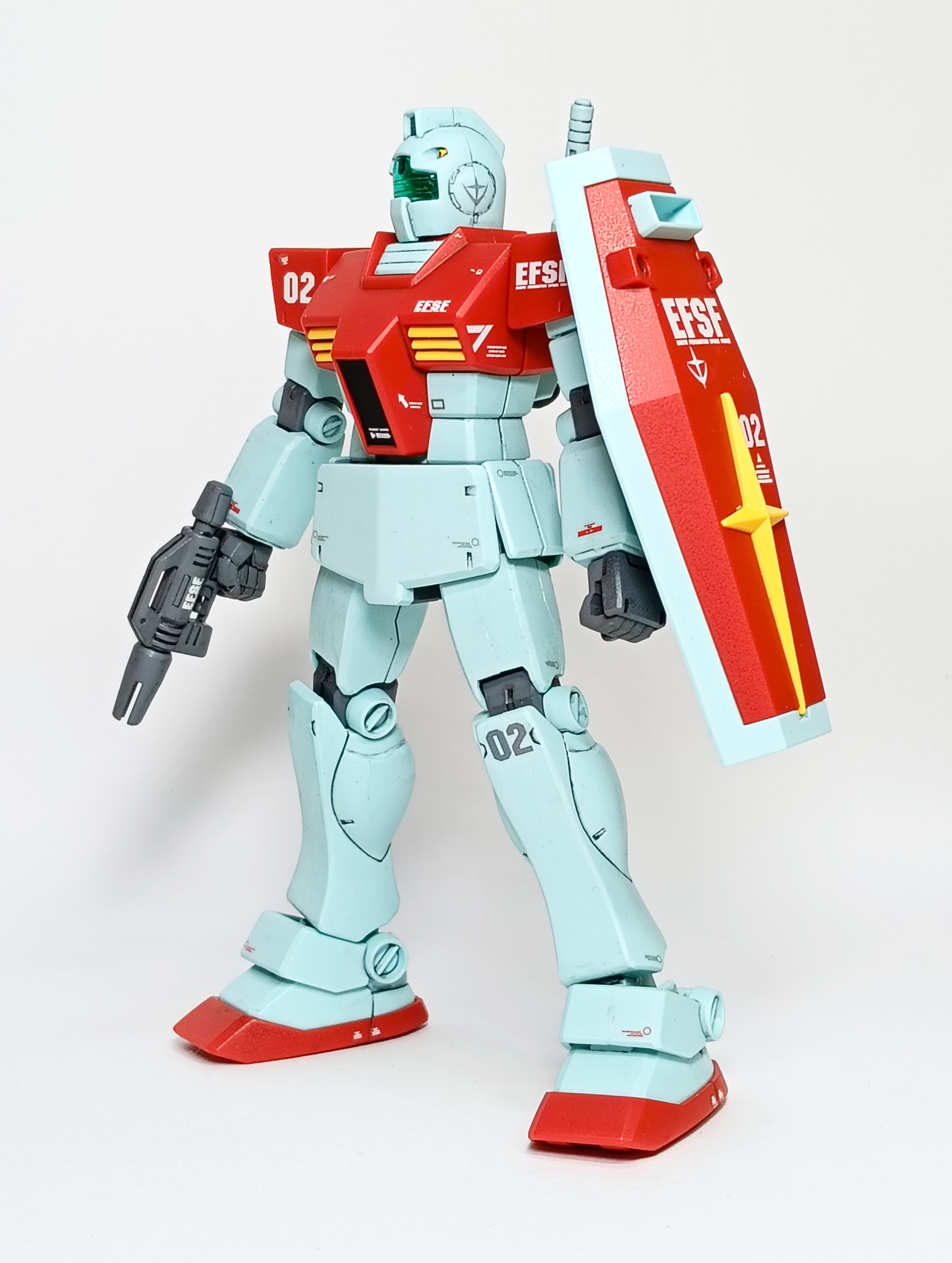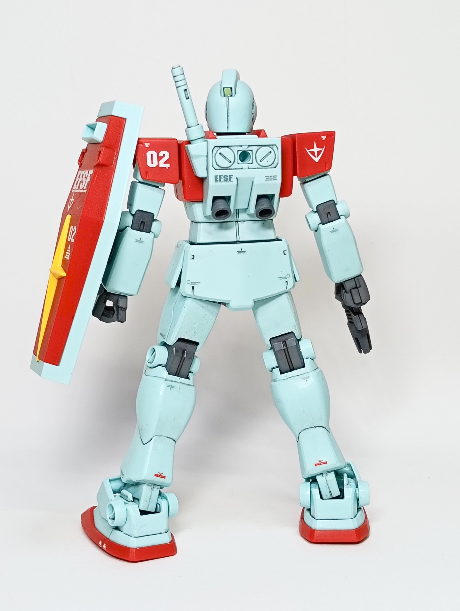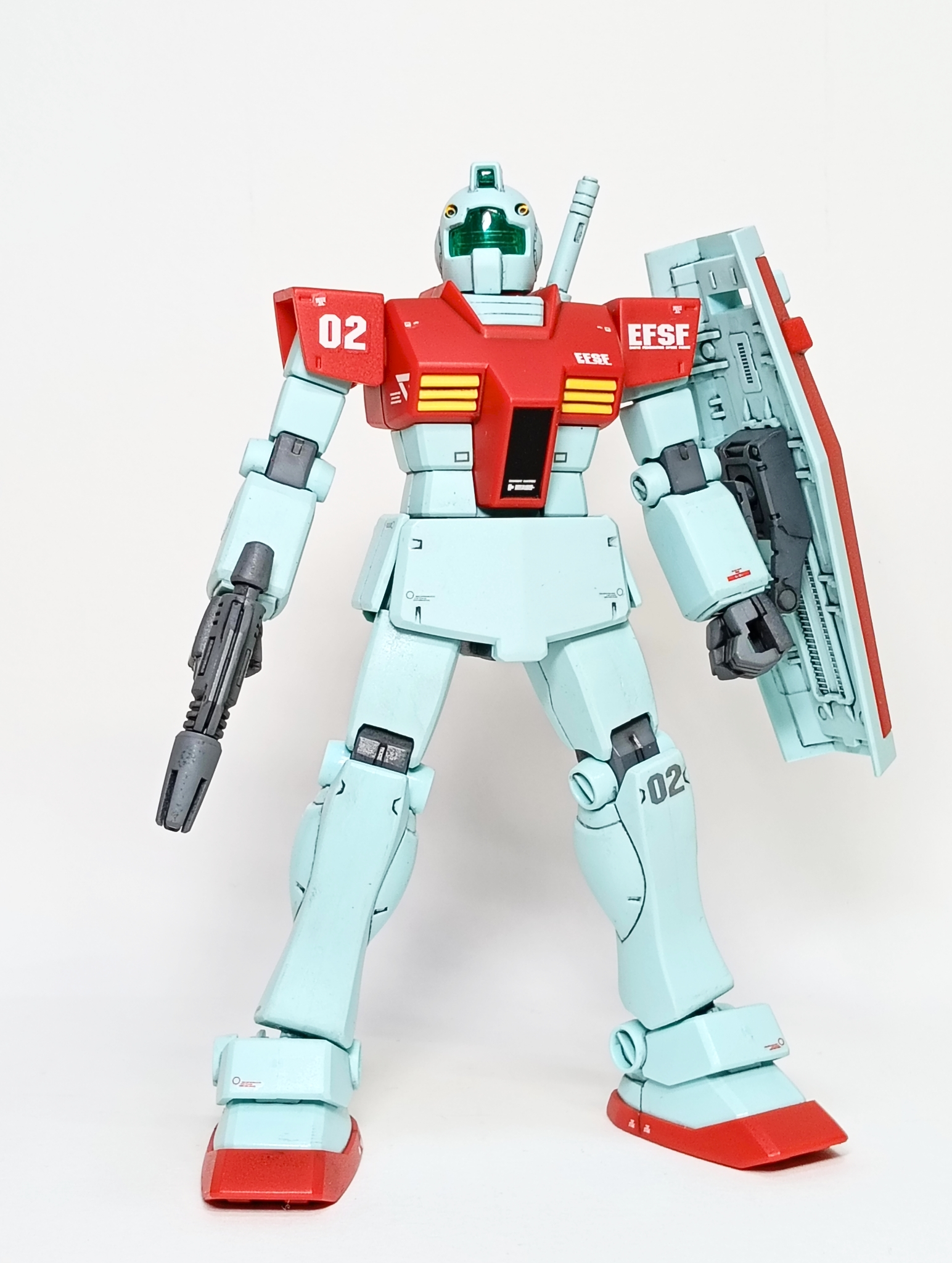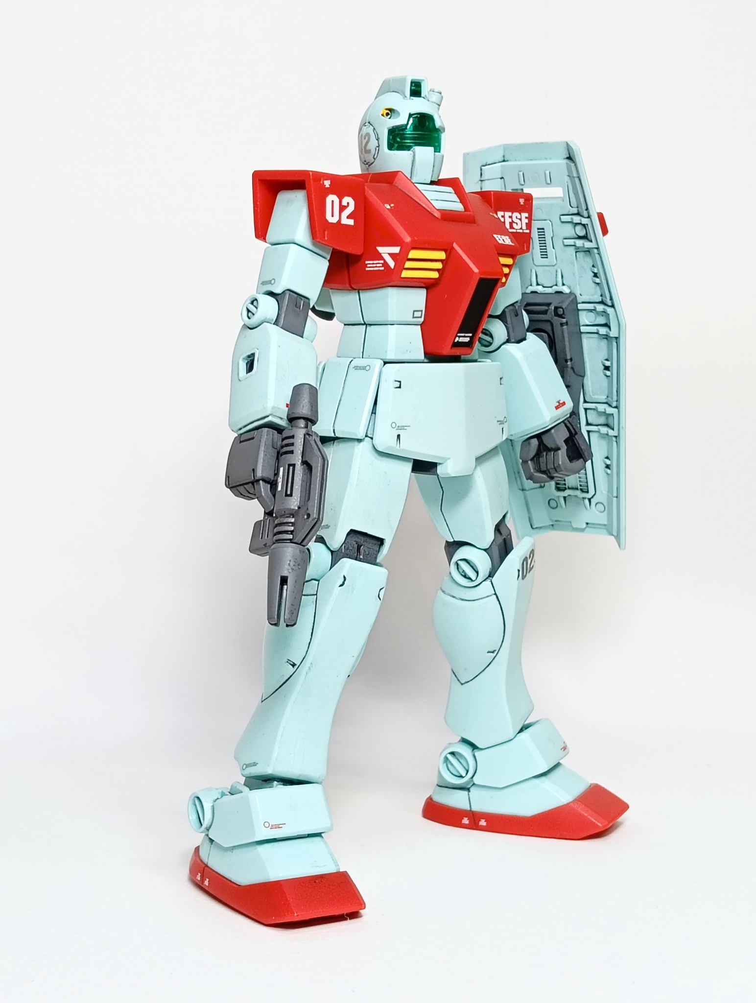 HGジムを作りました!今回でHGジムは3回目の投稿です。今回はアニメカラーバージョンとして、明るめのカラーで全塗装しました。