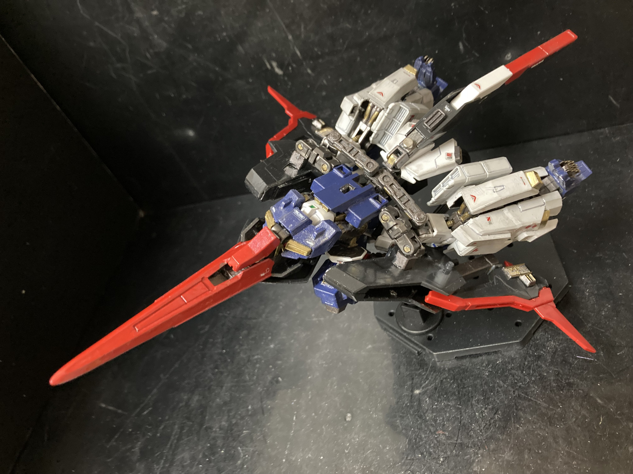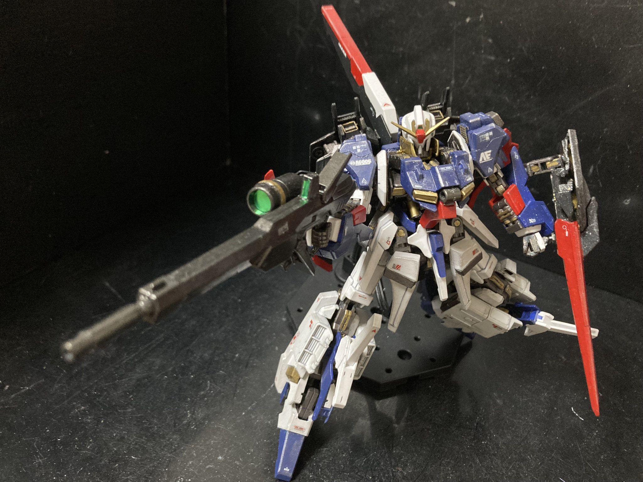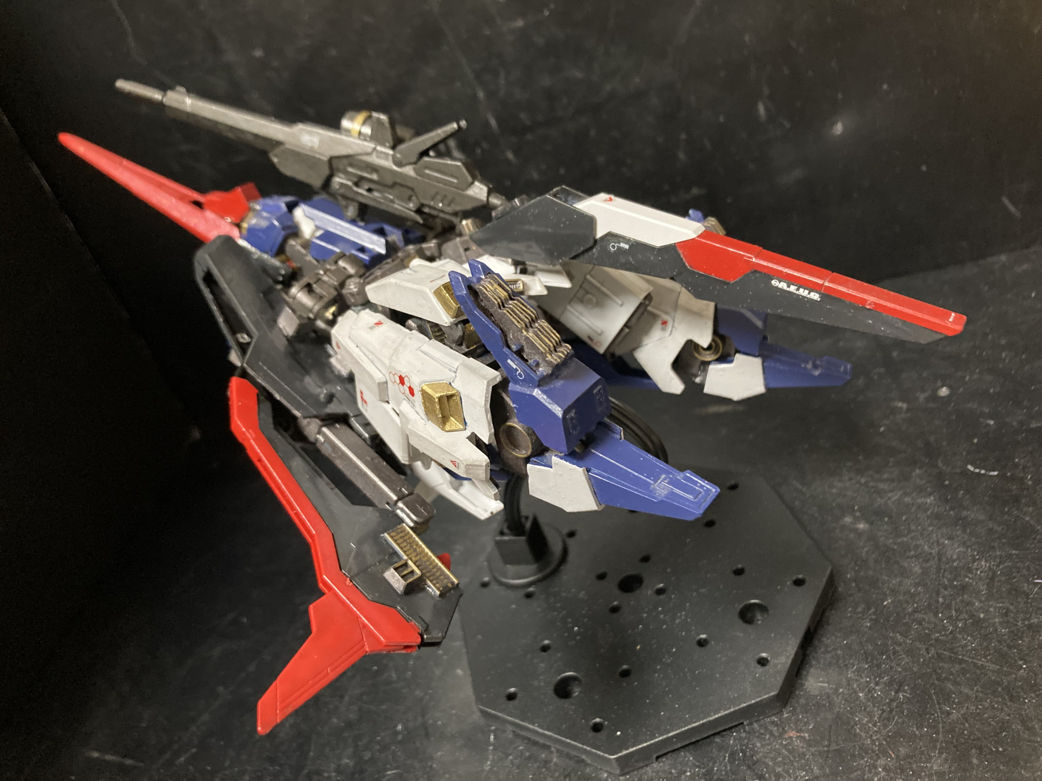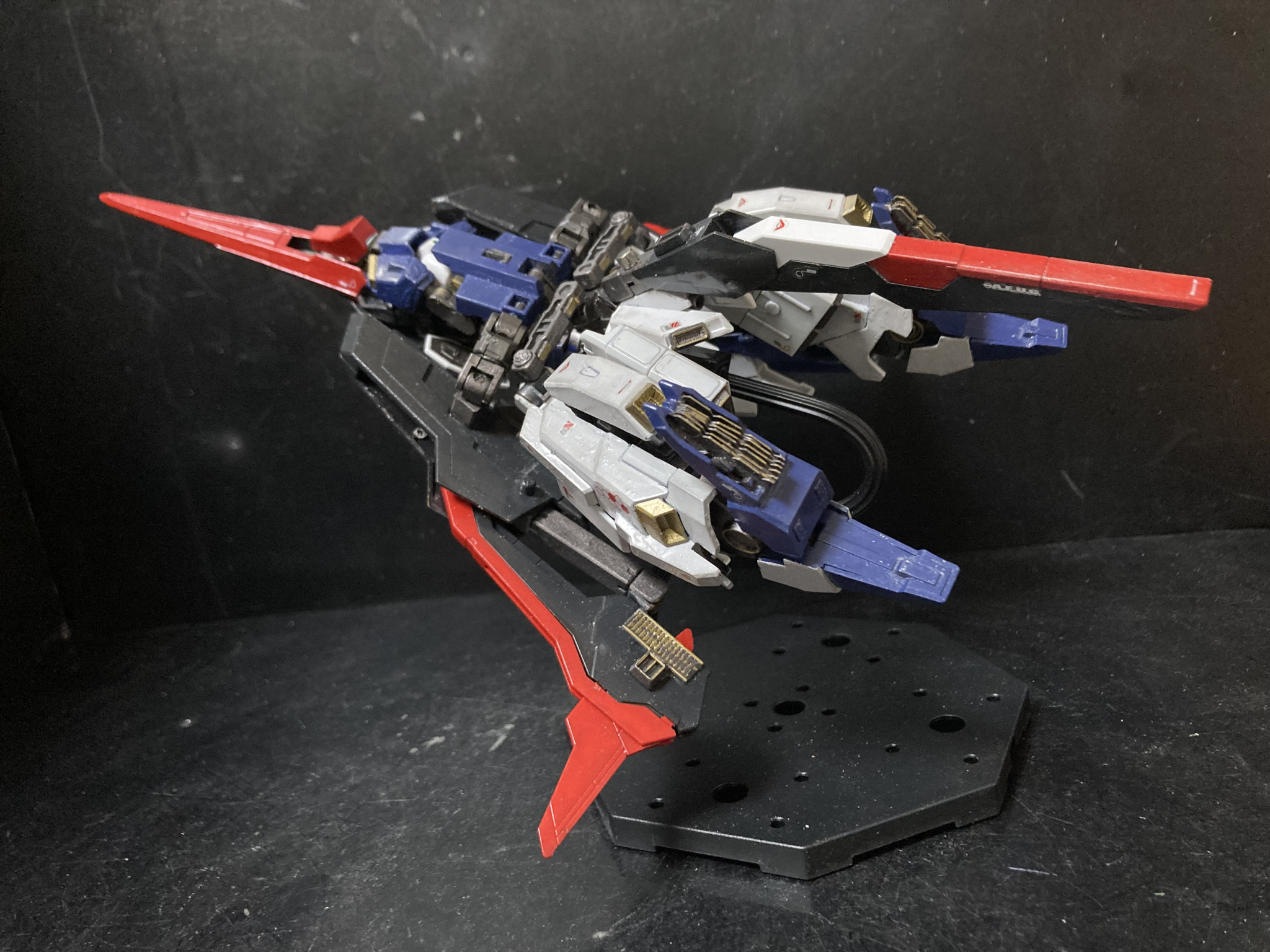 実はずいぶん前にライトニングZガンダムを可変改造した事があるのですが、まだまだ可変技術のノウハウが無く、なんとか可変化には成功したものの、強度が激弱w