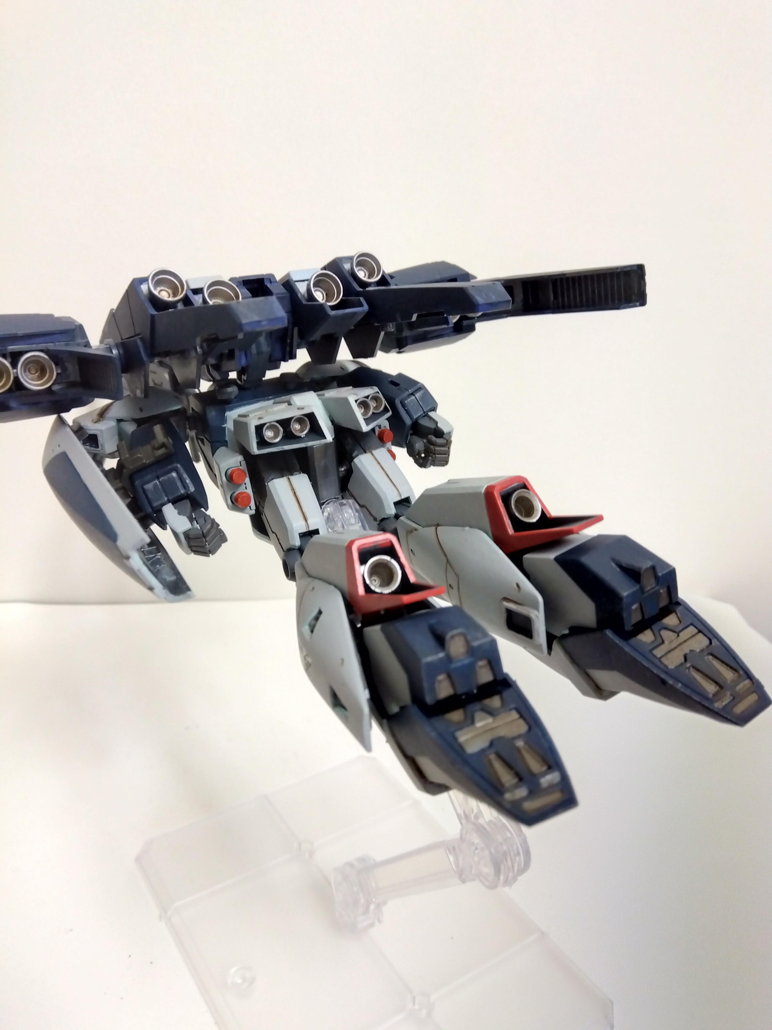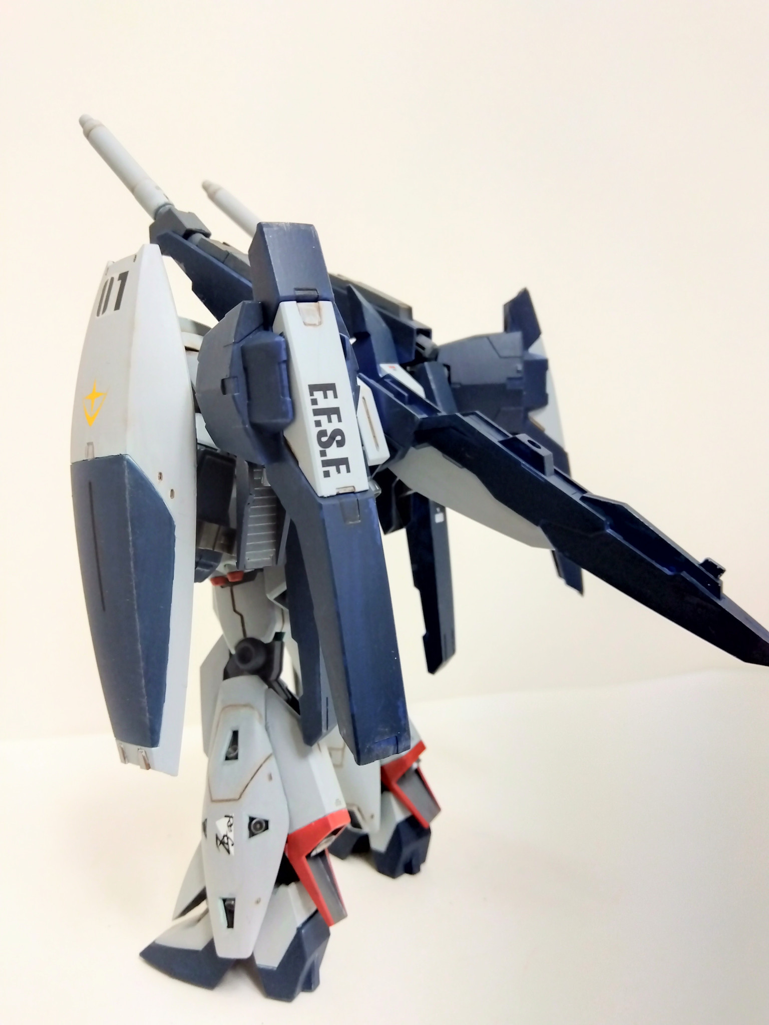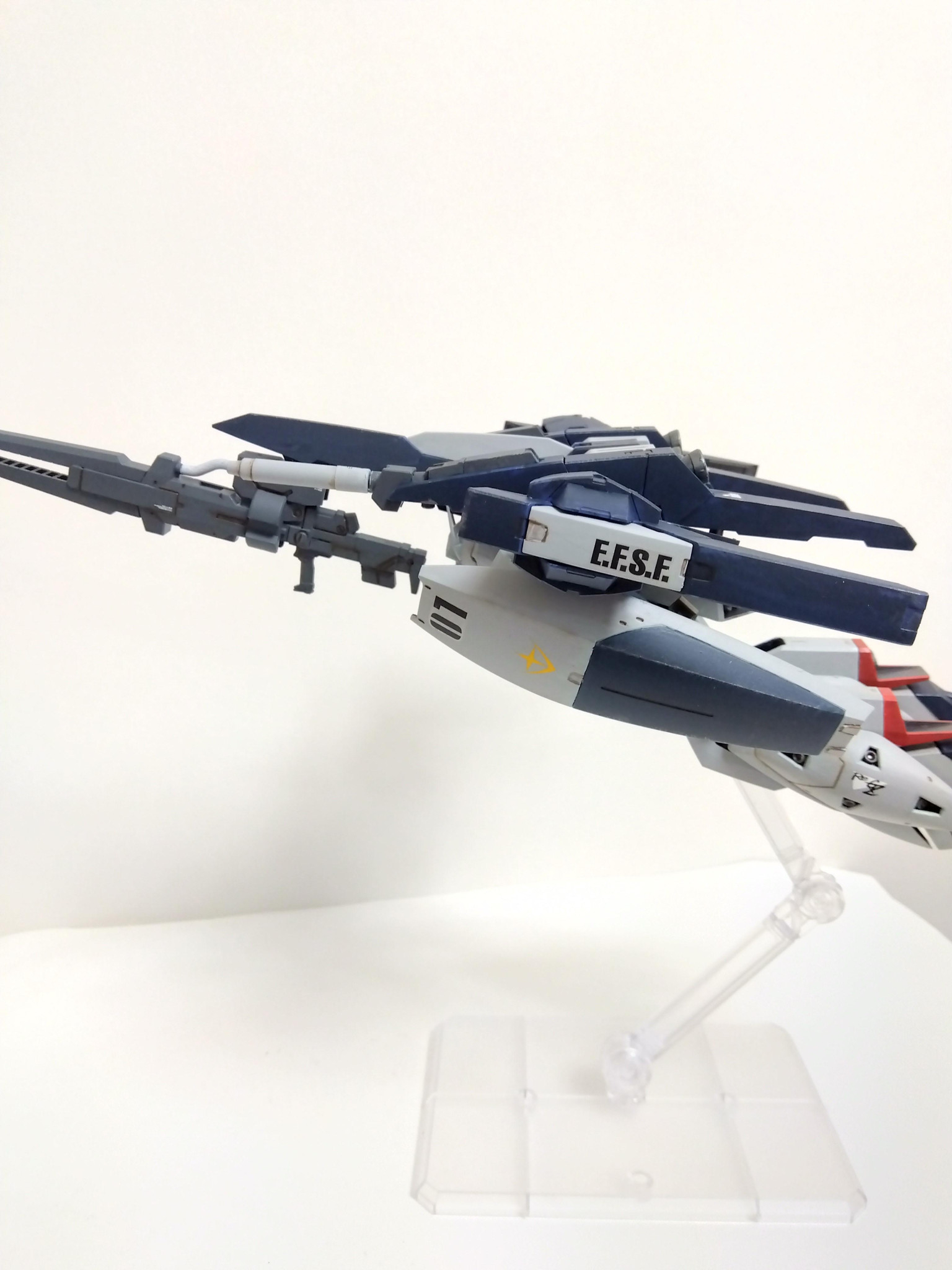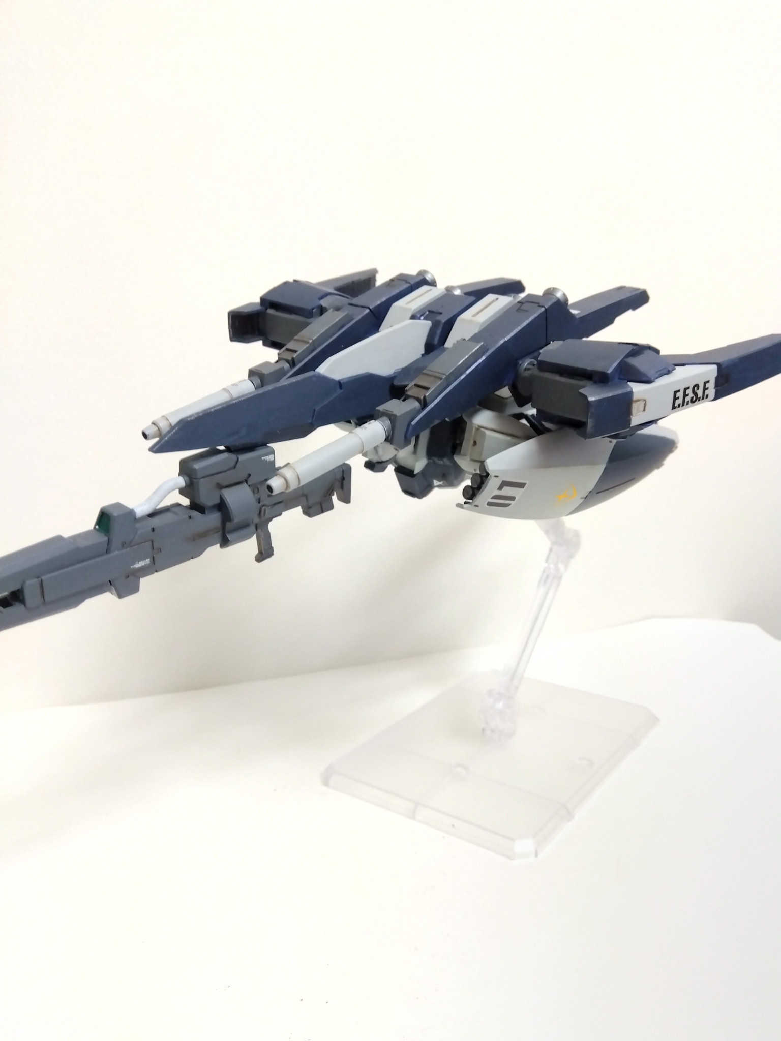 リ・ガズィ本体はプラ板でディテールアップしたぐらいでほぼそのまま、ビームライフルはリ・ガズィのライフルを半分にしてバックウェポンシステムMark−Ⅱの武器を貼り付けました。