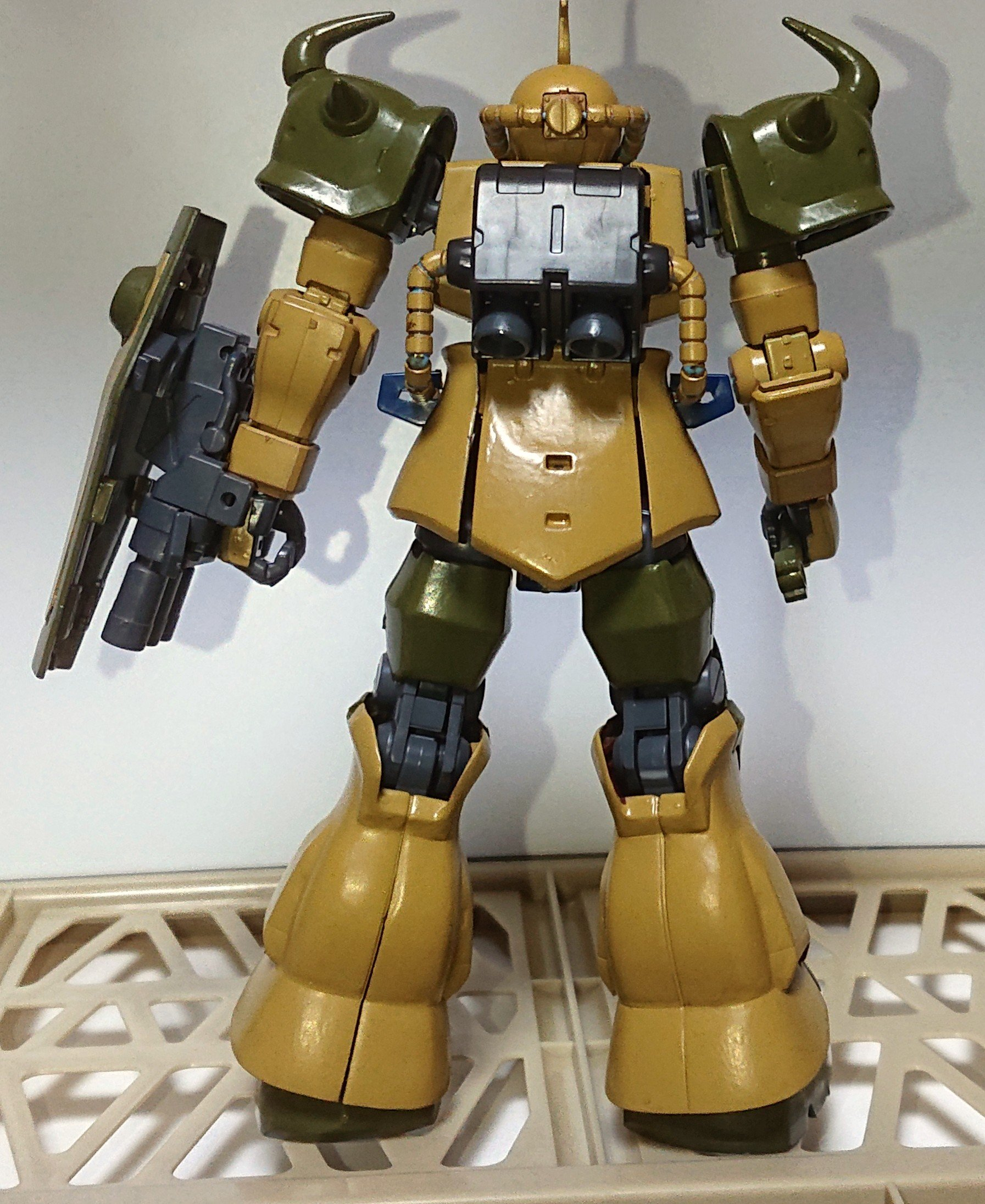 えーる HG 2025.12/16更新 グフカスタム(砂漠風) 80 21 いいねしたモデラー(21) 0 0 作品を共有 グフカスタムを砂漠風に塗りました。 赤サフを吹いた後はラッカーのダークイエローを吹きましたがカラーリングが気にいらず、一部を水性ホビーカラーのロシアアングリーンで筆塗りました。 カラーレシピ 肩・胸・足の一部・ヒートサーベルのグリップ=水性ホビーカラーのロシアングリーン 頭・胴体・腕・足の一部・パイプ=ダークイエロー ガトリングの銃身、ヒートサーべルの刃身=黒鉄色 正面から背後から射撃ポーズ 機動戦士ガンダム第08MS小隊 グフカスタム 好き勝手塗装 筆塗り 水性ホビーカラー コメント コメントをして応援しよう コメントにはログインが必要です えーる 過去に作ったものや最近つくったものを掲載します。 初心者なので缶スプレーで塗装くらいしかできませんが。(最近、筆塗りとウェザリングをはじめました) 好きな色は緑色ですか、いろいろ自由な色で塗りたい。 ザウォート好き。 えーるさんがお薦めする作品 ザウォートヘヴィ(ウェザリング初挑戦) 4 ディランザ(世紀末風) ディランザをジオン風かseed風にしようとNATOグリーンに… 4 軽キャノン(俺専用ミリタリー風) 軽キャノンを缶スプレーでミリタリー風(俺専用機カラー)に塗り… 4 シルバーガンダム(一部ゴールド) 過去に作った、スプレーで塗装したシルバー色のガンダムを一部パ… 4 ティエレン地上型(素組み) ティエレン地上型作りました。00ガンダムは見てないのですが無… えーるさんのページ この作品をお薦め作品に設定する Please login to update your profile! Please login to update your profile! Please login to update your profile! Please login to update your profile!