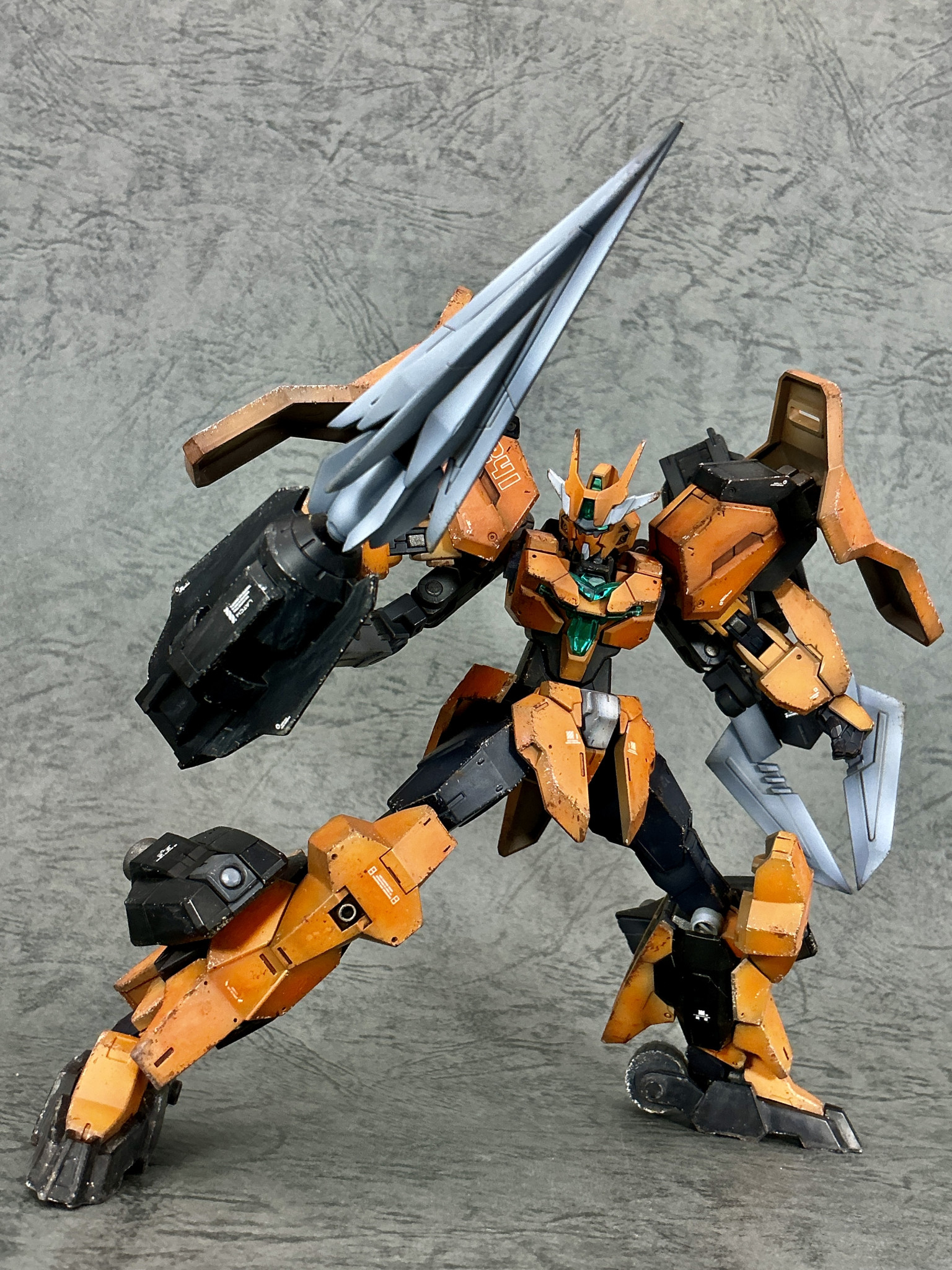 サタニクスガンダム の改修機体をとして製作しました。ドリル/クローをサブアーム式に変更、パイルバンカーや防護盾を装備させ